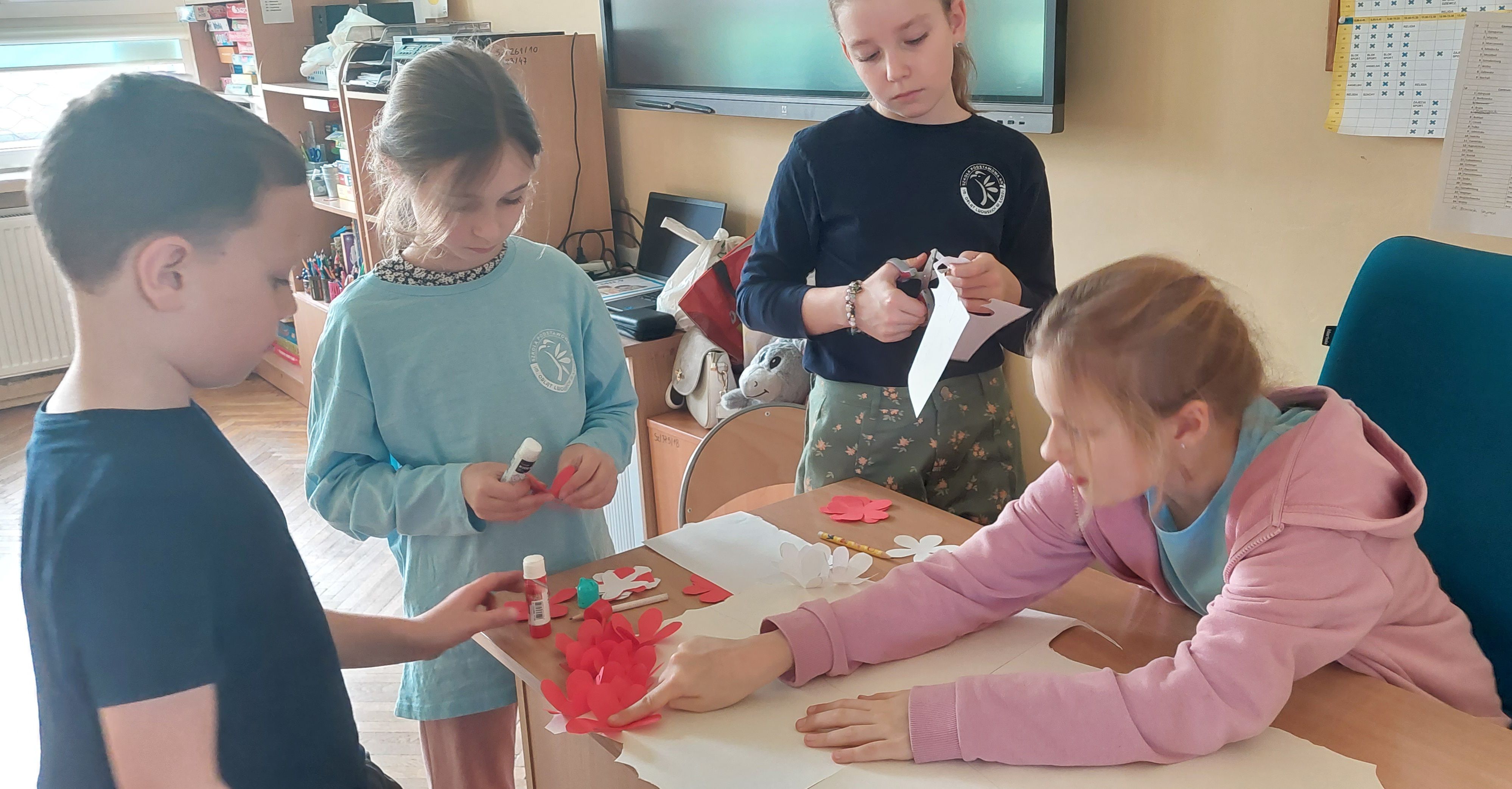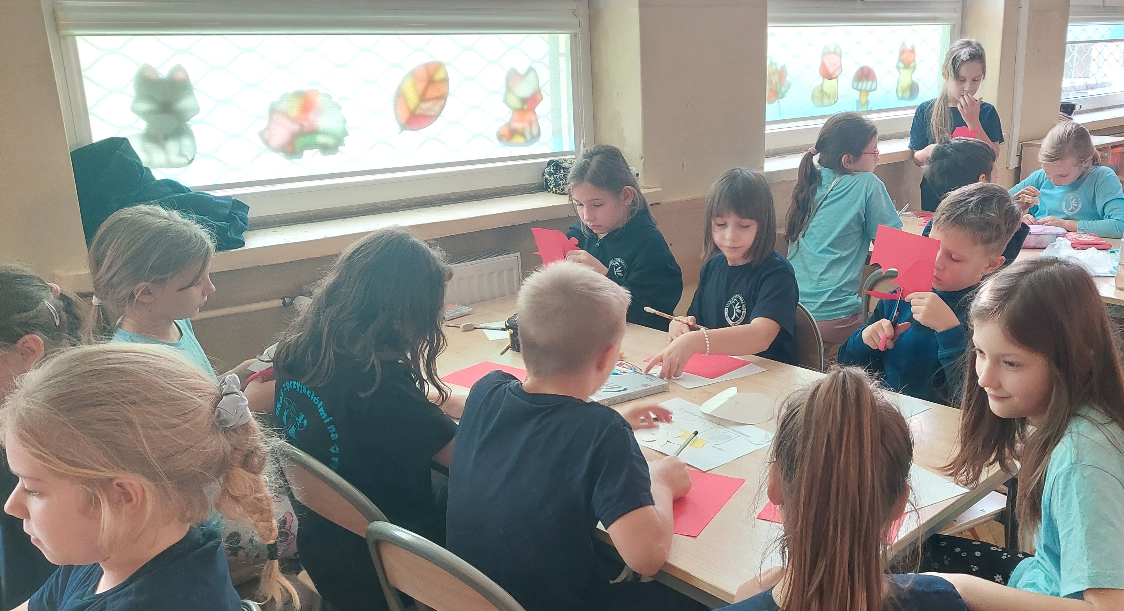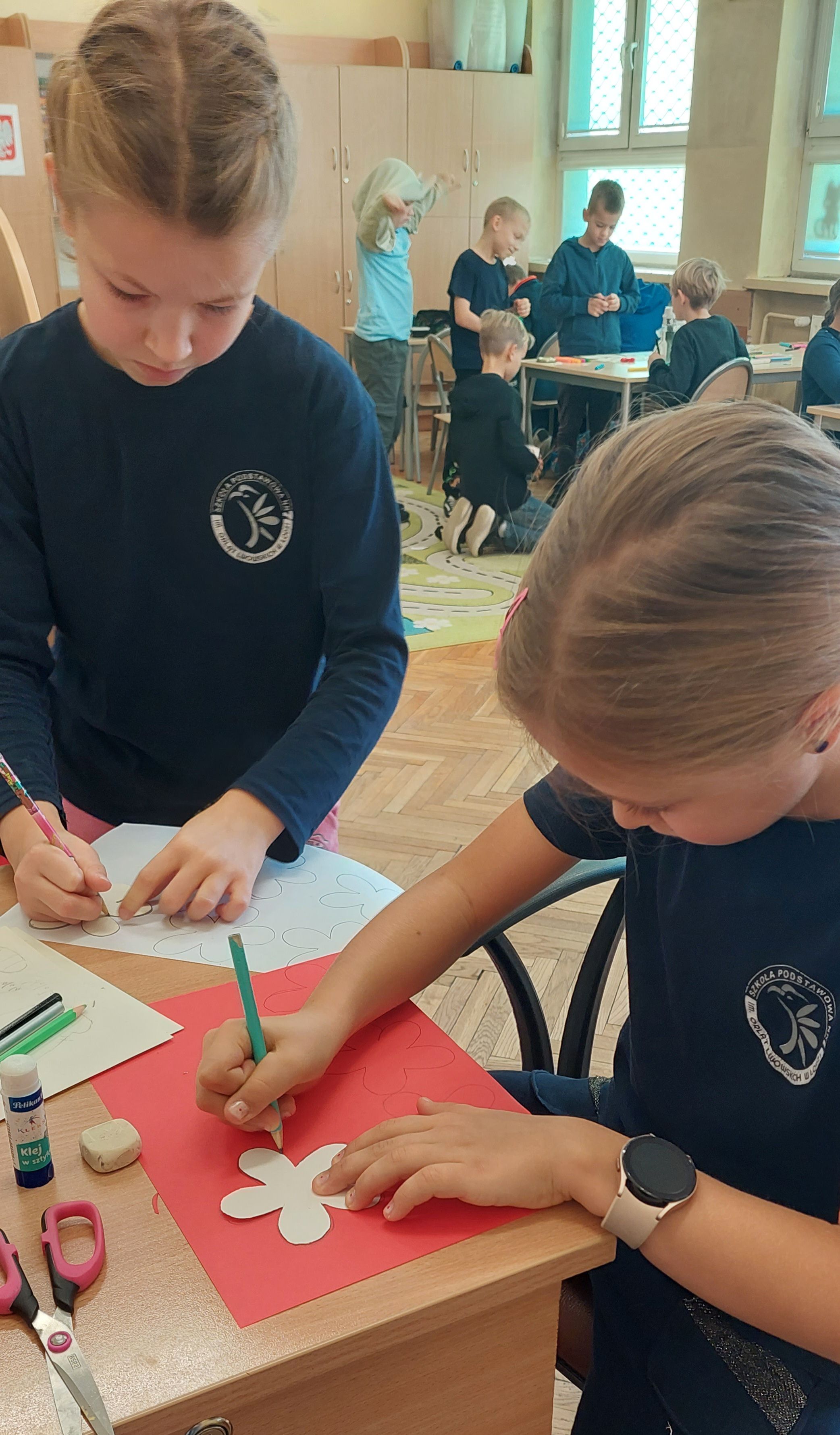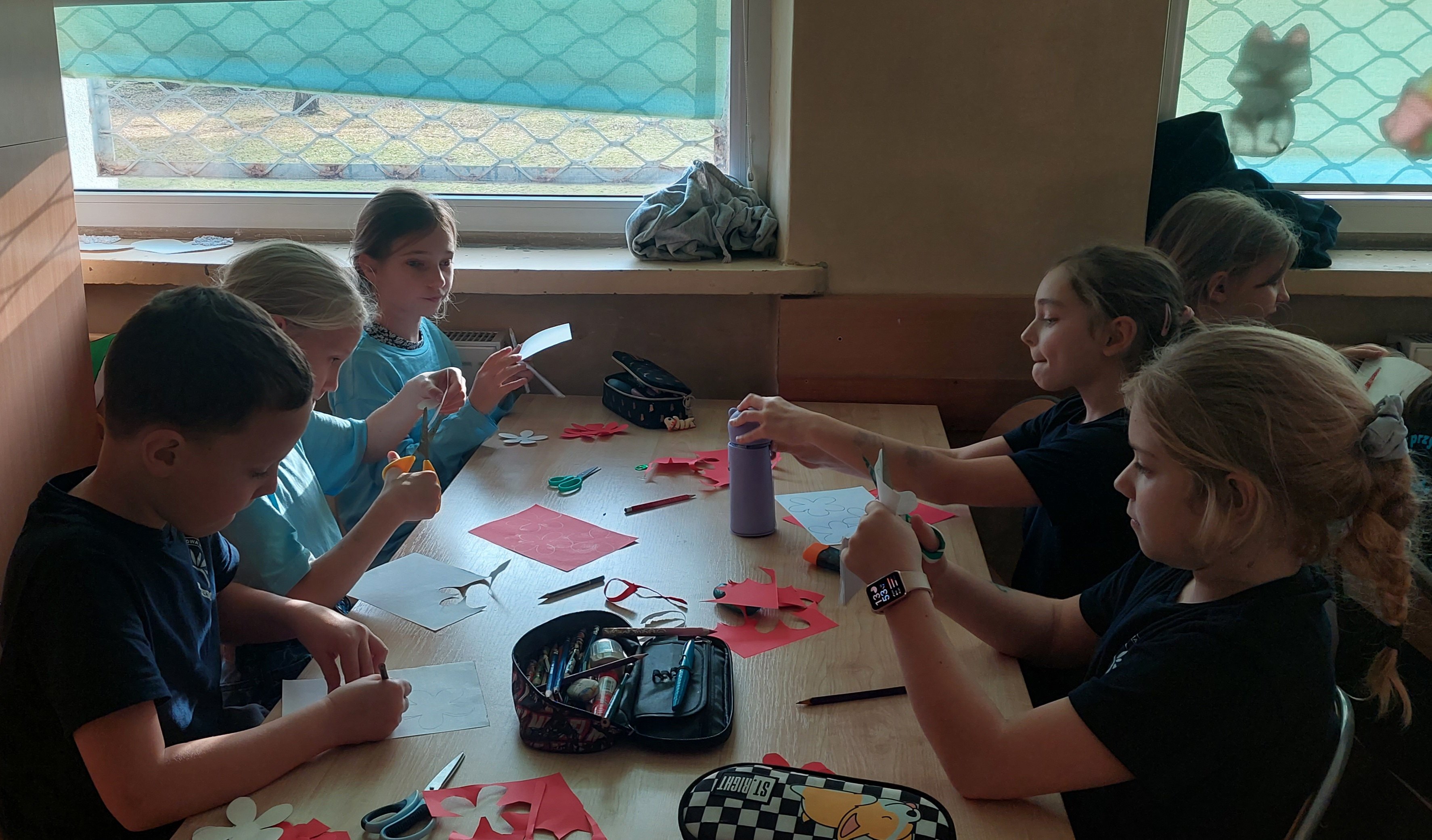 Podczas czwartkowych zajęć w świetlicy rozmawialiśmy o symbolach narodowych Polski. Dzieci wykazały się bardzo dobrą znajomością barw narodowych oraz ich znaczenia. Wspólnie odśpiewaliśmy fragment Hymnu Państwowego, pamiętając o zachowaniu odpowiedniej postawy i powagi. Następnie dzieci obejrzały krótki film edukacyjny o Mazurku Dąbrowskiego, z którego dowiedziały się m.in. kim był Józef Wybicki oraz gdzie powstał nasz Hymn. Na zakończenie zajęć wszyscy uczestnicy wzięli udział w tworzeniu mapy Polski, którą wyklejali kwiatami w barwach narodowych – białej i czerwonej. Powstała praca plastyczna ozdobiła drzwi naszej świetlicy, przypominając o patriotyzmie i miłości do ojczyzny.