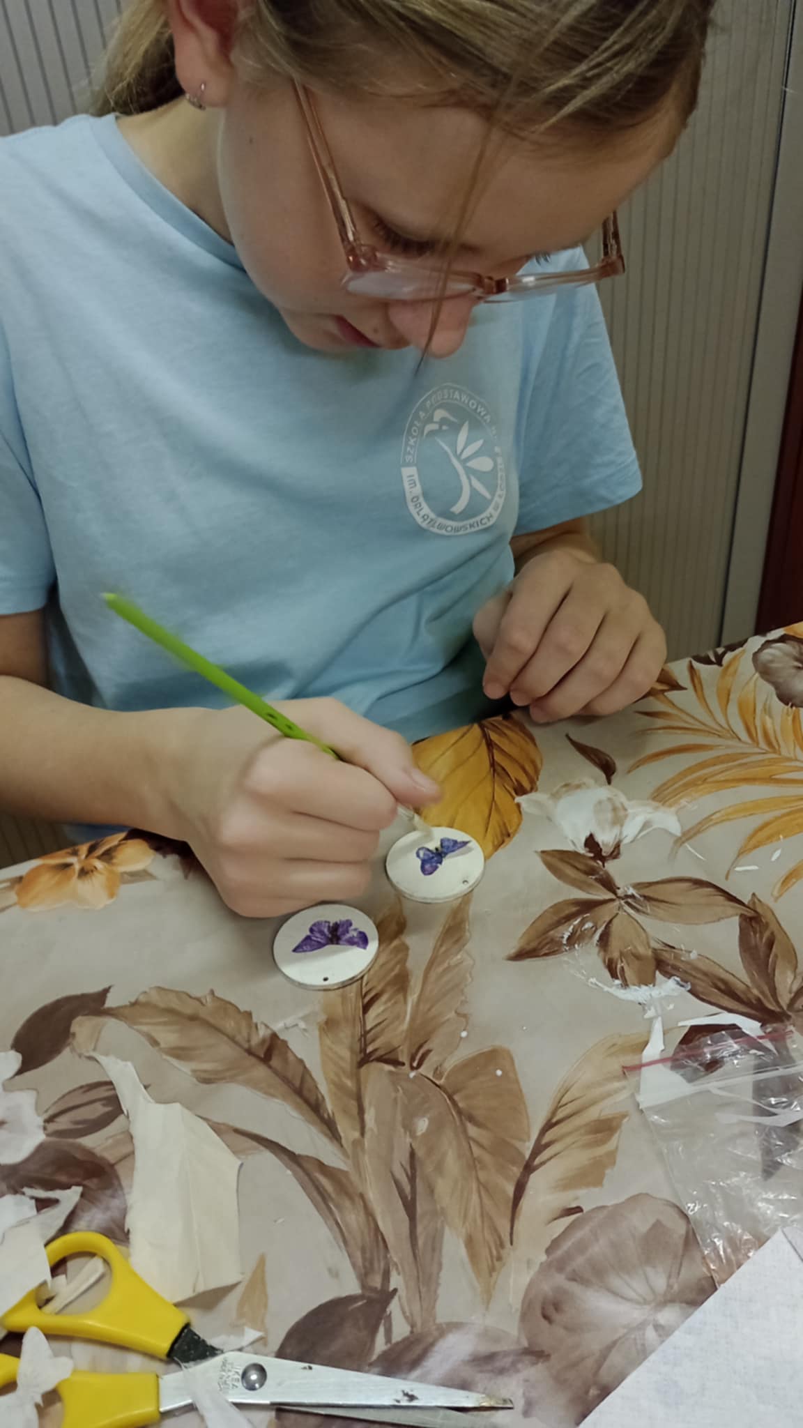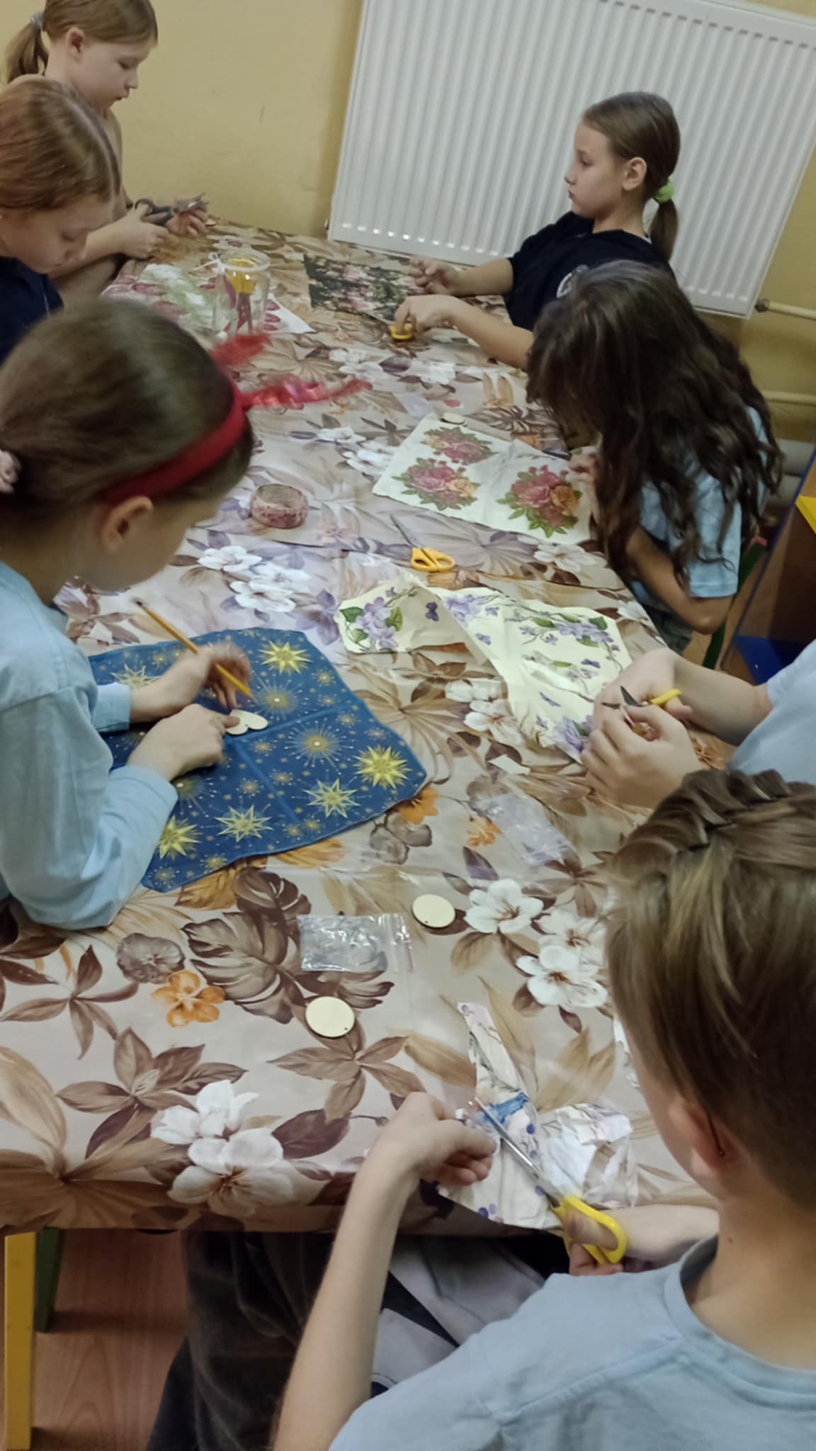 Miłośnicy artystycznych wyzwań ostatnio zmierzyli się na kole plastycznym z techniką zdobniczą decoupage. Zbliżają się święta i każdy chce być trochę pomocnikiem świętego Mikołaja:) dlatego też mali artyści wykonali zdobienia na drewnianych kolczykach. Zadanie nie było łatwe, wymagało cierpliwości i skrupulatności, ale wszystkim udało się zakończyć pracę z sukcesem! A efekt, chyba przyznacie sami, że mucha nie siada.