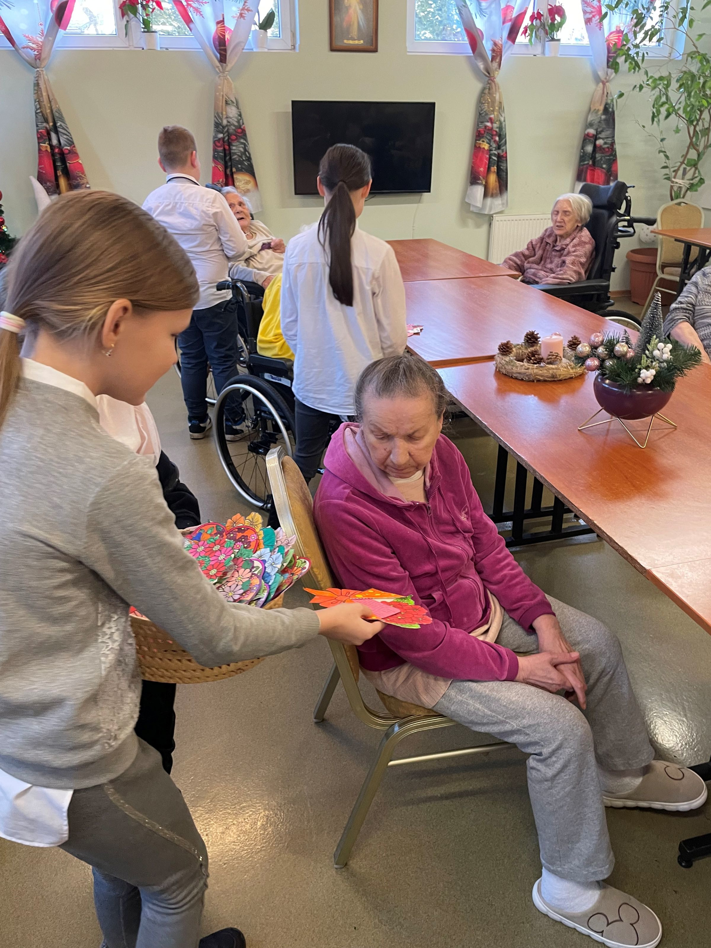 Podczas spotkania zaprezentowano przedstawienie artystyczne z okazji Dnia Babci i Dziadka, co spotkało się z ciepłym i życzliwym przyjęciem ze strony podopiecznych placówki. Występ wprowadził miłą, wzruszającą atmosferę i wywołał wiele uśmiechów. Szczególne emocje wzbudził występ taneczny Poli oraz wspólne zaśpiewanie piosenki przez Maję i Hanię. Po części artystycznej odbył się słodki poczęstunek, podczas którego uczestnicy mieli okazję do wspólnych rozmów i integracji. Następnie wolontariusze wręczyły seniorom własnoręczne wykonanie laurki, składając serdeczne życzenia z okazji ich święta.