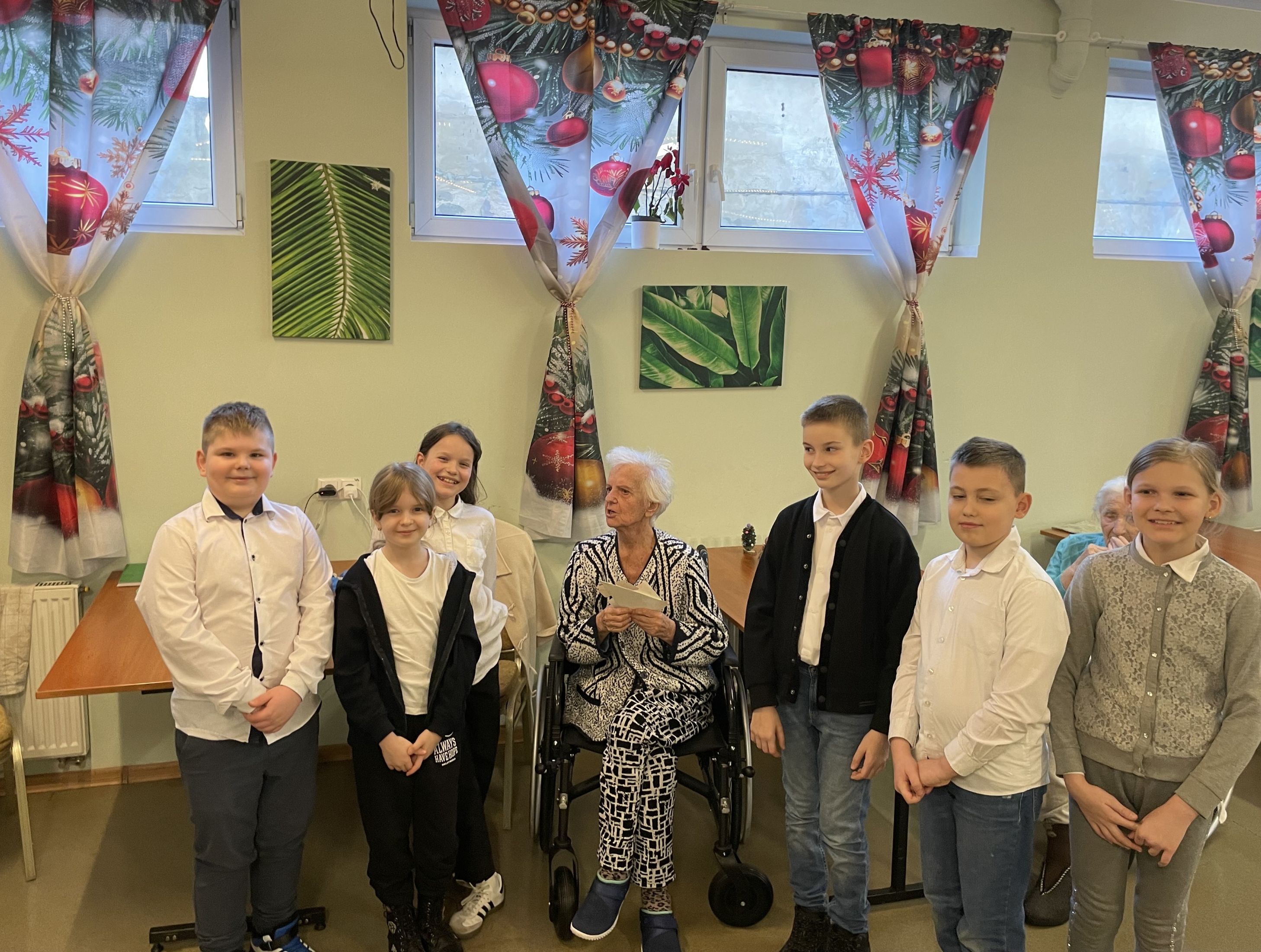 Spotkanie z seniorami z Zakładu Opiekuńczo-Pielęgnacyjnego ,,Serce na dłoni” było wartościowym doświadczeniem, sprzyjało kształtowaniu empatii, wrażliwości oraz szacunku wobec osób starszych. Uroczystość była pełna wzruszeń i radości, a wspólnie spędzony czas stał się pięknym przykładem międzypokoleniowej integracji. Uśmiechy, dobre słowa i wspólne przeżyte chwile na długo pozostaną w pamięci.