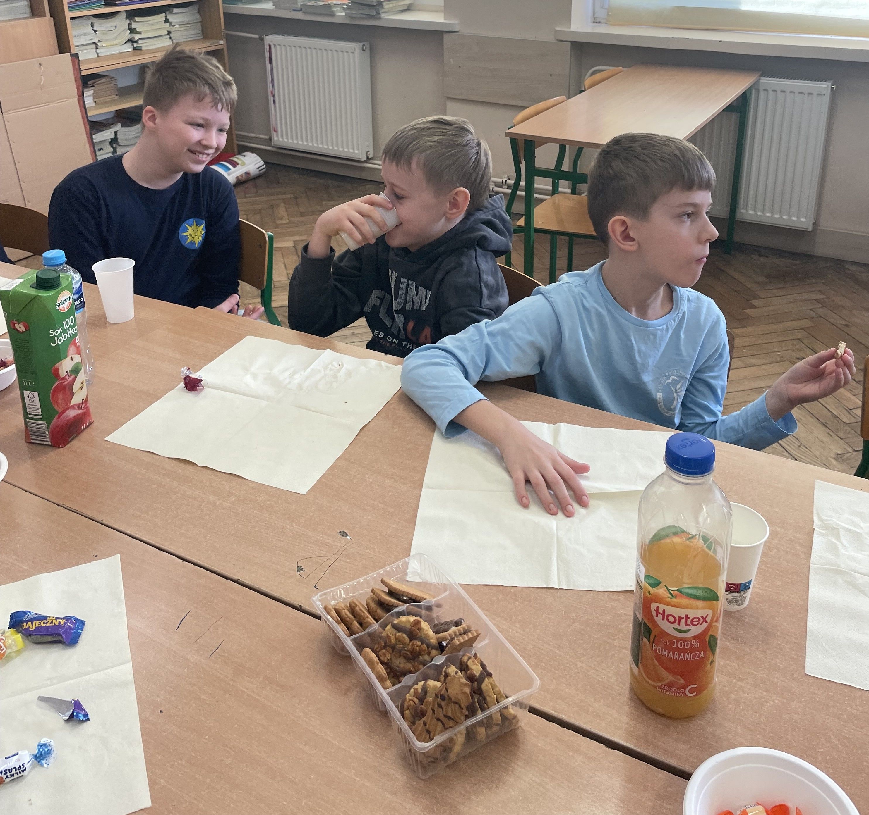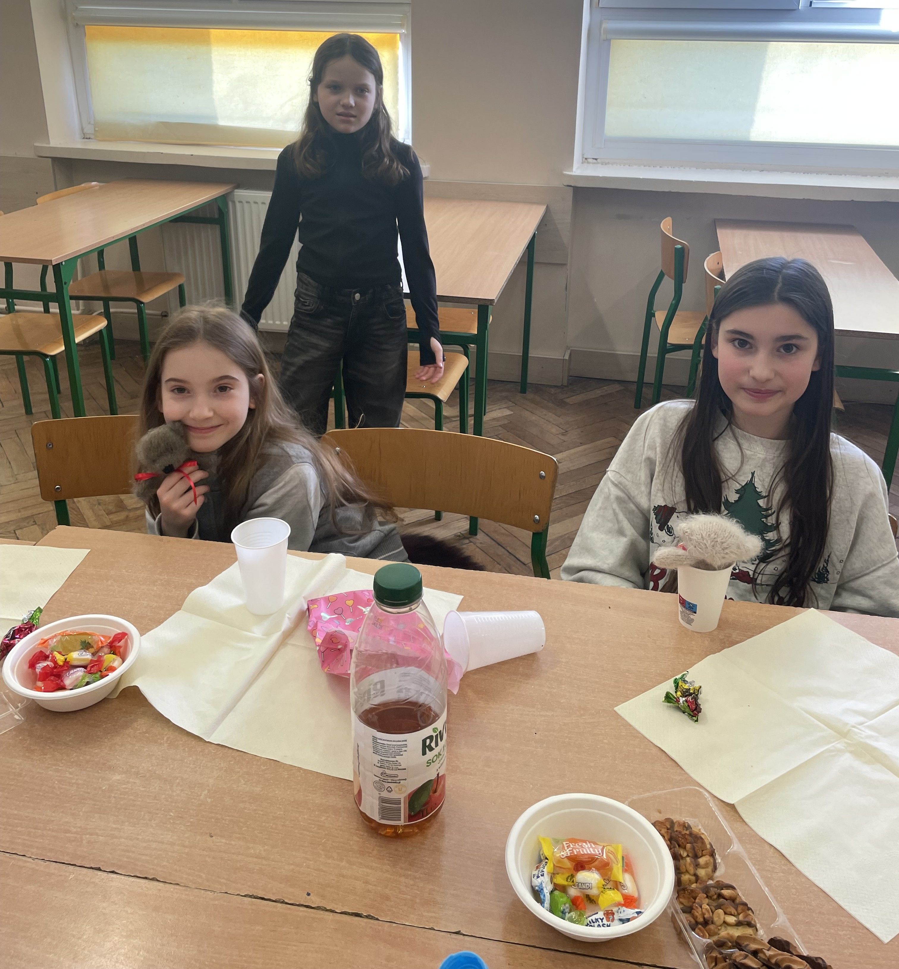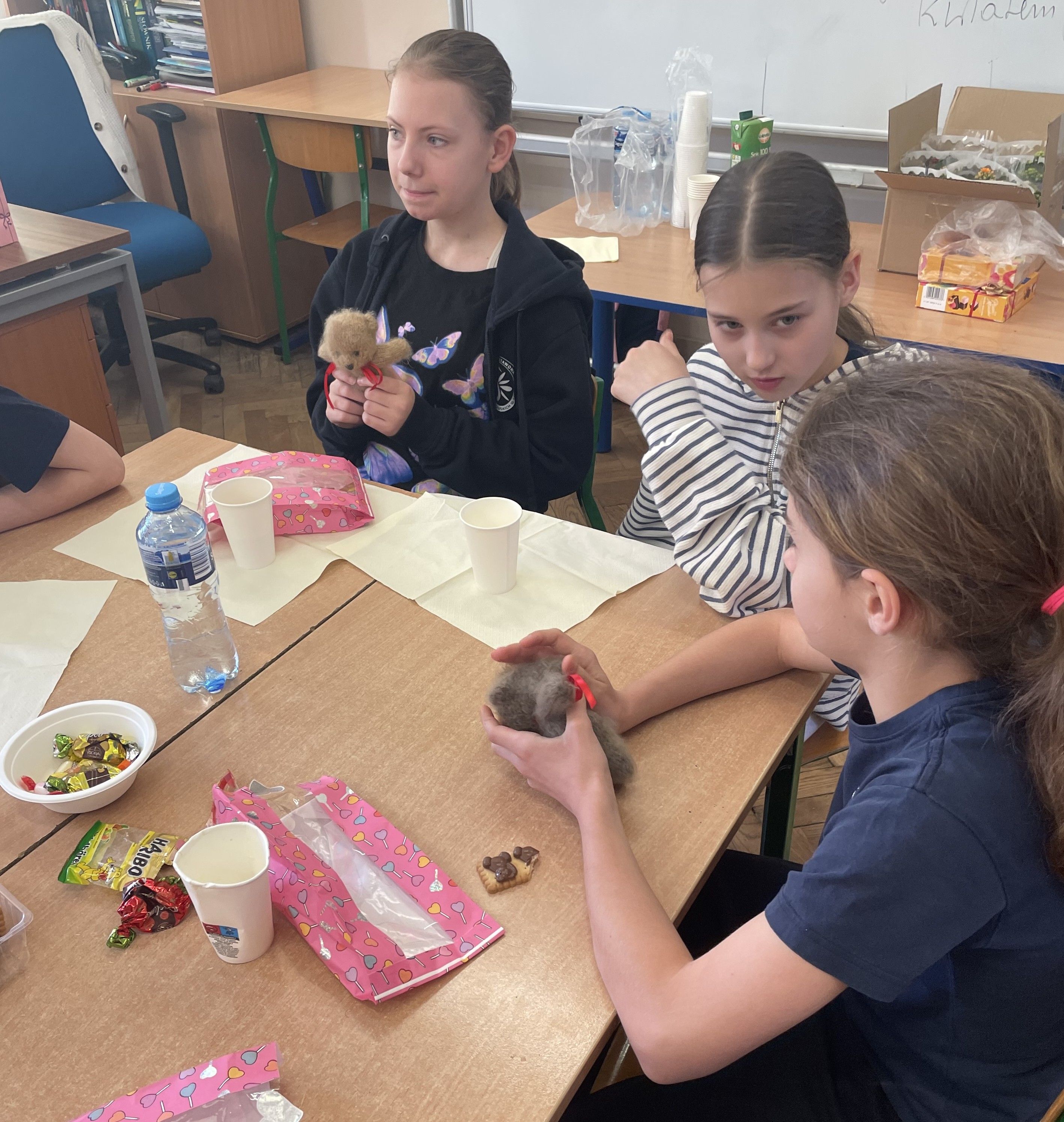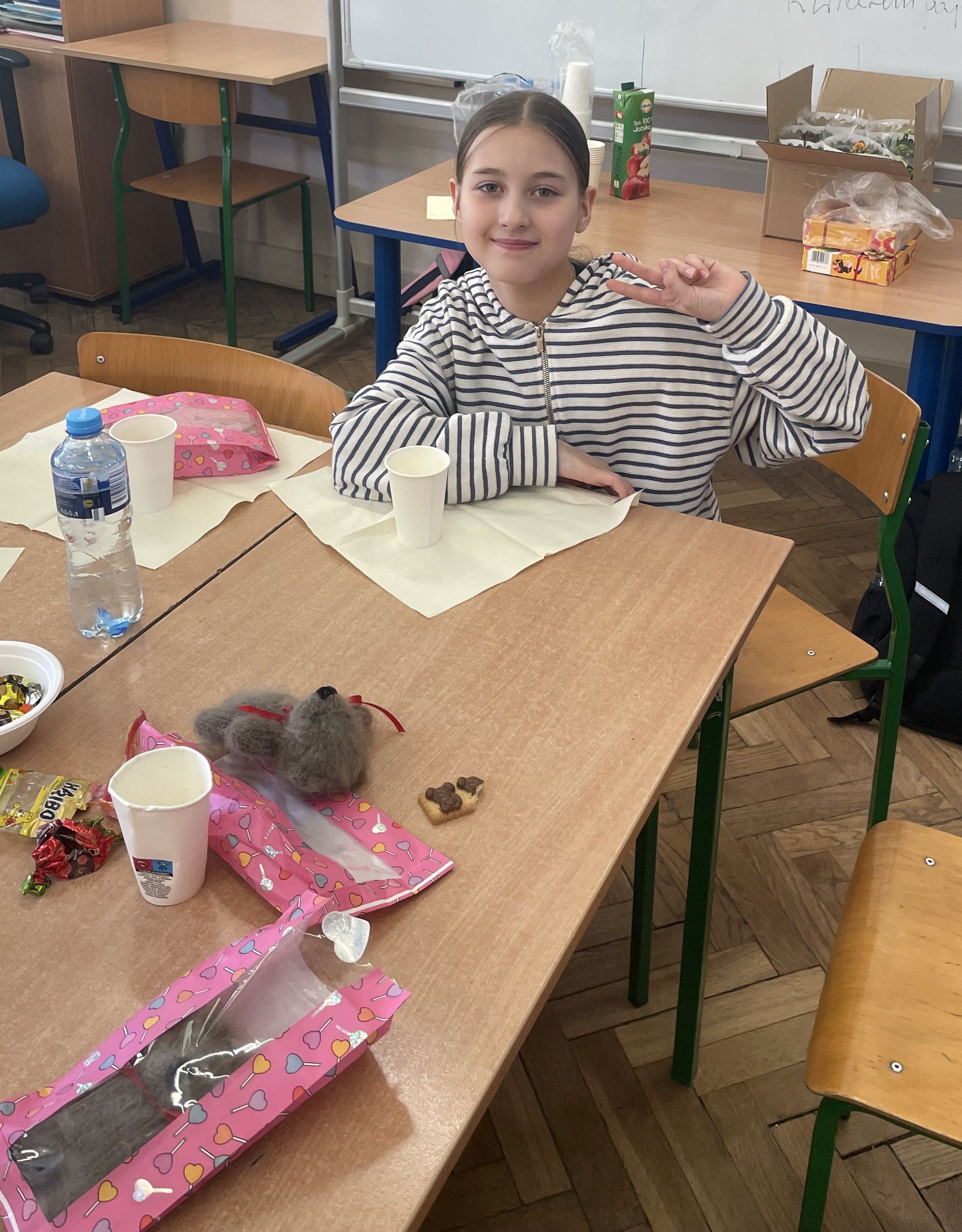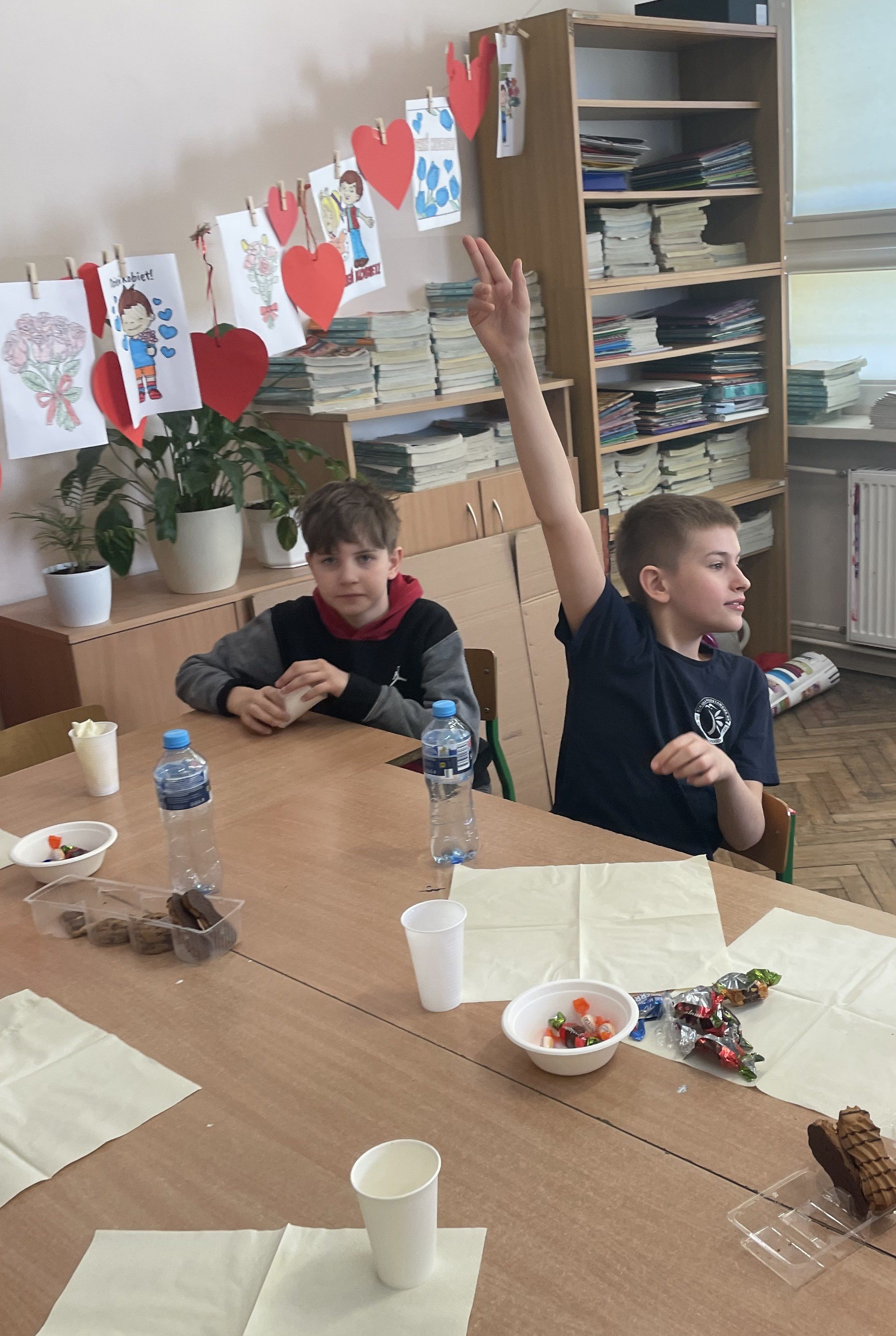 Na początku chłopcy złożyli dziewczynom serdeczne życzenia, życząc im dużo radości, sukcesów w nauce oraz spełnienia marzeń. Następnie poinformowali je, że przygotowane prezenty zostały ukryte w różnych miejscach w klasie. Uczennice musiały je odnaleźć, co okazało się bardzo ciekawą i wesołą zabawą. Z dużym zaangażowaniem szukały upominków, zaglądając w różne miejsca w sali lekcyjnej. Gdy wszystkie prezenty zostały odnalezione, każda z dziewczyn mogła cieszyć się swoim podarunkiem. Kolejnym punktem programu był wspólny poczęstunek. Uczniowie mogli wspólnie porozmawiać i spędzić czas w przyjaznej atmosferze. Później odbyły się gry i zabawy integracyjne, w których chętnie uczestniczyli zarówno chłopcy, jak i dziewczyny. Przygotowane konkurencje dostarczyły wszystkim wielu pozytywnych emocji, a w klasie panowała radosna atmosfera.