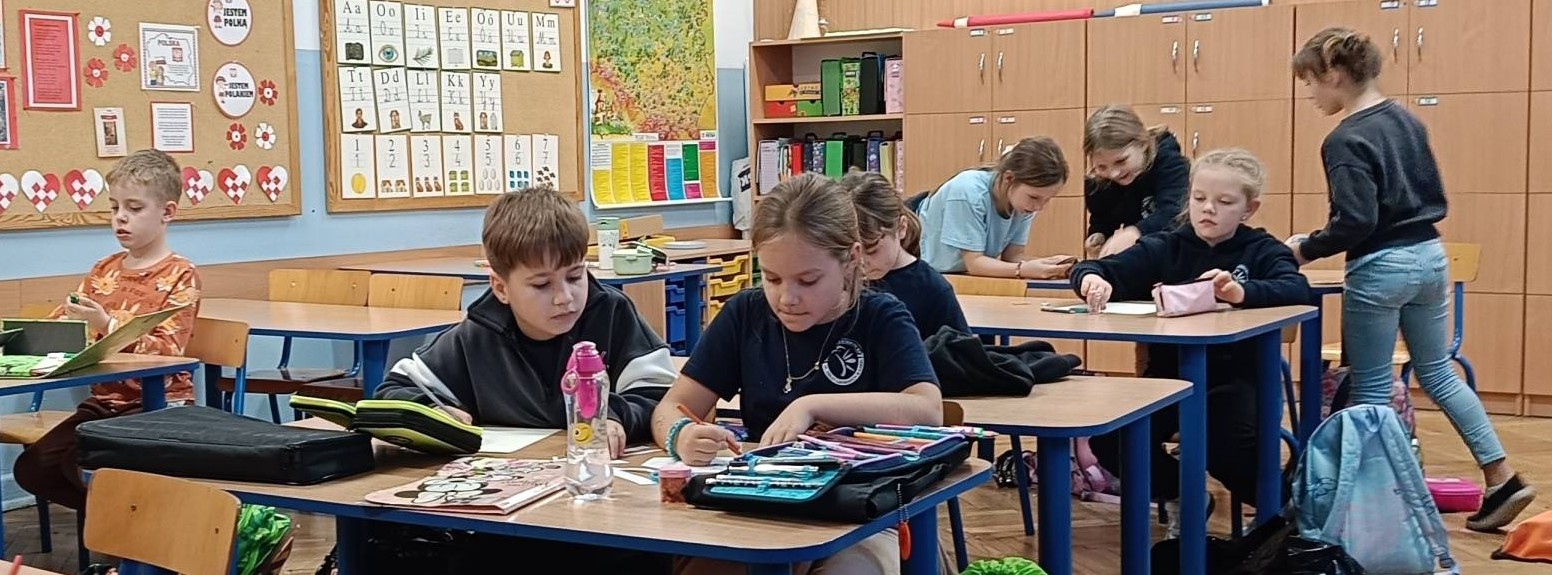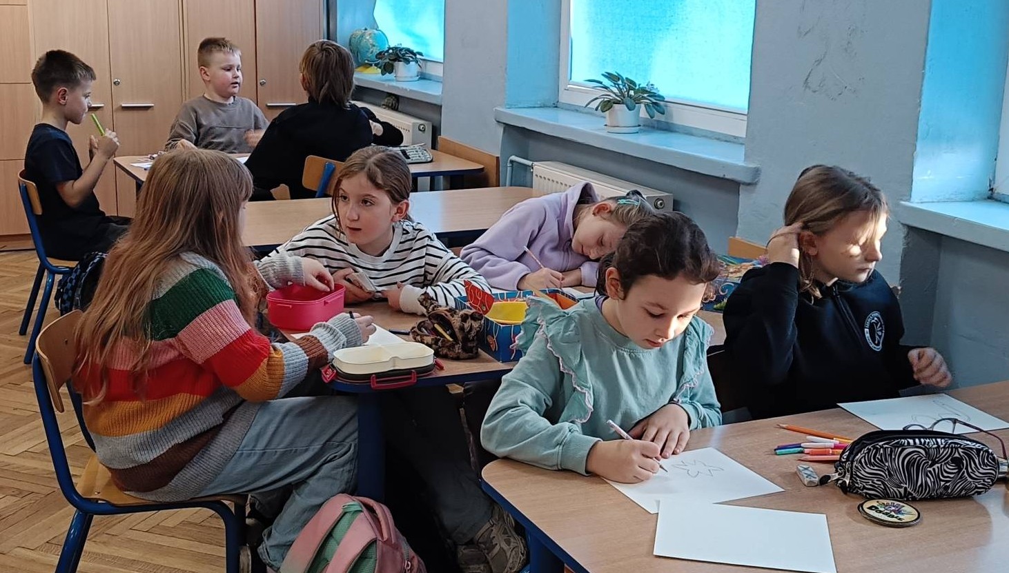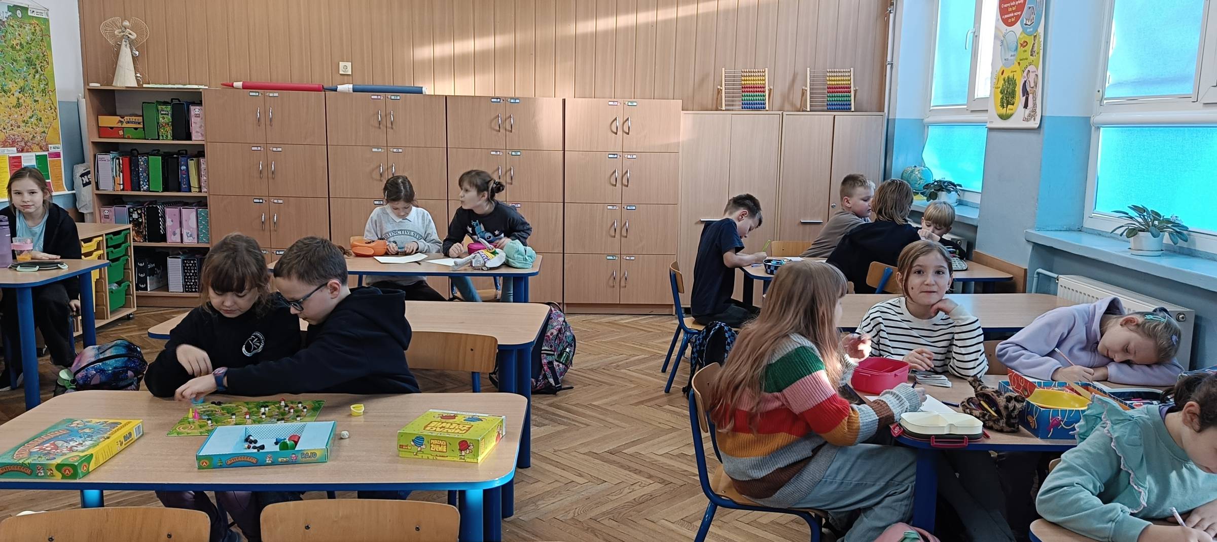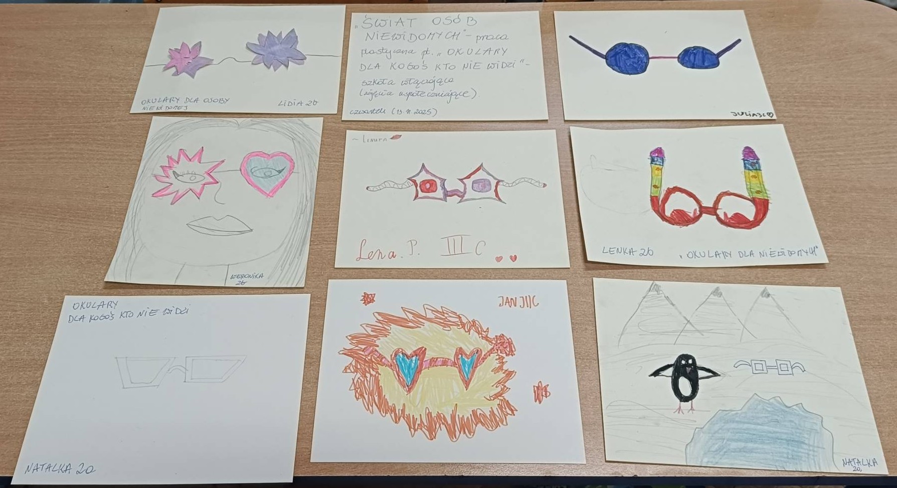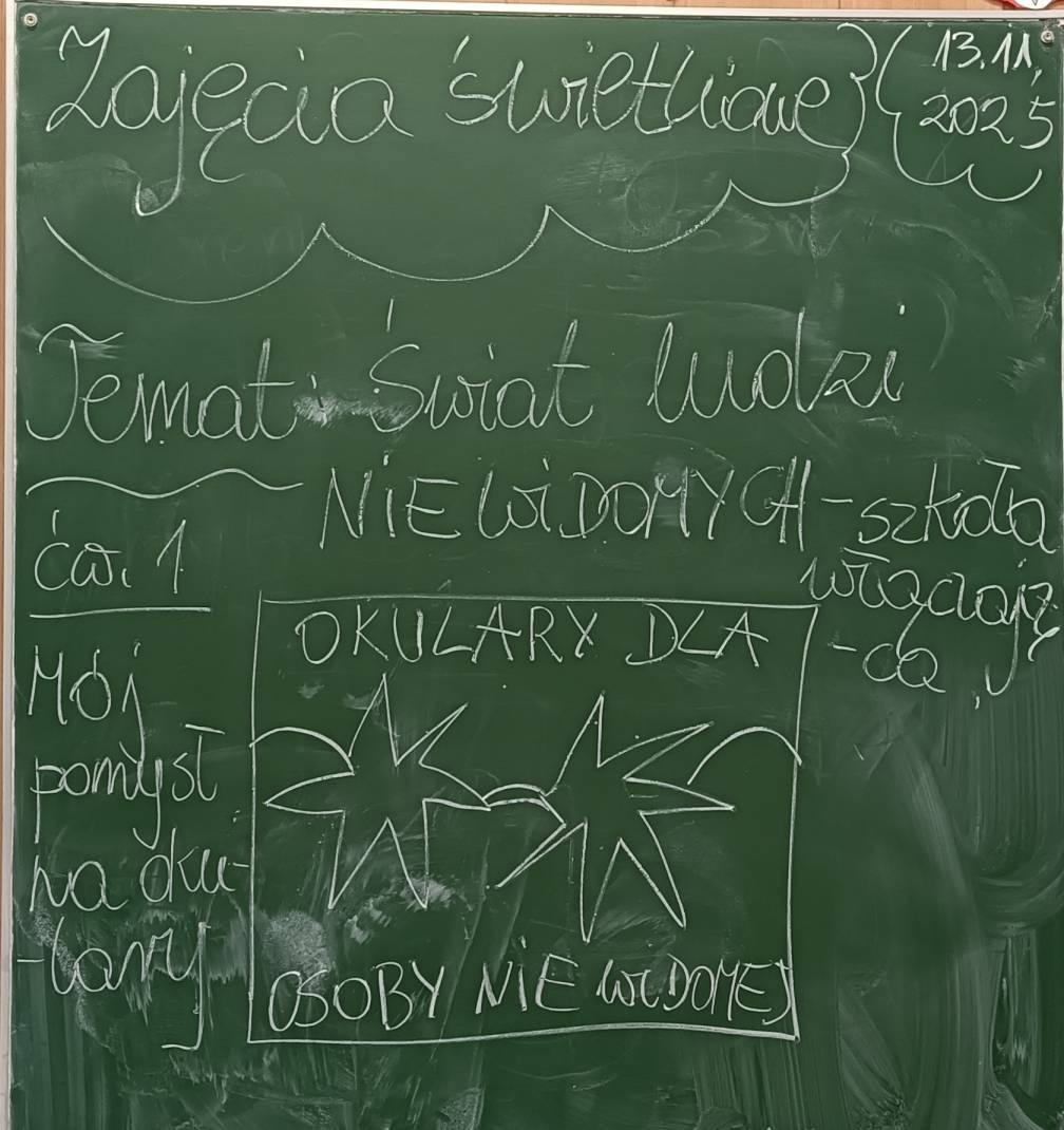 W dniu 13 listopada 2025 roku (czwartek) w naszej szkolnej świetlicy odbyły się zajęcia zabawy ruchowe z wykorzystaniem zmysłu: wzroku i słuchu z elementami socjoterapii poświęcone tematyce z okazji Międzynarodowego Dnia Osób Niewidomych w ramach działań szkoły włączającej. Uczniowie z klas młodszych 2b, 3d, 3d zostali wprowadzeni w tematykę pojęcia „osoba niewidoma”, „osoba niedowidząca”, „wada wzroku”. Uczniowie z klas 2 i 3 podczas zajęć uczestniczyli w zabawach ruchowych z wykorzystaniem zmysłu wzroku i słuchu. Zabawy mające na celu integrację, empatię, współpracę w grupie pomogły dzieciom zrozumieć, że pomoc osobie z niepełnosprawnością sprawia nam radość, ułatwia relację z innymi. Dzieci uważanie i z dużą empatią uczestniczyły w tych zajęciach, były bardzo ciekawe i z chęcią wykonały zaproponowane ćwiczenia praktyczne. Uczniowie z zaangażowaniem uczestniczyli w zaproponowanych zabawach ruchowych.