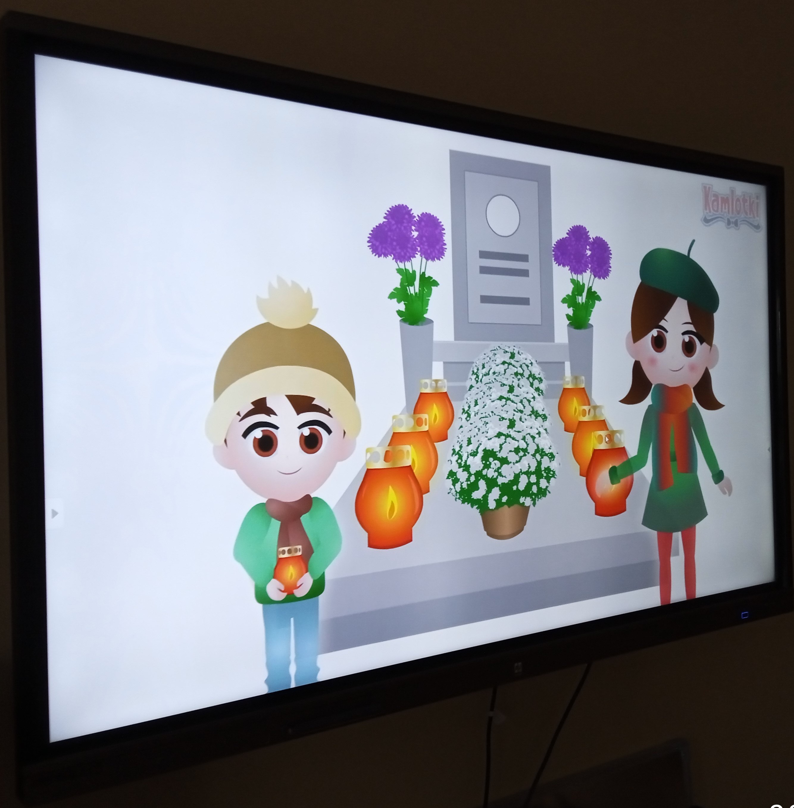 Z okazji zbliżającego się Dnia Wszystkich Świętych dzieci z klas pierwszych uczestniczyły w zajęciach świetlicowych, wypowiadały się na temat właściwego, kulturalnego zachowania na cmentarzu. Obejrzały edukacyjną bajkę na naszej tablicy multimedialnej. Pamiętajmy o tych, którzy odeszli...