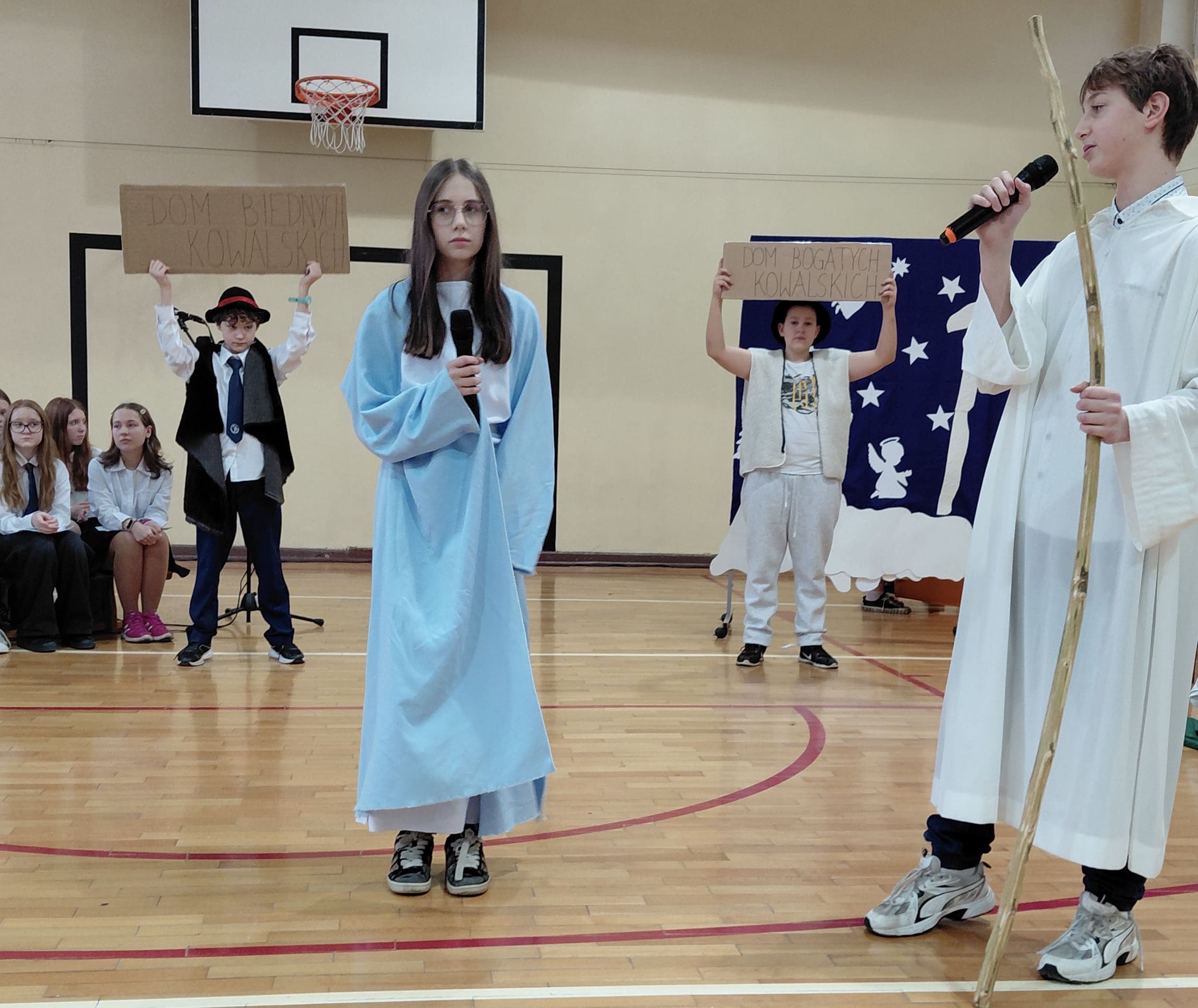 Święta, święta… czas szybko biegnie. W tym roku czas świąteczny uczciliśmy Jasełkami przygotowanymi przez klasę V A i VII B. Uczniowie jak prawdziwi aktorzy wczuli się w swoje role i przypomnieli wszystkim wydarzenie sprzed ponad dwóch tysięcy lat, przez które zawsze o tej porze roku przeżywamy chwile radości, uniesień pełnych ciepła i miłości.