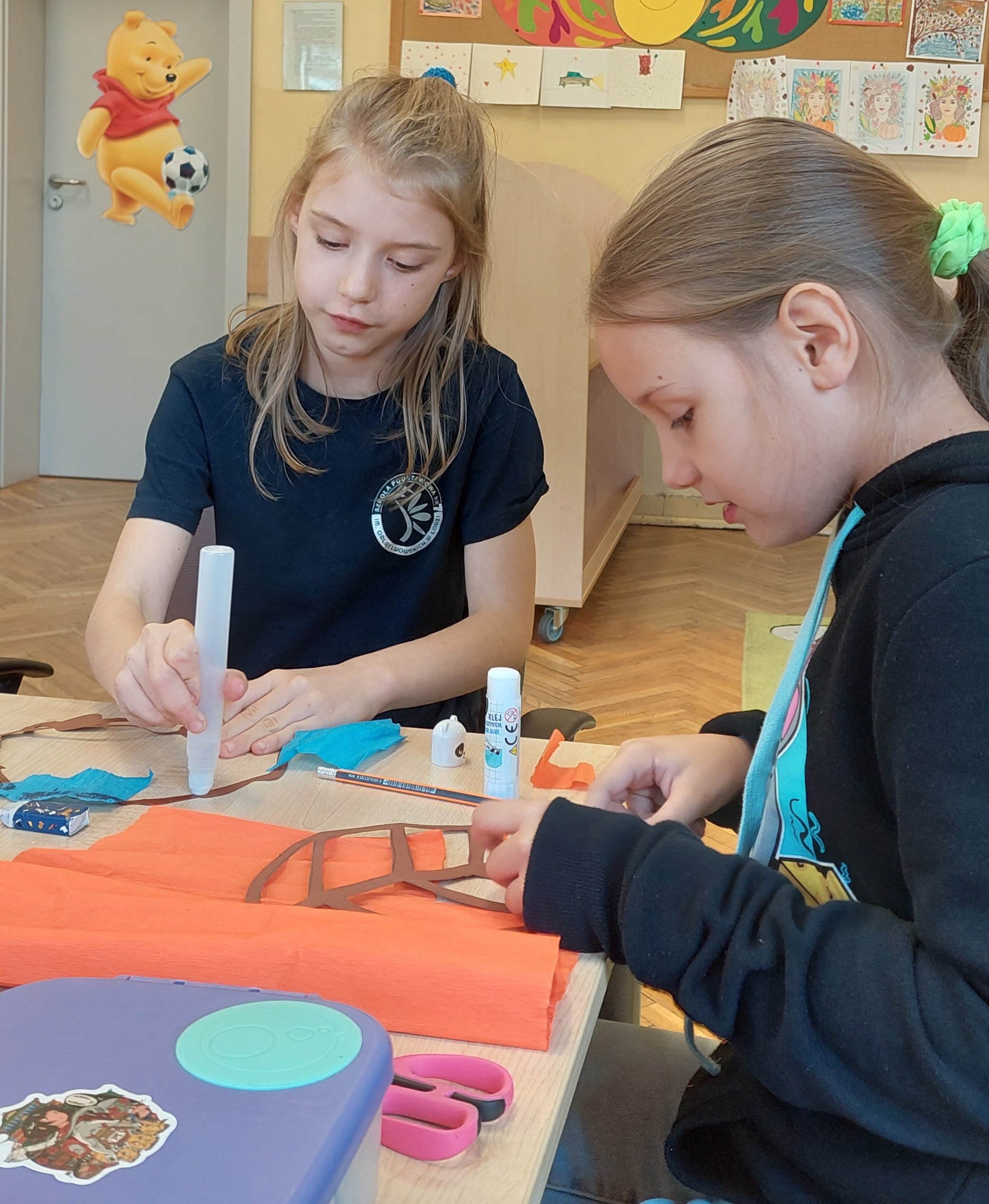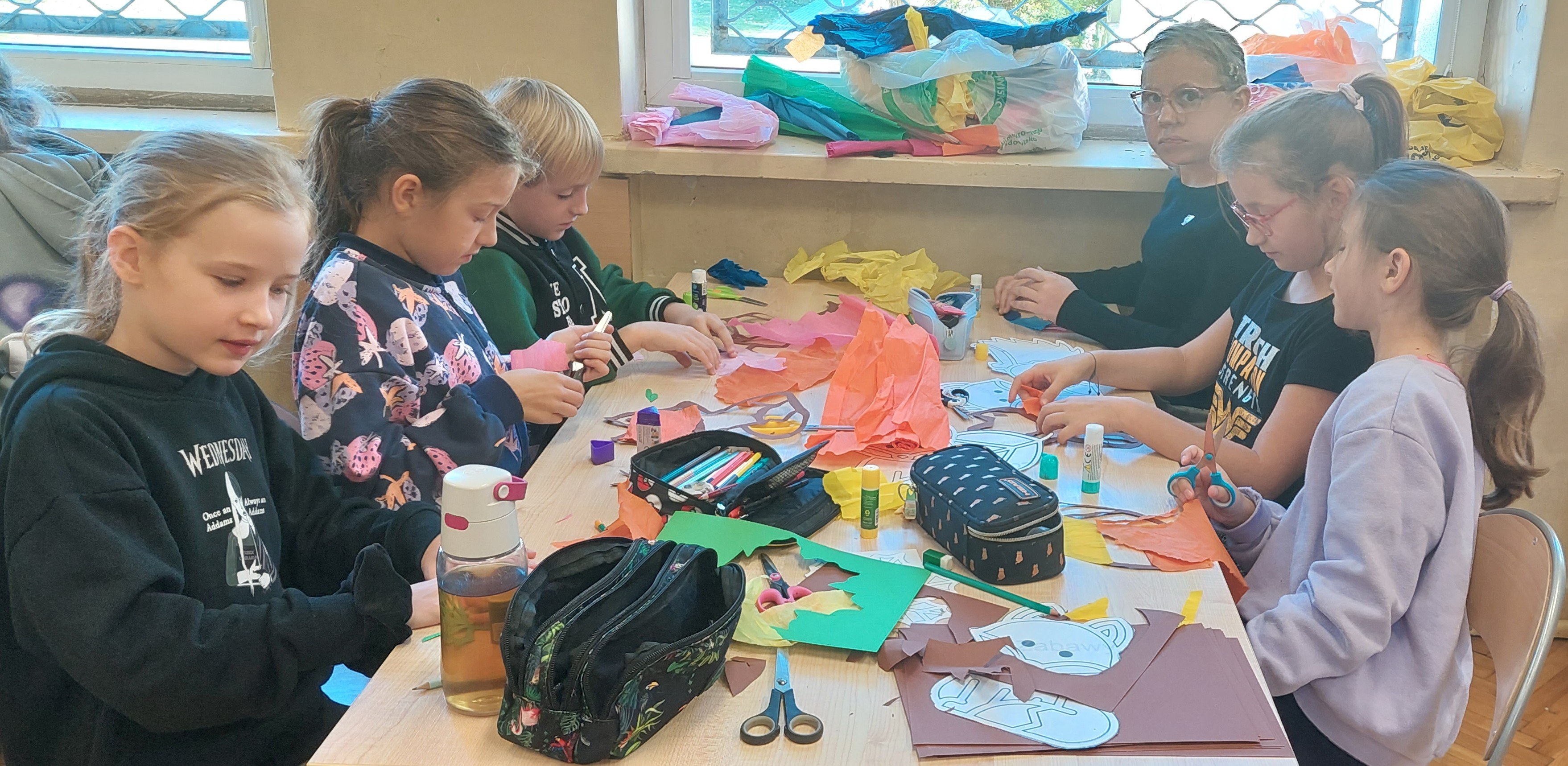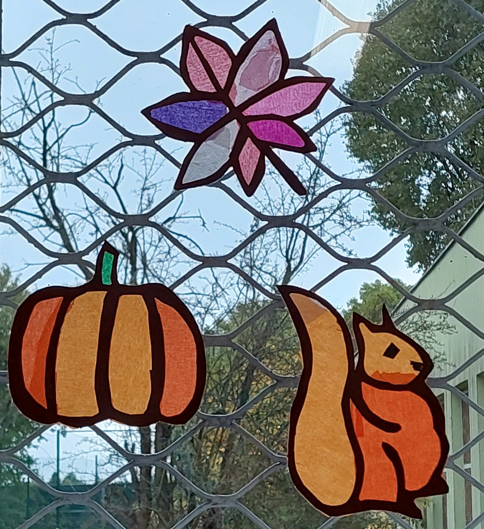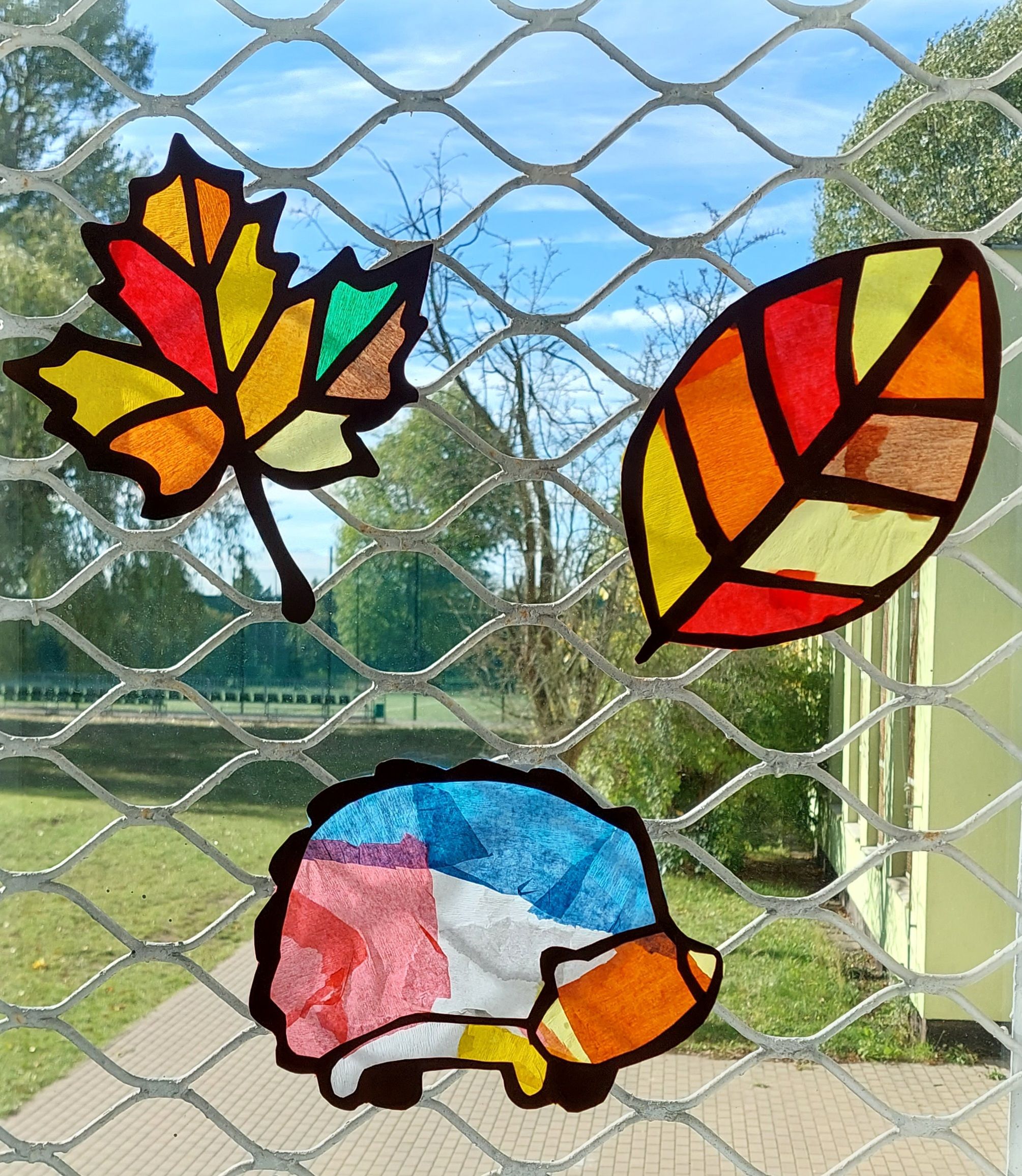 W naszej świetlicy ostatnio odbyły się jesienne zajęcia plastyczne, podczas których dzieci miały okazję wykonać własne witraże. Do pracy wykorzystały kolorową bibułę, z której powstały barwne kompozycje inspirowane jesienną aurą. Uczniowie wykazali się dużą dokładnością, cierpliwością oraz kreatywnością. Efekt ich pracy jest naprawdę wyjątkowy – piękne, kolorowe witraże ozdobiły okna świetlicy, wprowadzając do niej ciepłą i radosną atmosferę. Serdecznie zapraszam do podziwiania prac naszych małych artystów!
