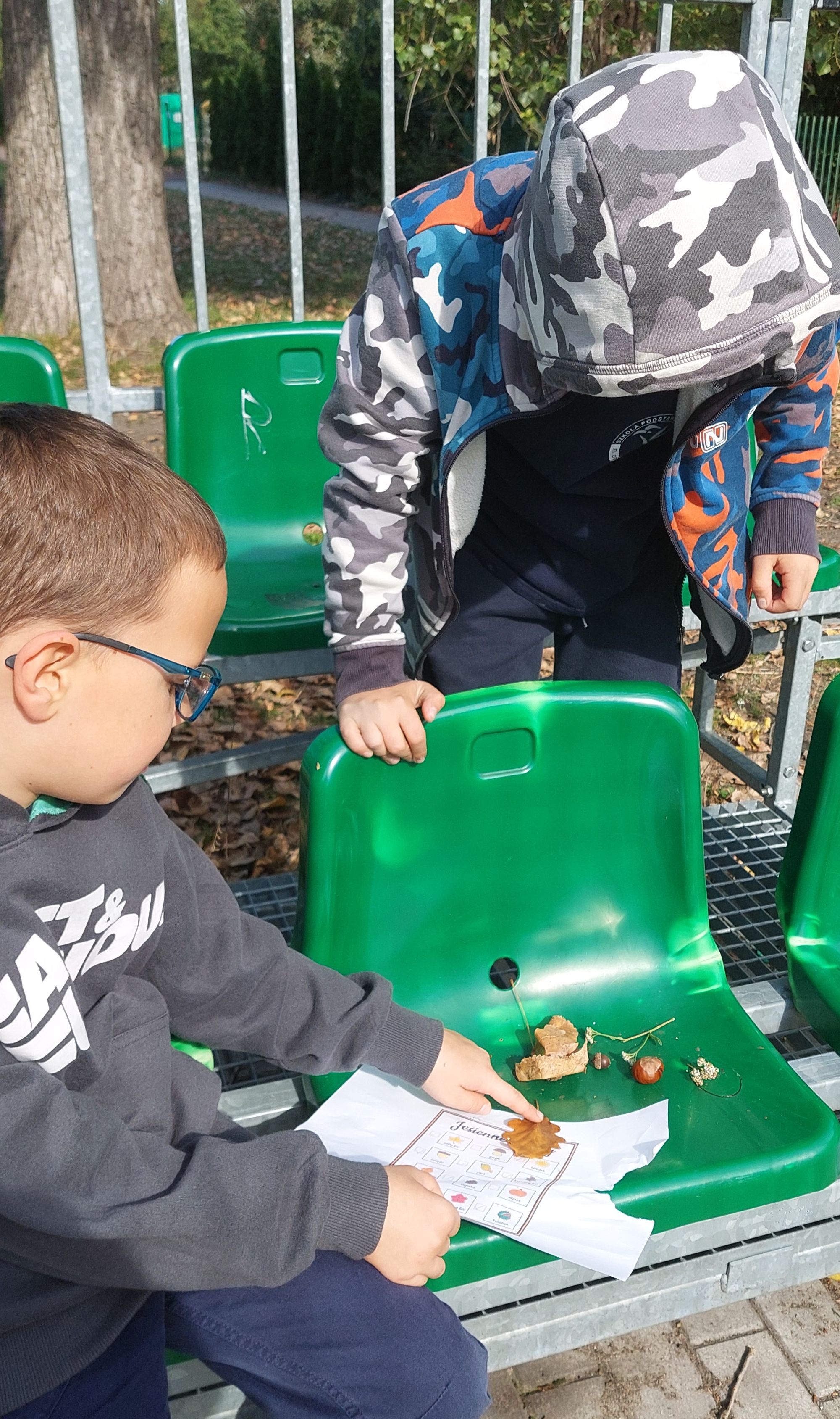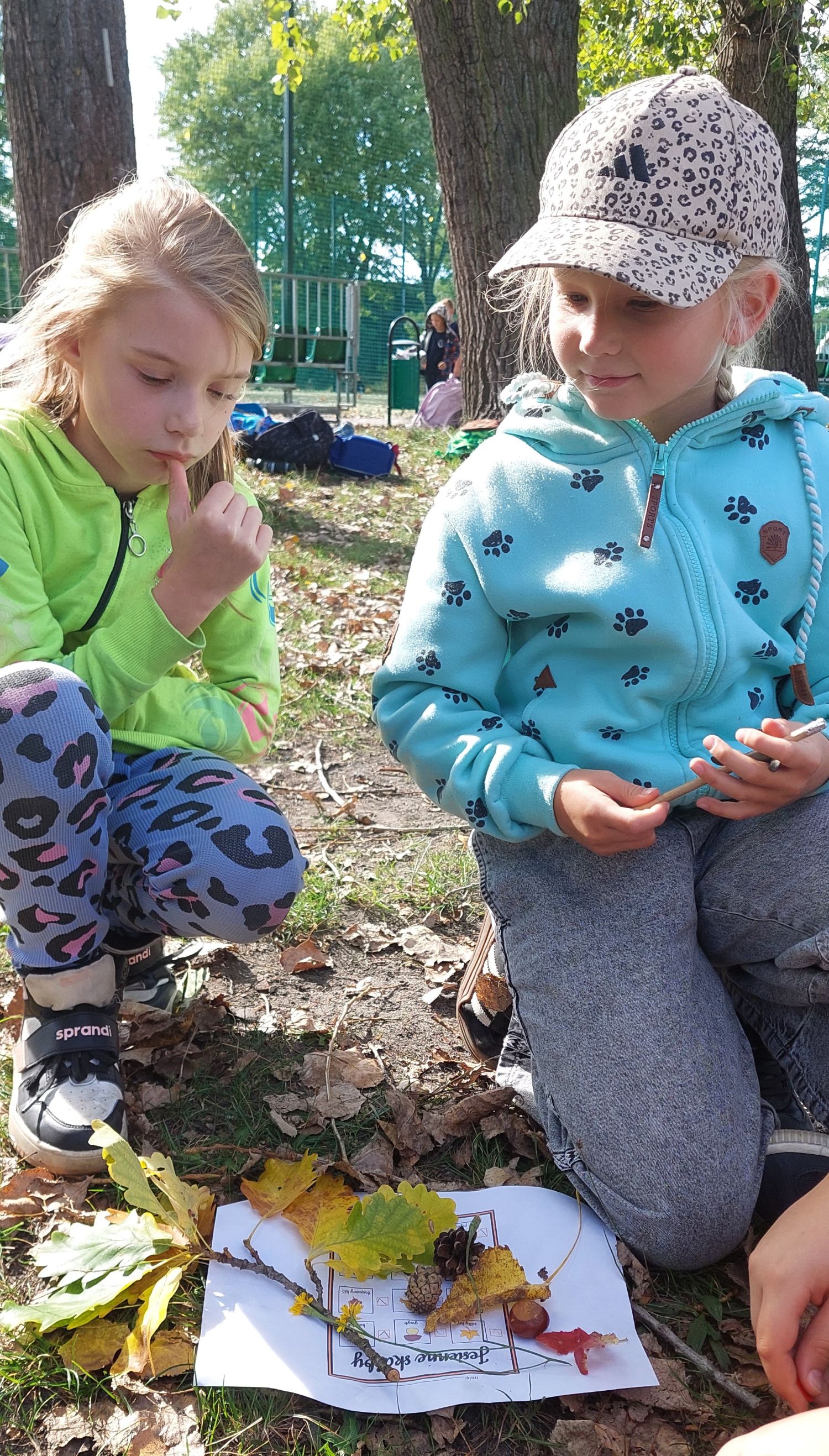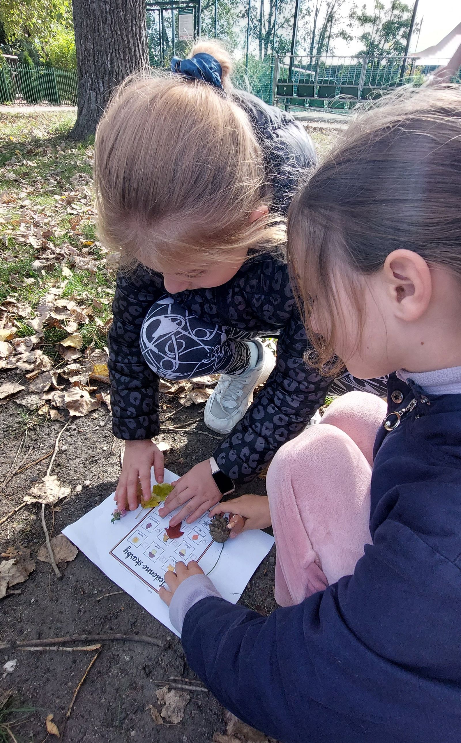 Podczas zajęć świetlicowych wraz z uczniami z klasy 2A, 2B oraz 3D zastanawialiśmy się, jak zmienia się widok za oknem wraz z nadejściem jesieni. Korzystając ze słonecznej pogody, wybraliśmy się na szkolne boisko, aby wziąć udział w zabawie „Jesienni detektywi”. Zadaniem dzieci było odszukanie pierwszych oznak jesieni, zebranie ich oraz zaznaczenie na specjalnie przygotowanej karcie pracy.