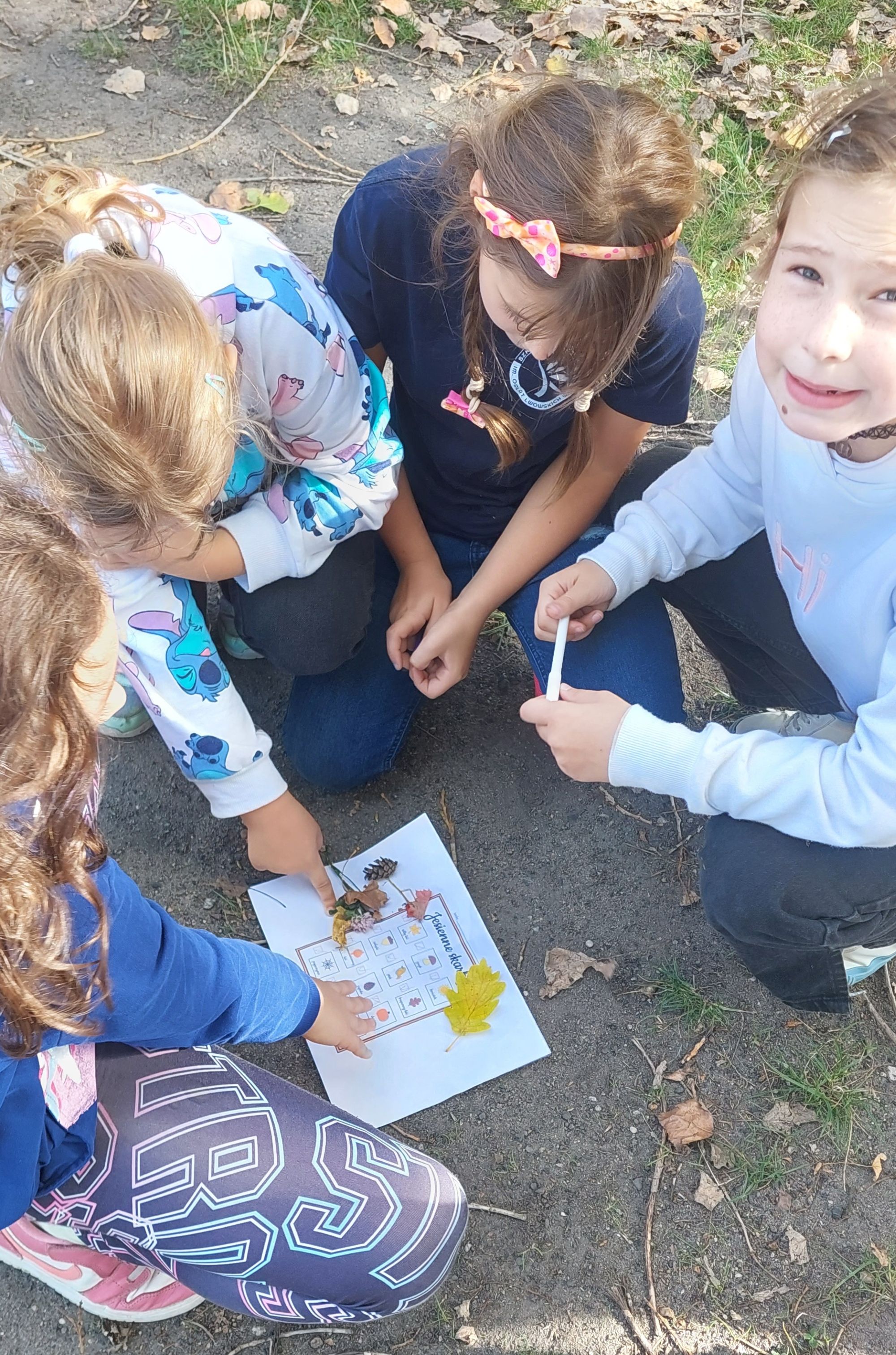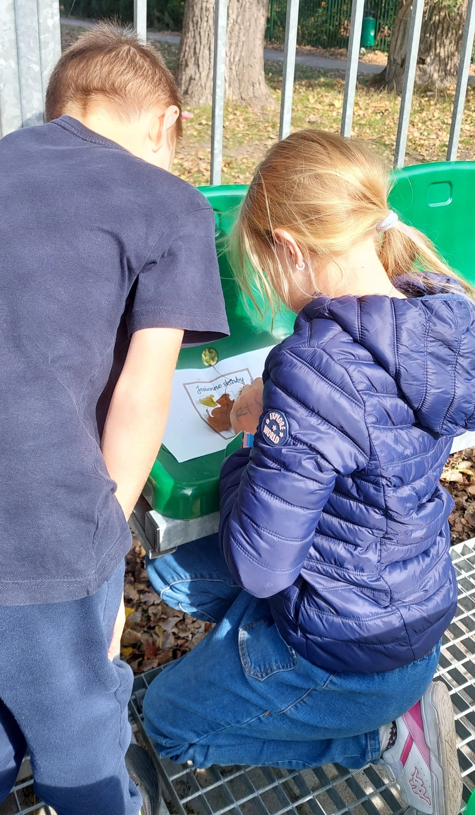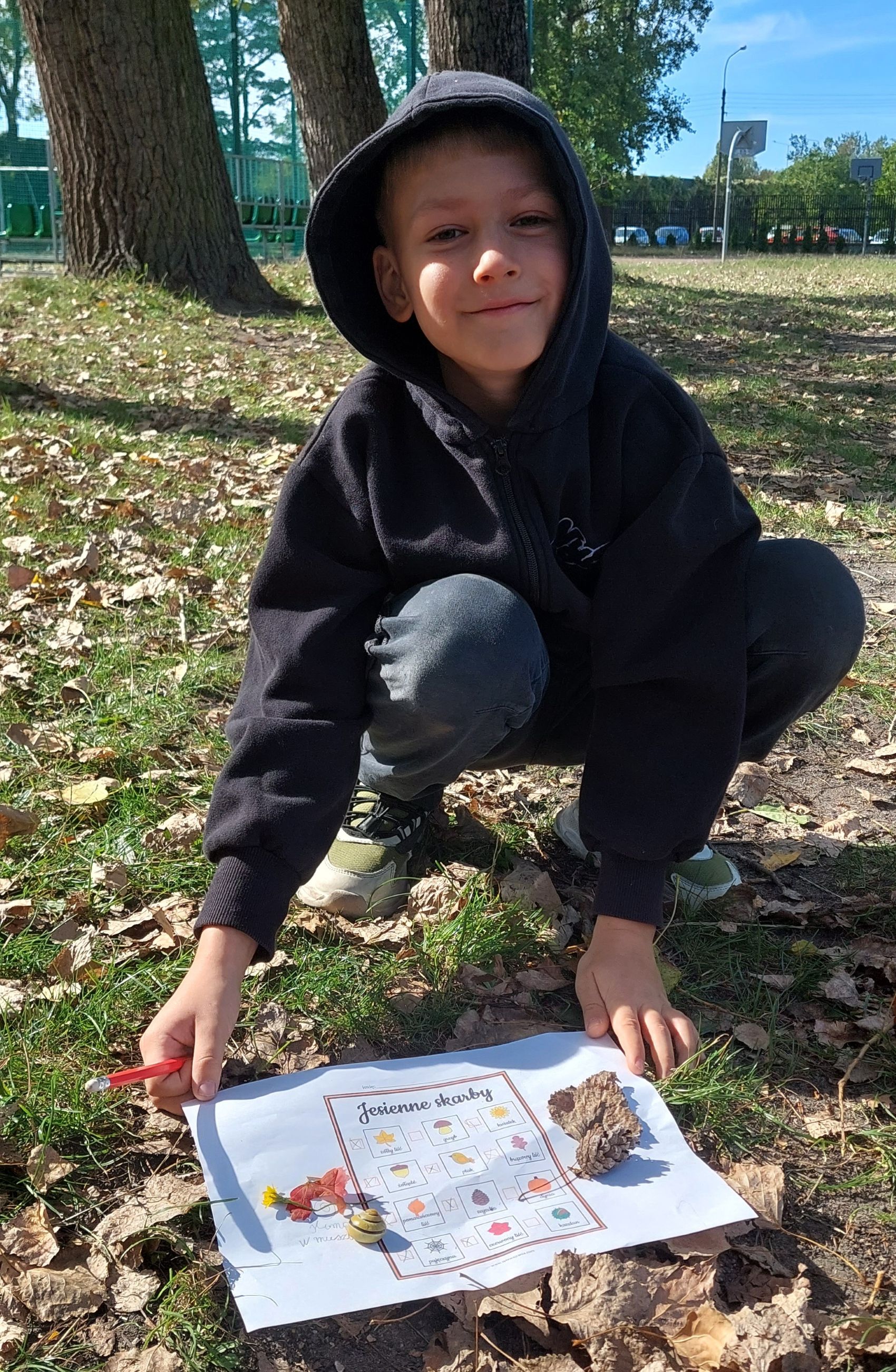 Podczas zajęć świetlicowych wraz z uczniami z klasy 2A, 2B oraz 3D zastanawialiśmy się, jak zmienia się widok za oknem wraz z nadejściem jesieni. Korzystając ze słonecznej pogody, wybraliśmy się na szkolne boisko, aby wziąć udział w zabawie „Jesienni detektywi”. Zadaniem dzieci było odszukanie pierwszych oznak jesieni, zebranie ich oraz zaznaczenie na specjalnie przygotowanej karcie pracy.