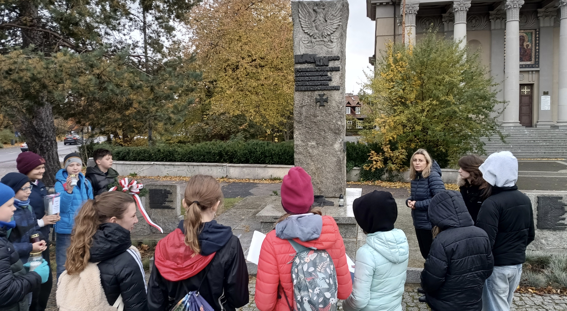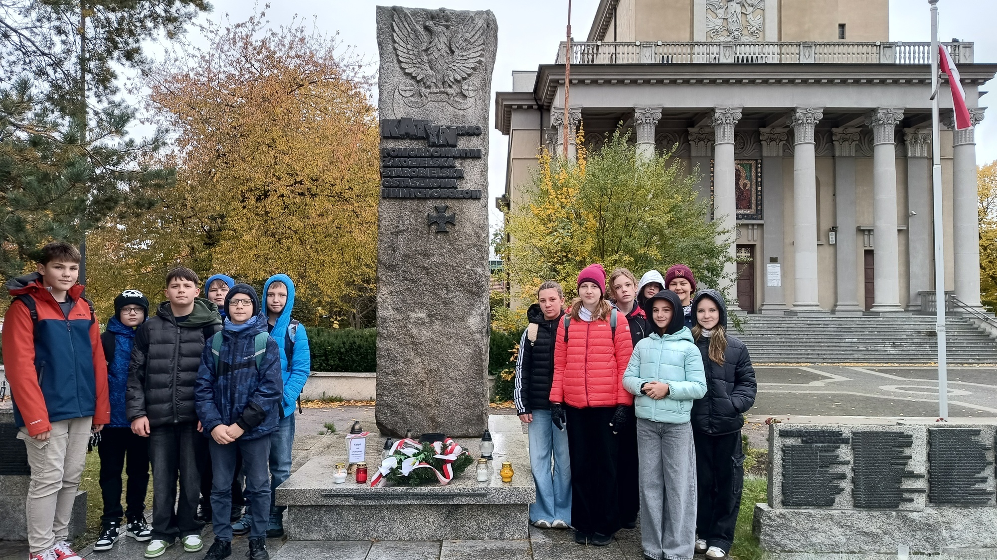 Oddając hołd bohaterom uczniowie zapalili znicze i złożyli kwiaty pod Pomnikiem Katyńskim. Lekcja zakończyła się chwilą ciszy.