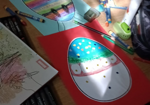 Uczniowie klasy IVa podczas lekcji plastyki wykonali w technice kolażu wielkanocne prace- piękne jajka. Część prac została zabrana do domu a część ozdobiła nieco tablicę na parterze, przypominając nam że święta są tuż,tuż... Wesołych!:)