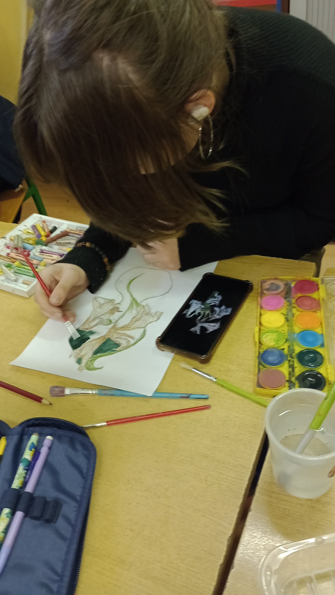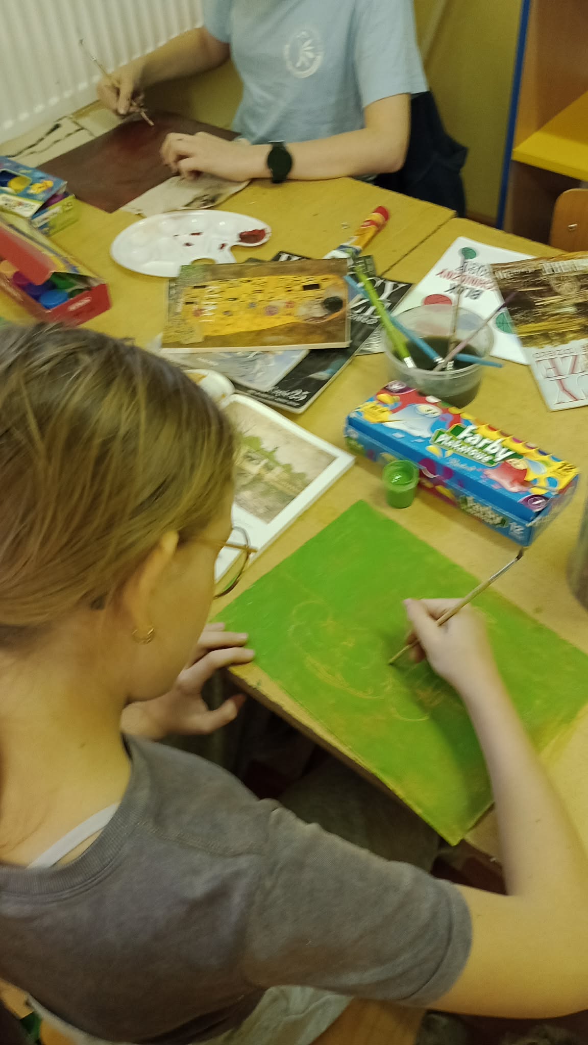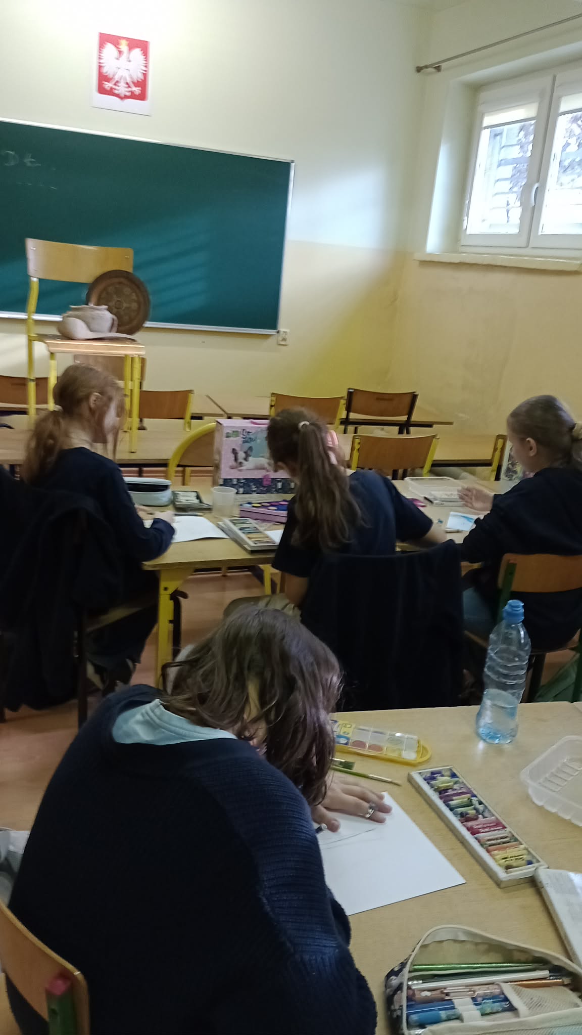 Koło plastyczne oczarowane sztuką tworzy cały czas: martwa natura w technice mieszanej czy sgraffito - to jest to. Prace powstałe na ostatnich zajęciach można podziwiać na tablicy na I piętrze. A uczestniczki zajęć plastycznych wsparły także kącik plastyczny podczas Dnia Otwartego i zarażały maluchy odwiedzające nasza szkołę miłością do działań twórczych.