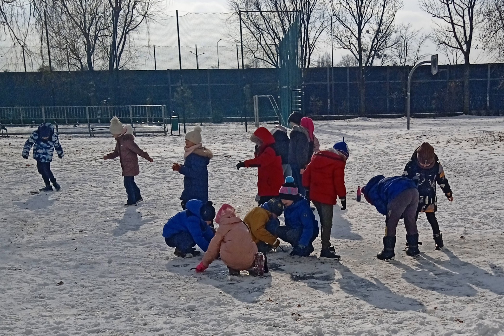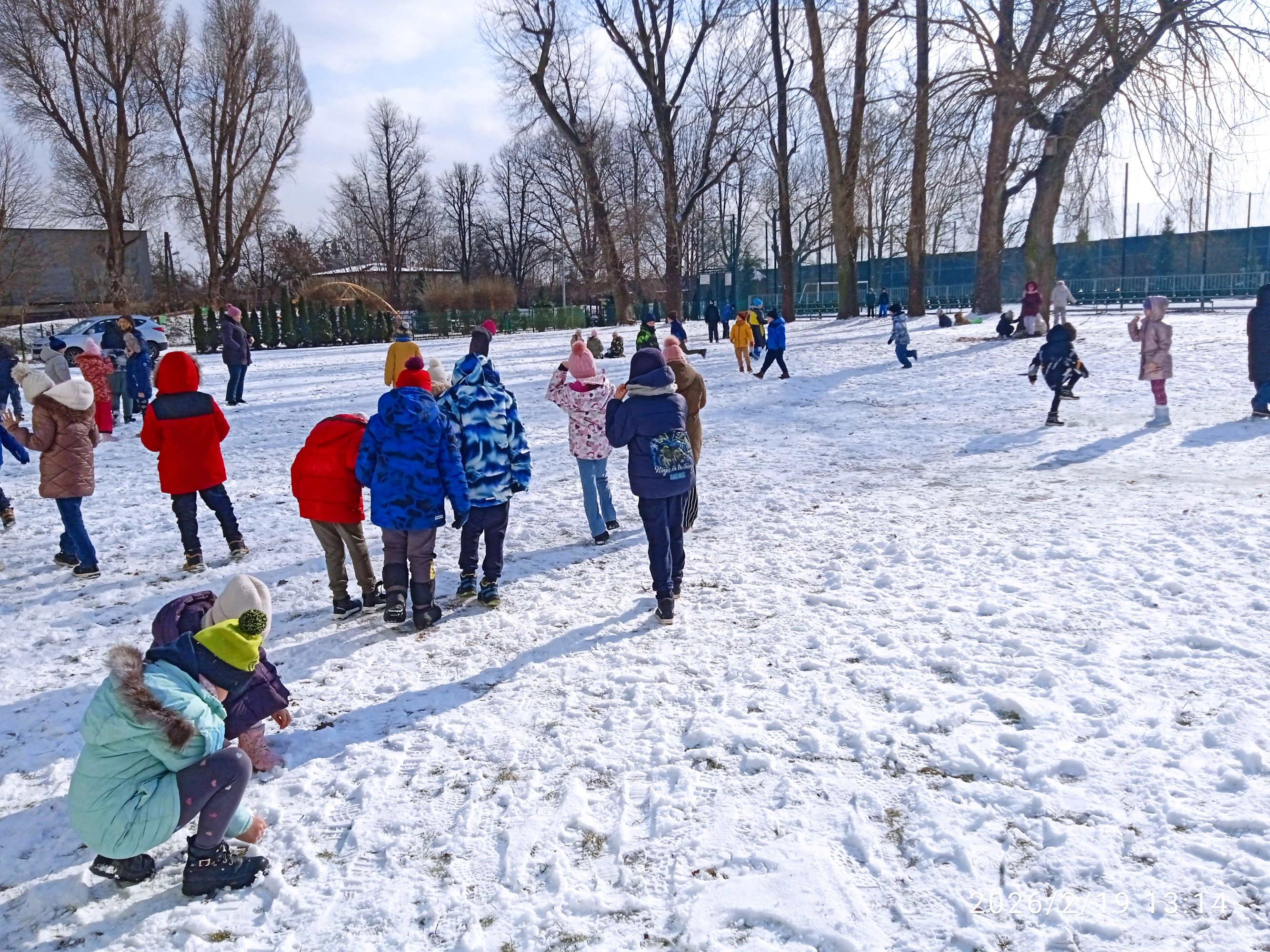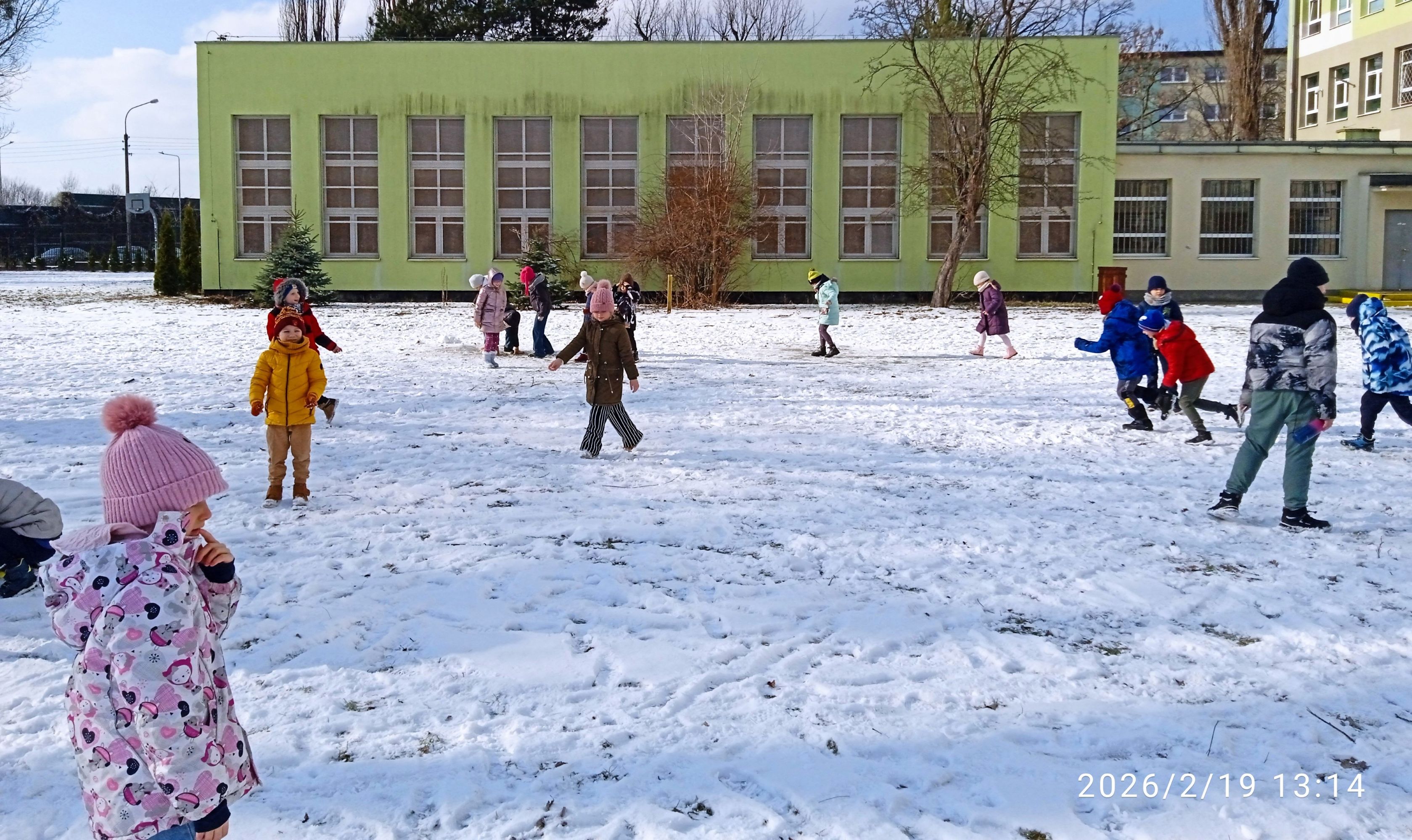 Zimno nam nie straszne. Korzystamy z uroków tej pięknej pory roku i zachęcamy do tego wszystkie dzieci! Lepienie bałwana, bezpieczne zabawy na śniegu (pamiętamy o tym, żeby nie rzucać w siebie śnieżkami) i każda buzia jest uśmiechnięta.