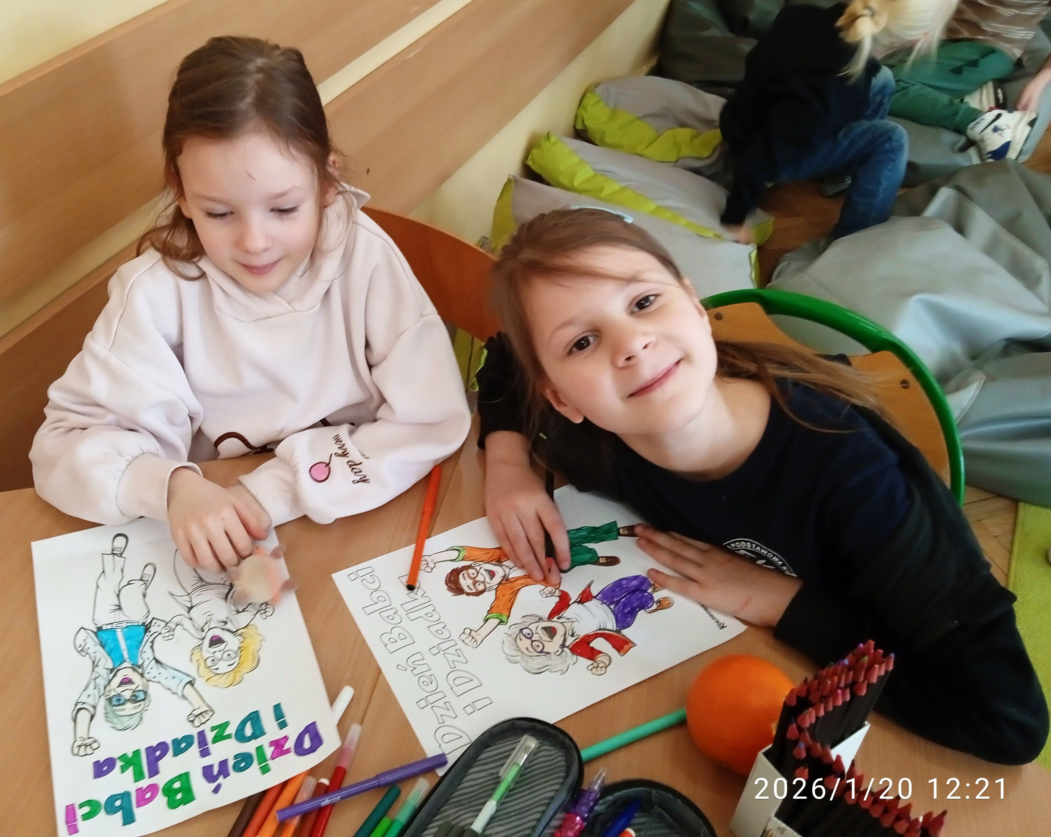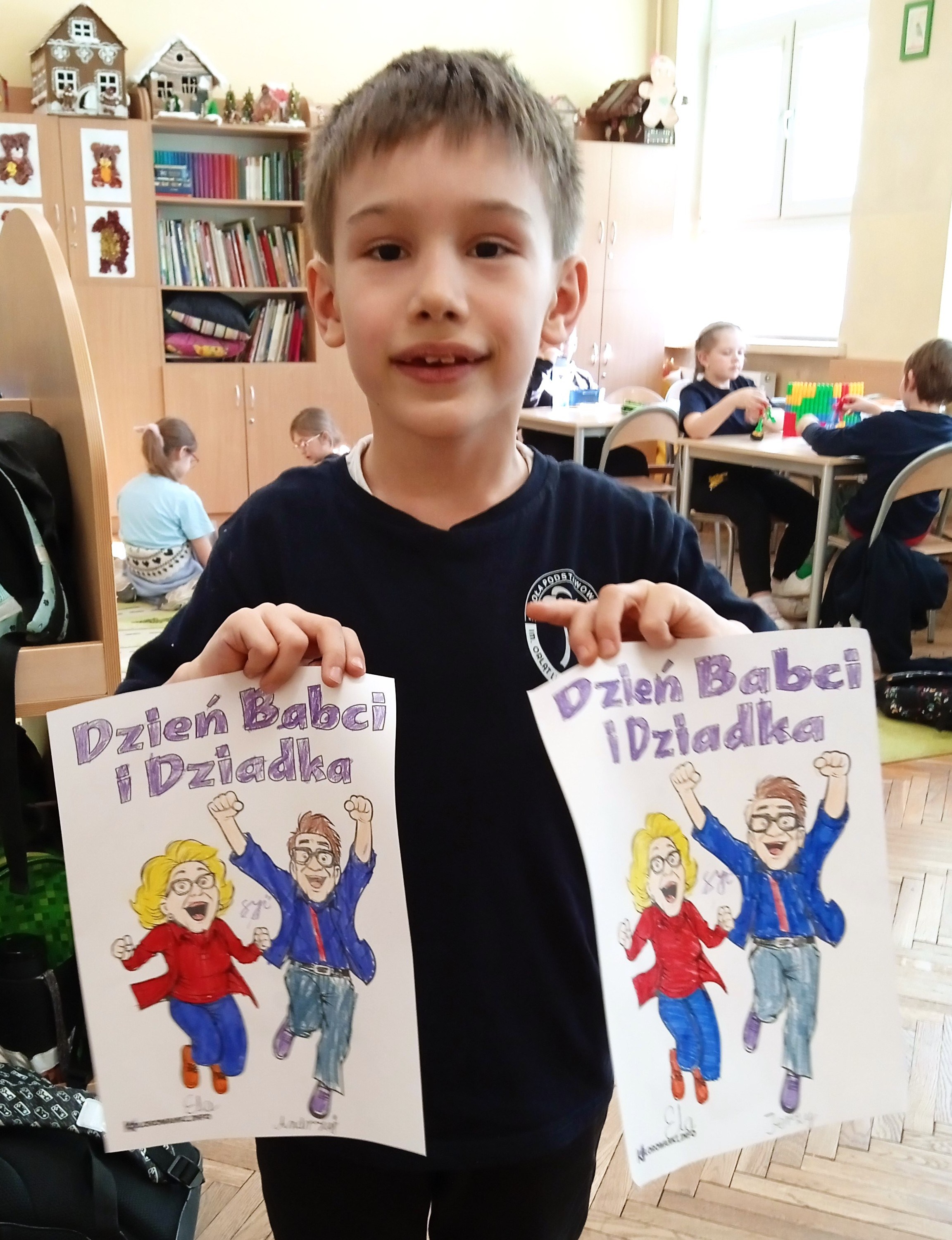 Z okazji Dnia Babci i Dziadka chętni uczniowie z klasy 1a stworzyli piękne laurki. Zastanawialiśmy się wspólnie jakie cechy mają nasi kochani dziadkowie i jak można im codziennie pomagać.