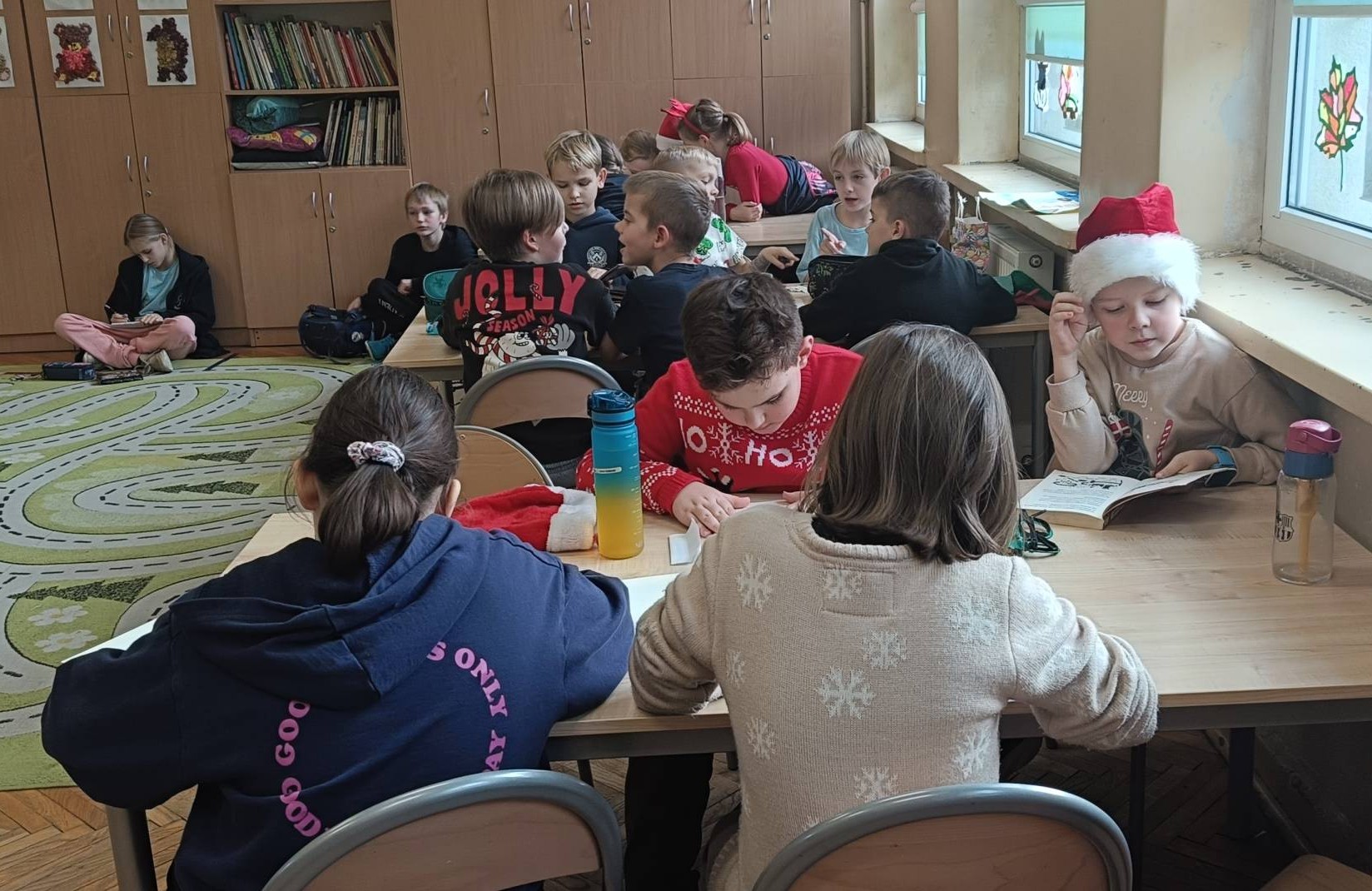 W dniu 8 grudnia 2025 roku (poniedziałek) w naszej szkole odbyły się zajęcia świetlicowe z okazji Mikołajek pt. „Warto przebrać się za świętego Mikołaja”. Dzieci wykonywały ciekawe ćwiczenia na kreatywność i pomysłowość. Wykonując te ćwiczenia praktyczne dzieci słuchały wybranych utworów muzyki relaksacyjnej, która miała pobudzić ich wyobraźnie oraz kreatywność. Dzieci tworzyły mapę myśli do słowa – „MIKOŁAJKI” podając własne skojarzenia. Uczniowie brali udział w zabawie pt. „Kto tak jak ja lubi mikołajki …, to” wykonując gest lub ruch. Uczniom bardzo podobały się te ćwiczenia kreatywne. Zajęcia nie tylko miały uwrażliwić uczniów na tematykę ważności relacji w życiu człowieka, pobudzić ich kreatywność w działaniu praktycznym, ale przede wszystkim miały zwrócić ich uwagę na współpracę w grupie rówieśniczej. Uczniowie na zakończenie zabaw na pomysłowość wykonali pracę plastyczną portret Mikołaja. To działanie bardzo je zaciekawiło.