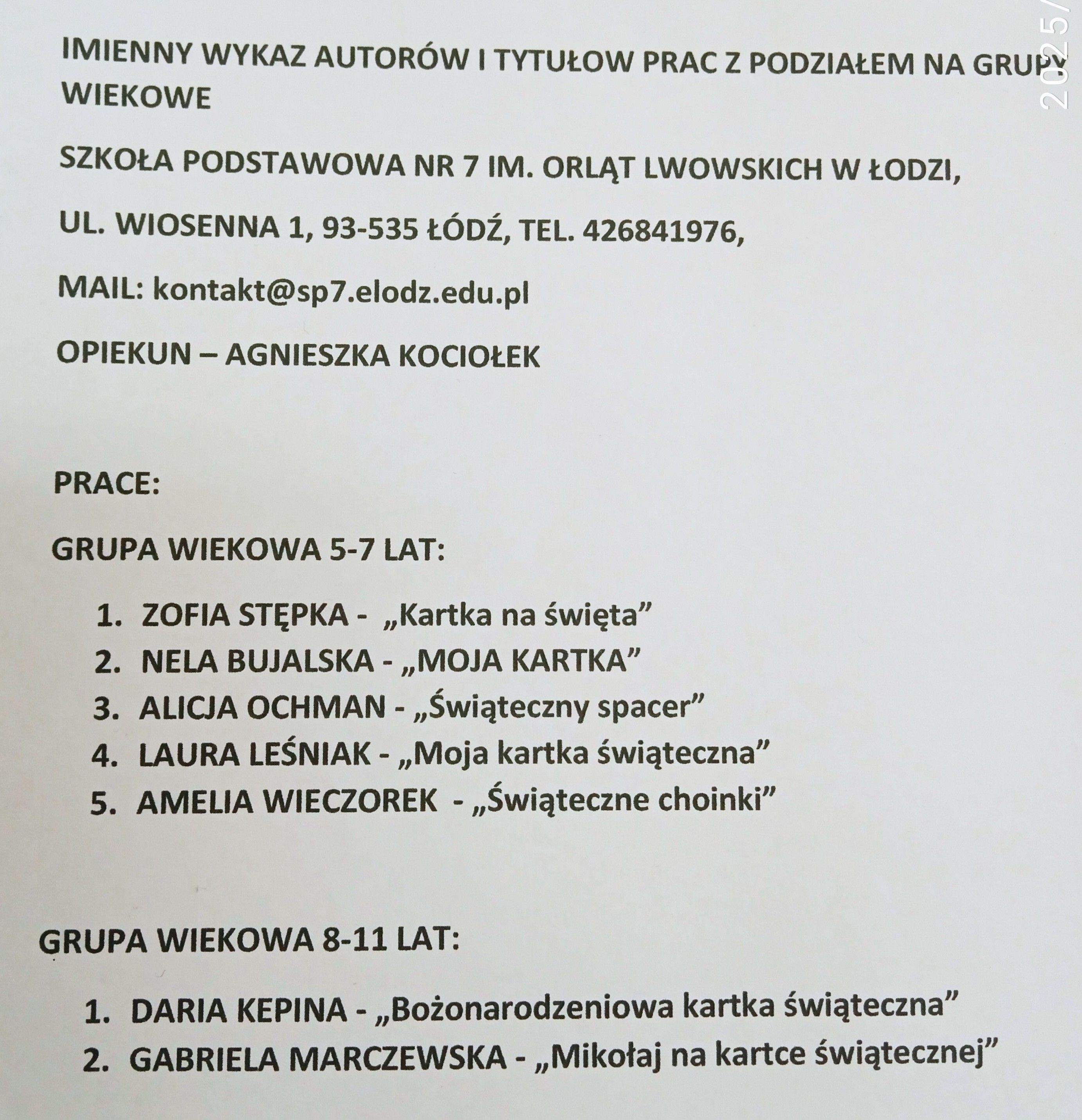 W grudniu miałam zaszczyt zostać opiekunem 7 zdolnych młodych artystek z naszej szkoły, które wzięły udział w ogólnopolskim konkursie plastycznym "Karteczka Bożonarodzeniowa i Noworoczna". Dziewczynki stworzy piękne prace! Życzę powodzenia i gratuluję!