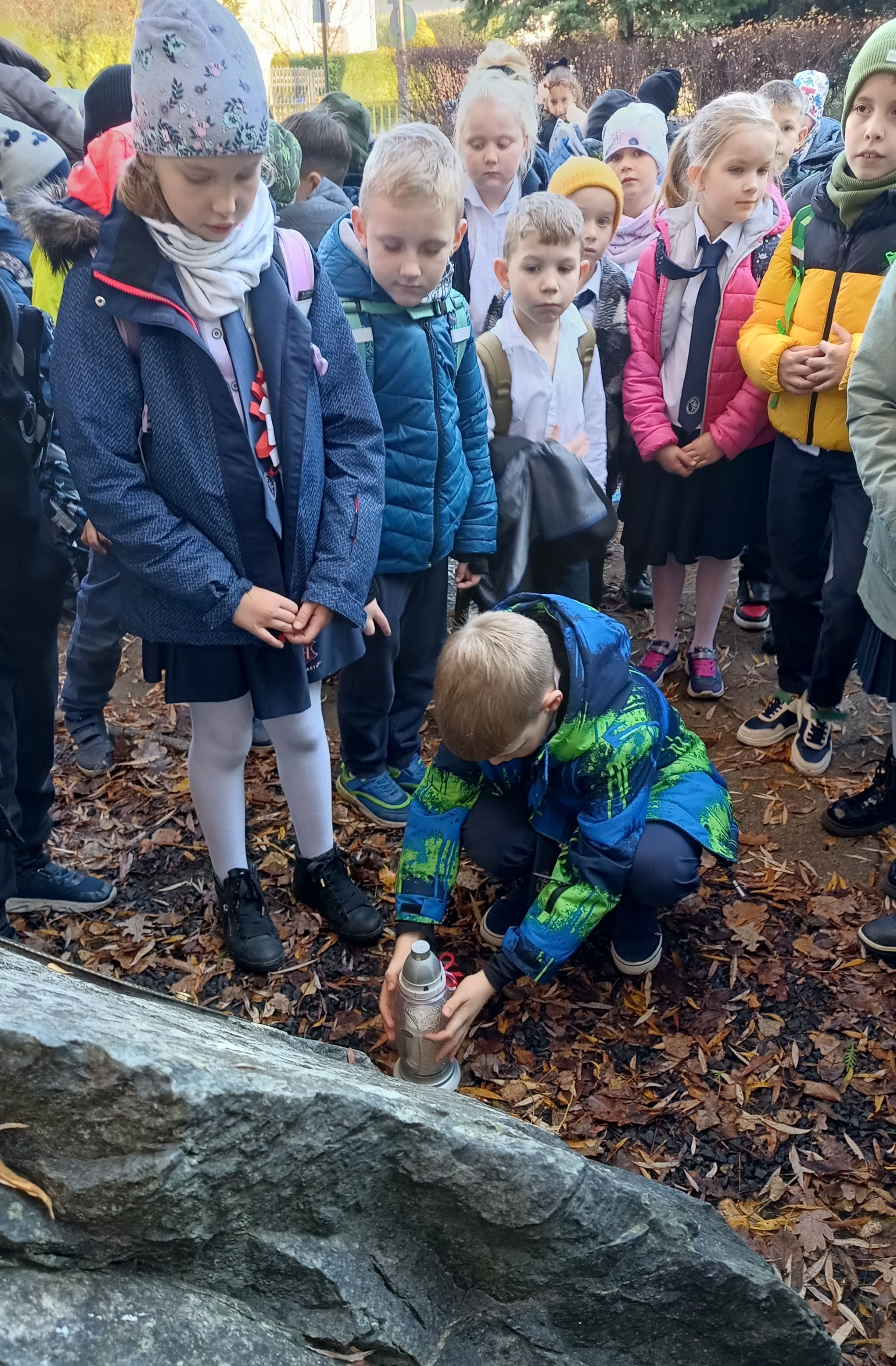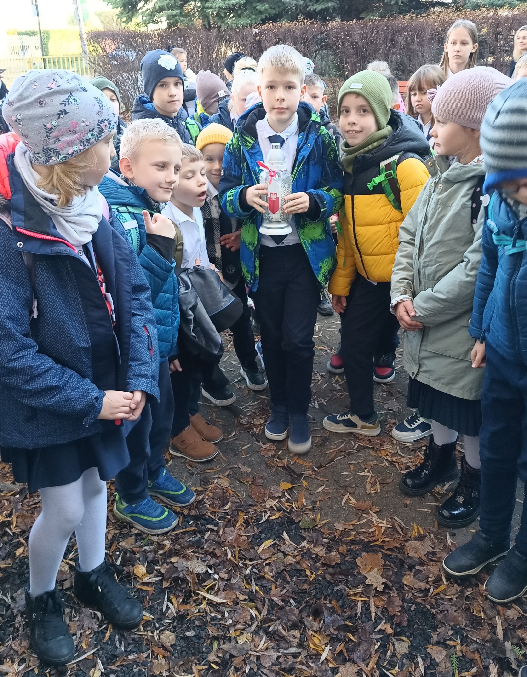 11 listopada to szczególna data w historii naszego kraju. Tego dnia w 1918 roku, po 123 latach niewoli, Polska odzyskała niepodległość. W tym roku obchodzimy 107. rocznicę tego doniosłego wydarzenia. Aby uczcić Narodowe Święto Niepodległości, Szkolni Strażnicy Pamięci wraz z uczniami klas I–II zapalili Znicz Pamięci pod „Pomnikiem Stulecia Odzyskania Niepodległości” znajdującym się przed naszą szkołą. Była to ważna chwila, w której najmłodsi uczniowie mogli w praktyczny sposób uczyć się szacunku do historii i symboli narodowych.