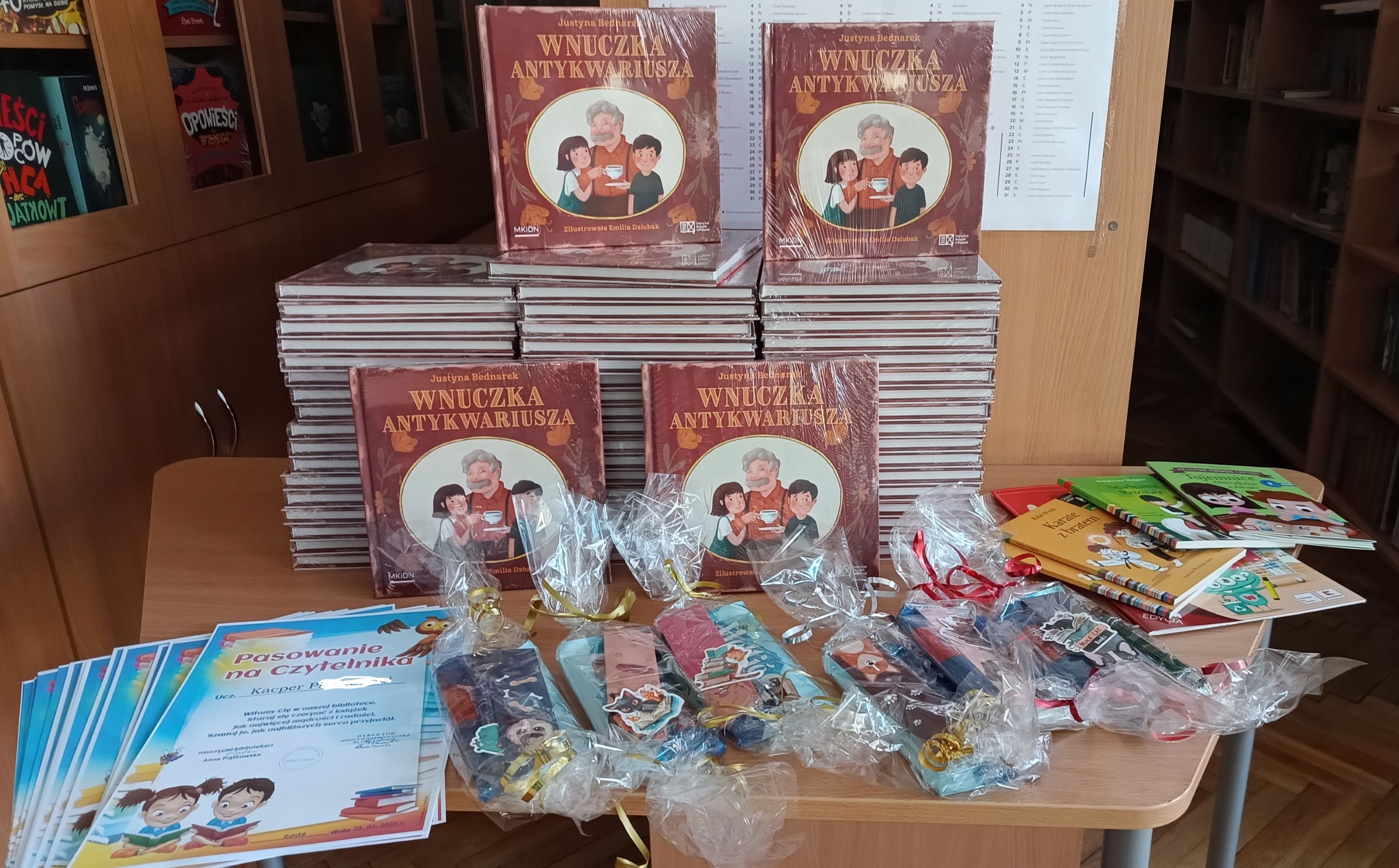 Na pamiątkę tego wyjątkowego wydarzenia wszyscy pierwszoklasiści otrzymali piękne dyplomy oraz wyprawki czytelnicze przygotowane przez Instytut Książki w ramach kampanii „Mała książka – wielki człowiek”.