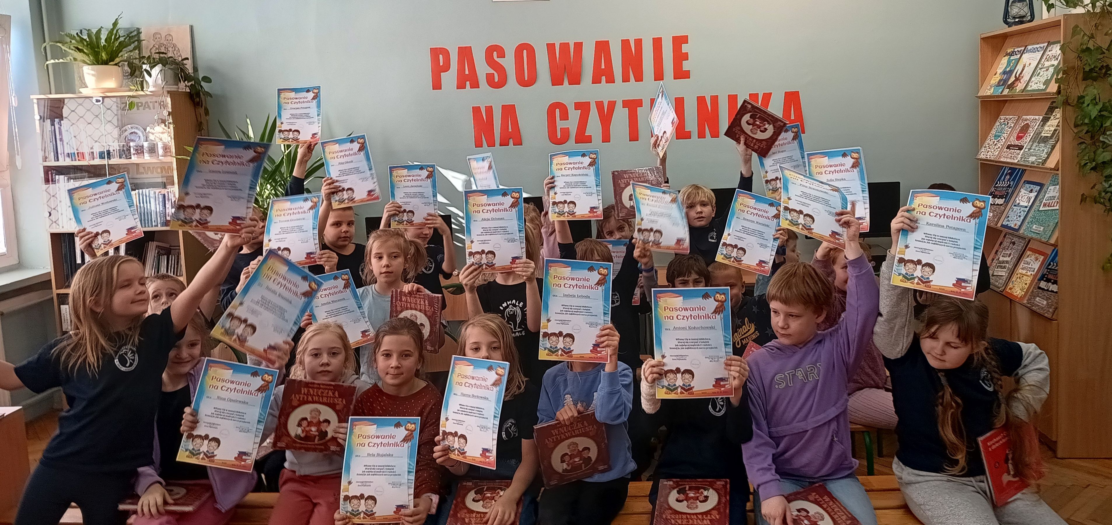 Pasowanie na czytelnika to oficjalne przyjęcie uczniów klas pierwszych do grona użytkowników biblioteki. Podczas spotkania dzieci wykazały się wzorową znajomością zasad obowiązujących w bibliotece, doskonale wiedziały, jak należy dbać o książki, a także z entuzjazmem rozwiązywały zagadki sprawdzające znajomość bohaterów baśni i bajek. Zwieńczeniem uroczystości było uroczyste przyrzeczenie czytelnika składane przez uczniów klas I. Dzieci głośno i z powagą powtarzały tekst przysięgi odczytany przez Panią Książkę, obiecując szanować książki, korzystać z ich mądrości oraz sumiennie wypełniać obowiązki czytelnika.