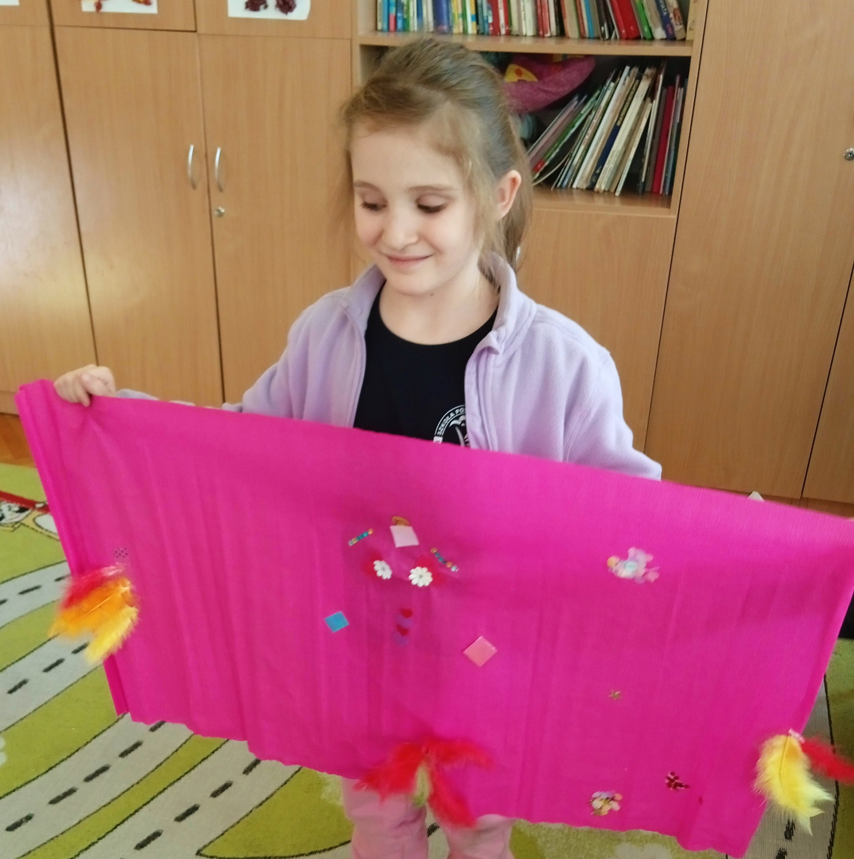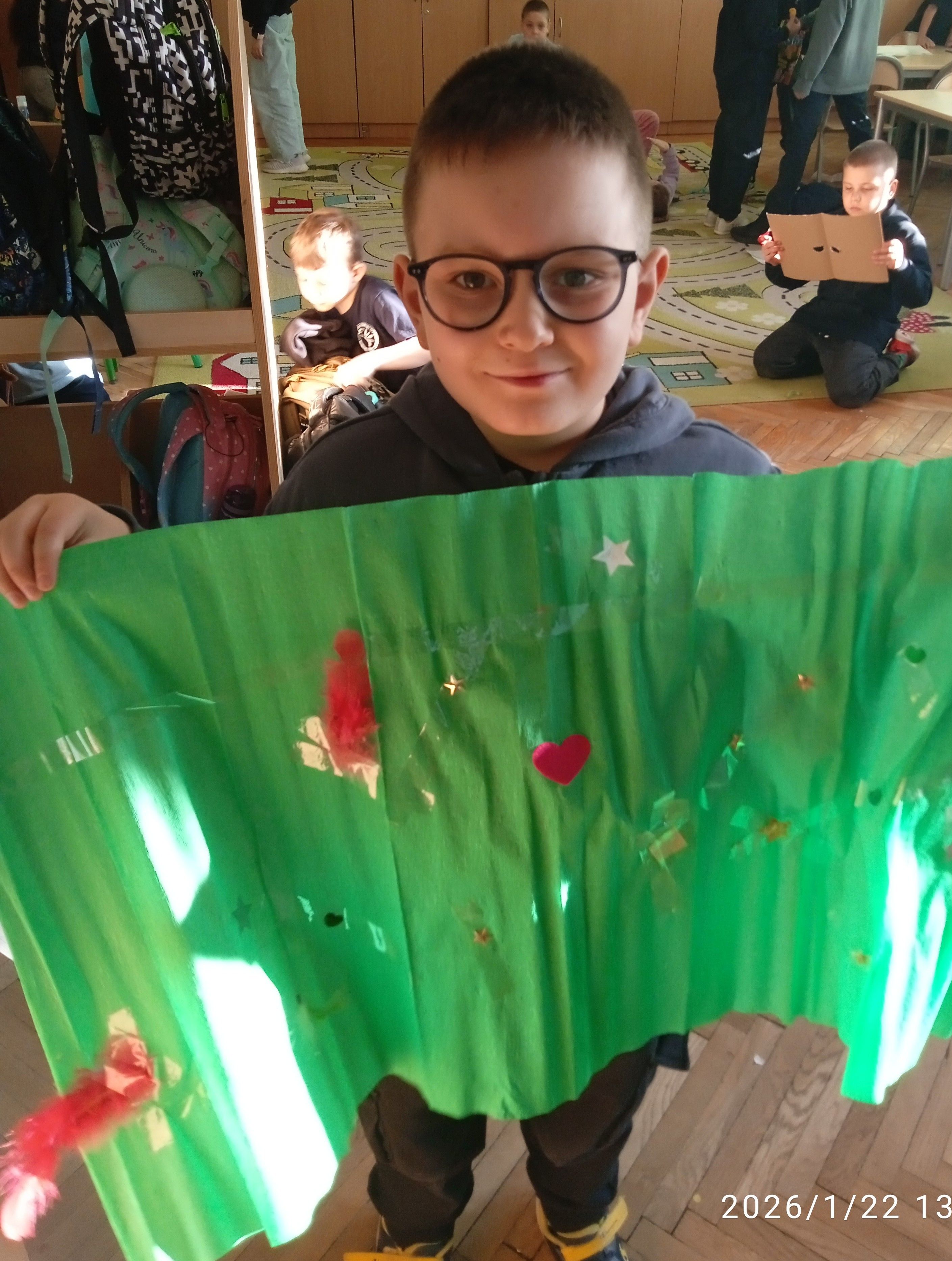 22.01.2026r. chętne dzieci z klas pierwszych projektowały karnawałowe stroje. Stworzyły piękne peleryny z bibuły ozdobione cekinami, piórkami, brokatem. Wykazały się dużą pomysłowością i życzliwością- wymieniały się i zgodnie dzieliły ozdobami. Chętni artyści pozowali do zdjęć ze swoimi pelerynami, które chcą zabrać na zbliżający się bal karnawałowy.