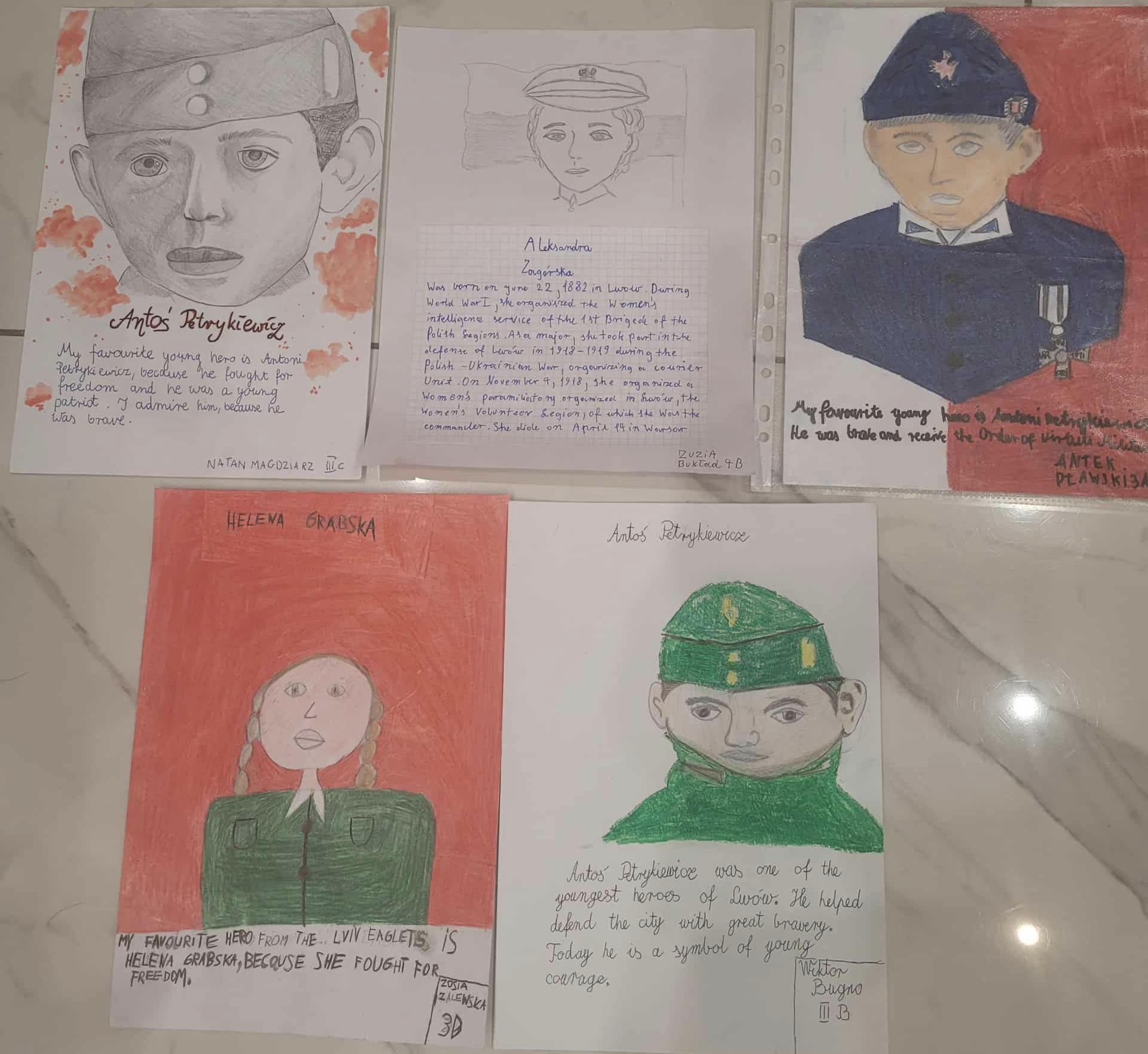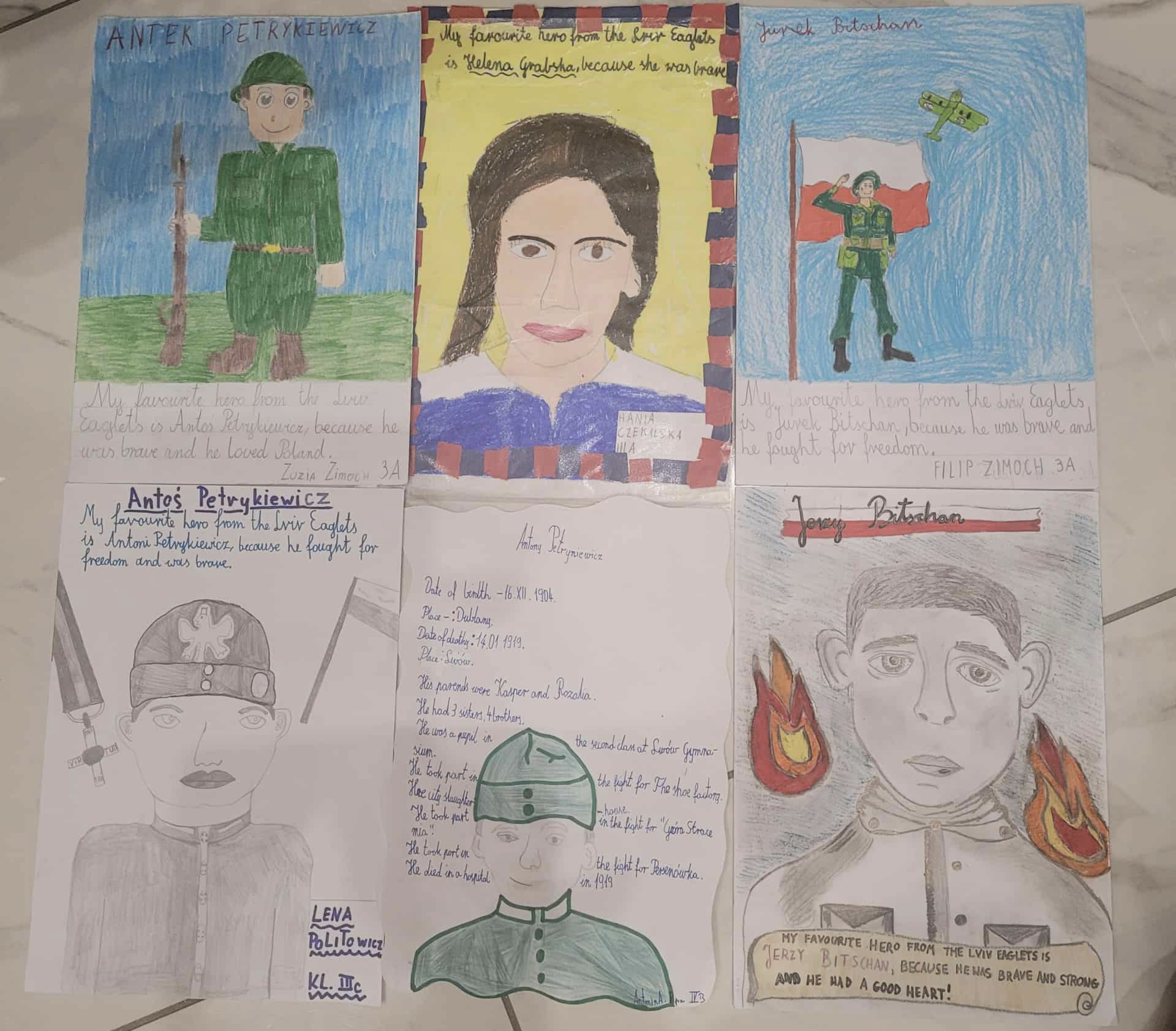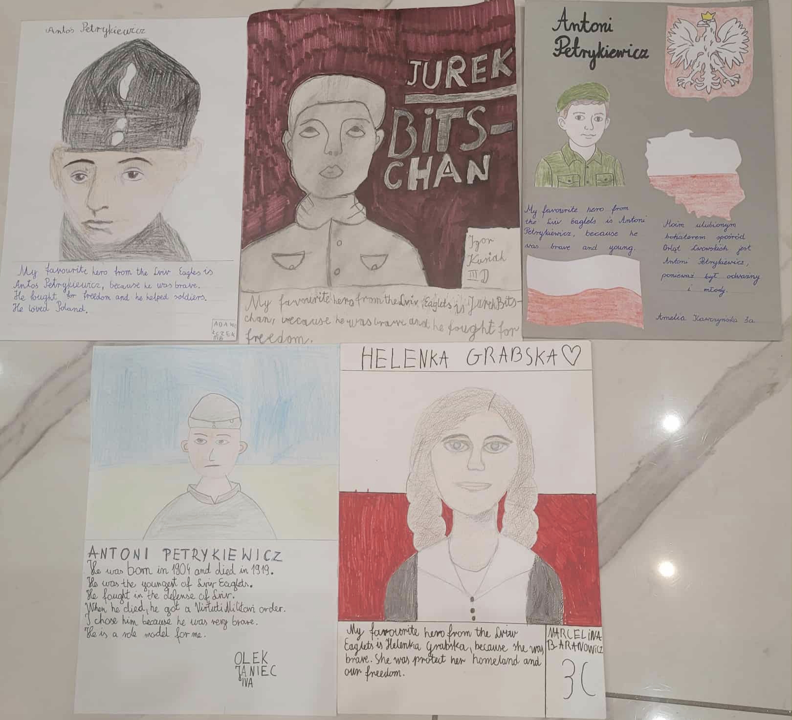 W ramach obchodów przygotowaliśmy konkurs skierowany do uczniów klas trzecich i czwartych. Miał on charakter nie tylko stricte patriotyczny czy artystyczny, lecz również językowy. Zależało nam, aby uczniowie potrafili w języku angielskim wyrazić swoje myśli, opisać wybranego bohatera oraz nadać swoim pracom uniwersalny, zrozumiały na całym świecie przekaz. Dzięki temu mogli pokazać, że bohaterstwo Orląt Lwowskich ma znaczenie ponadczasowe i ponadnarodowe — to historia, którą z dumą możemy opowiadać światu. Konkurs miał również podkreślić, że nawet bardzo młodzi ludzie potrafią zmieniać bieg historii, a odwaga nie zna wieku.