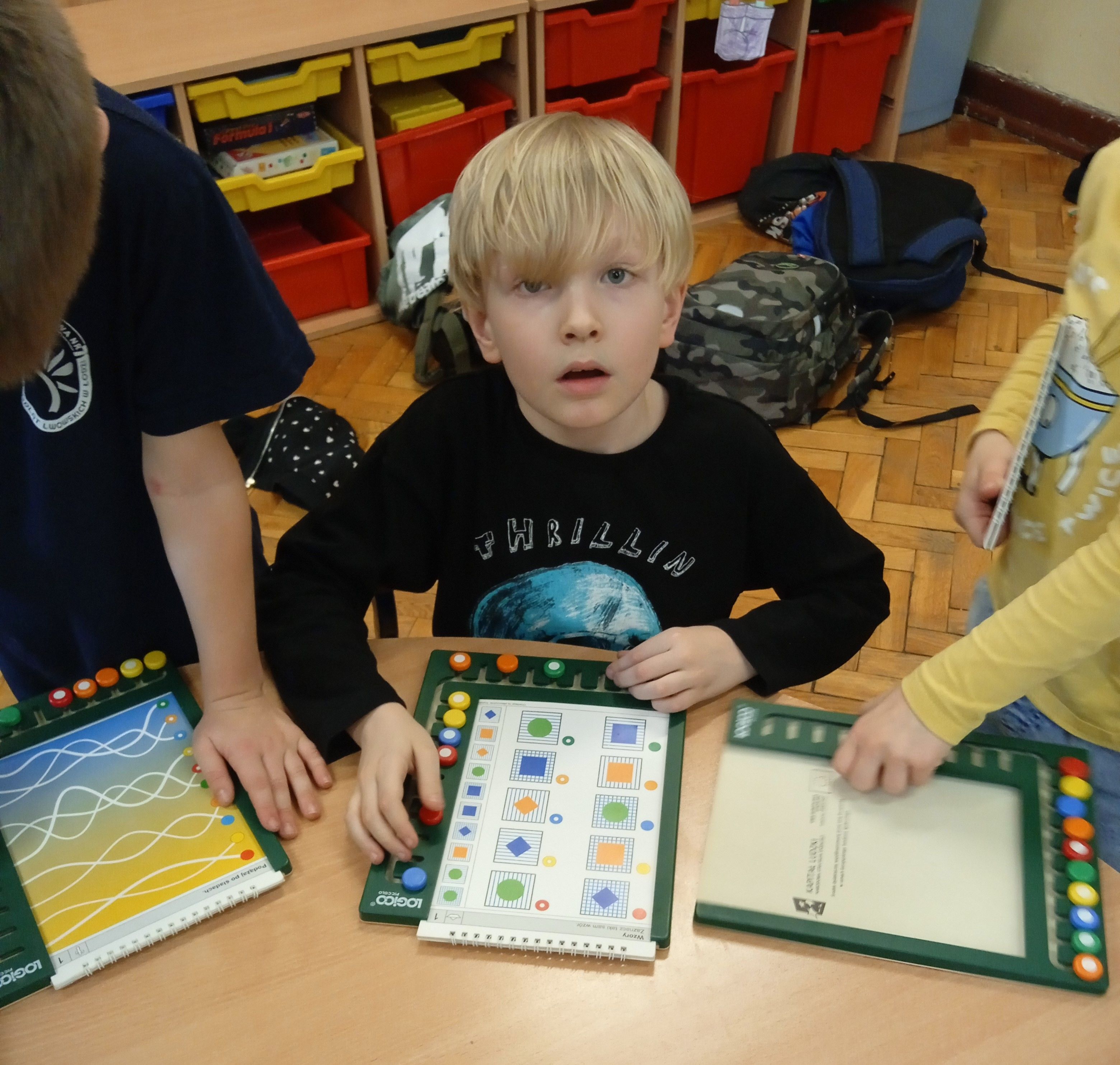 Witamy po feriach! Zapraszamy do sali ciszy i relaksu. Dużą popularnością cieszą się tu ostatnio gry logiczne - Logicco. Uczniowie klas 1-3 chętnie z nich korzystają, zwłaszcza, że mają od razu możliwość samodzielnego sprawdzenia poprawności udzielonych odpowiedzi. Dzięki nim przenoszą się w świat przyrody, matematyki, uczą zasad ruchu drogowego czy ortografii.