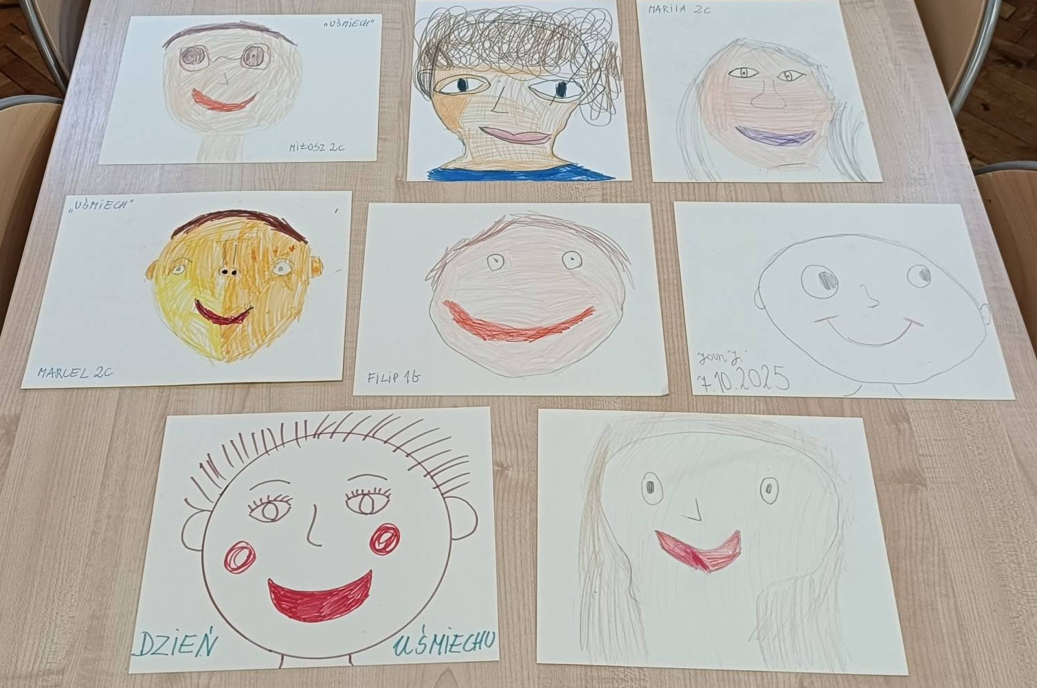 Z okazji Światowego Dnia Uśmiechu chętne dzieci z klas pierwszych zastanawiały się nad tym co to jest uśmiech, kiedy się uśmiechamy, jak sprawić by inni byli szczęśliwi. Tworzyły swoje uśmiechnięte portrety.