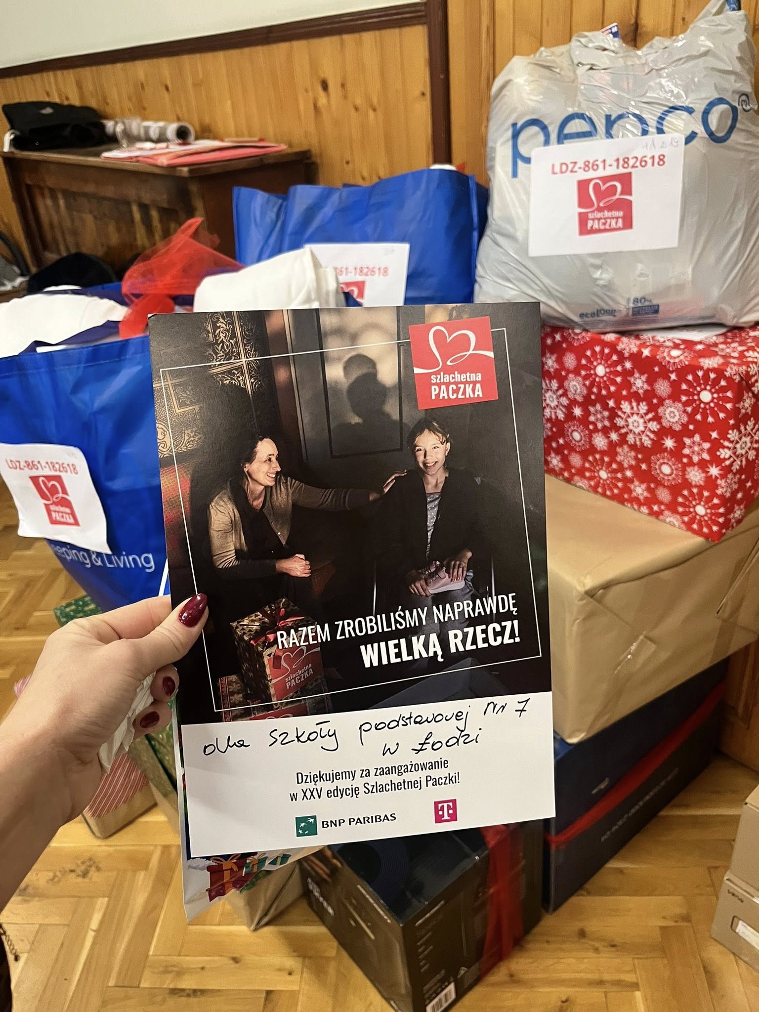Paczka została przygotowana przez społeczność Szkoły Podstawowej nr 7 im. Orląt Lwowskich w Łodzi.