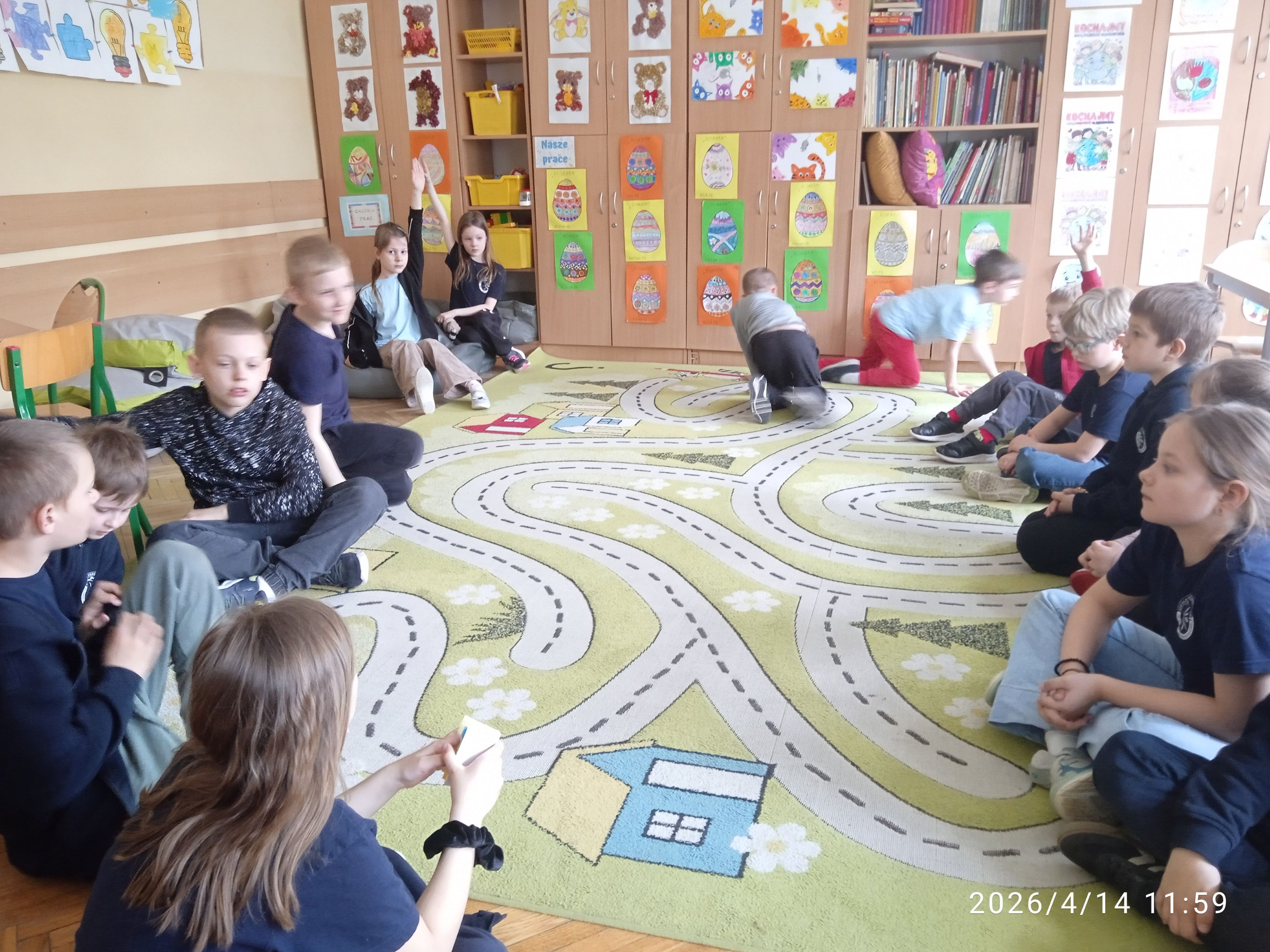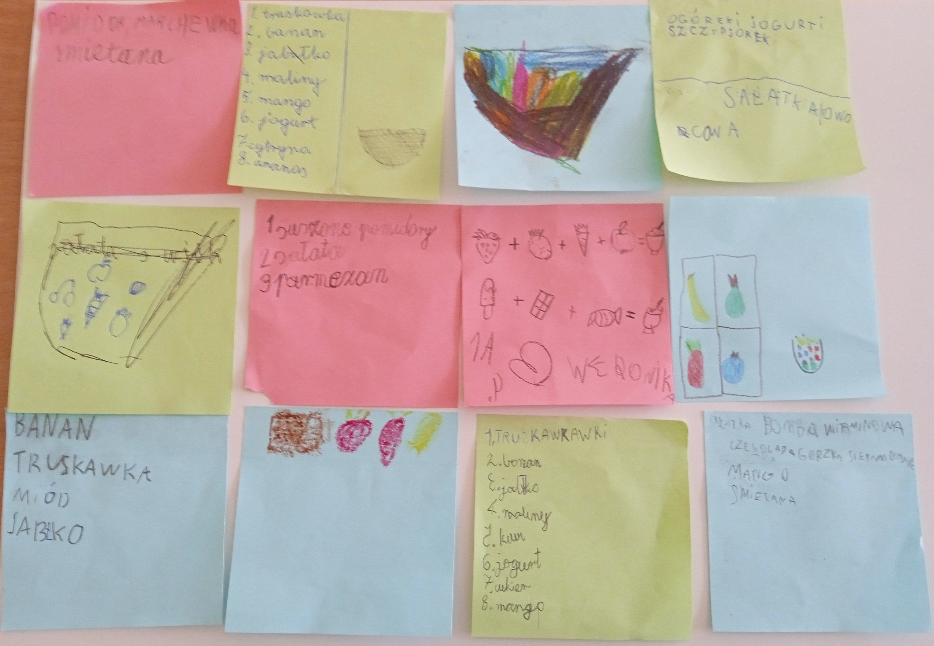 14.04.2026r. chętne dzieci z klasy 1a i 2c tworzyły przepisy na smaczne sałatki i surówki. Dzieci wymieniały się swoimi kulinarnymi pomysłami, rysowały lub zapisywały je na kolorowych karteczkach. Powstały bardzo ciekawe przepisy. Uczniowie uczestniczyli też bardzo chętnie w zabawie integracyjnej "Sałatka owocowa".