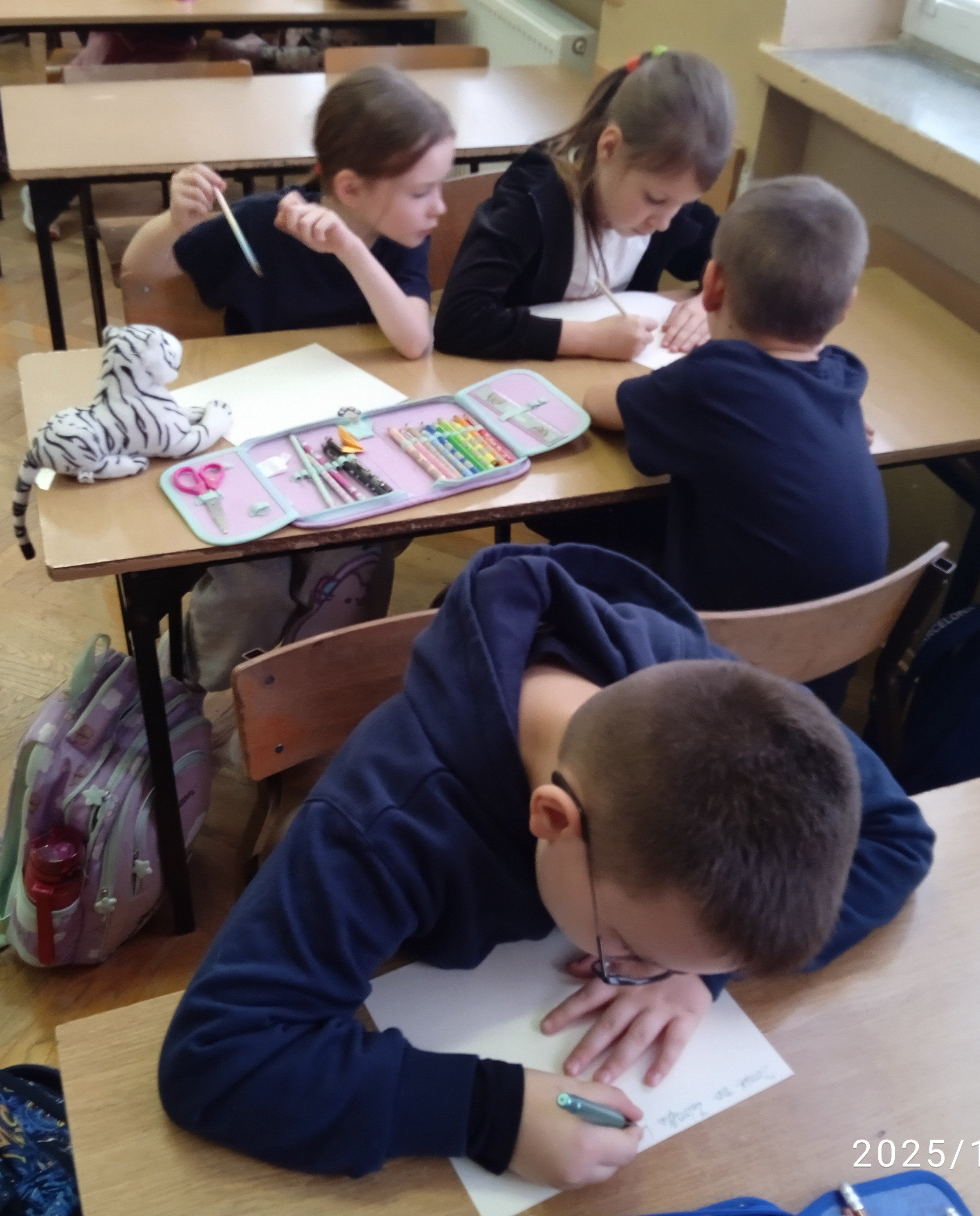 10.12.2025 r. chętne dzieci z klasy 1a zastanawiały się nad tym, co to znaczy być życzliwym i dlaczego powinniśmy być życzliwi dla innych. Uczniowie rysowali przykłady życzliwego zachowania i podawali, jakie znają sposoby pozdrowień.