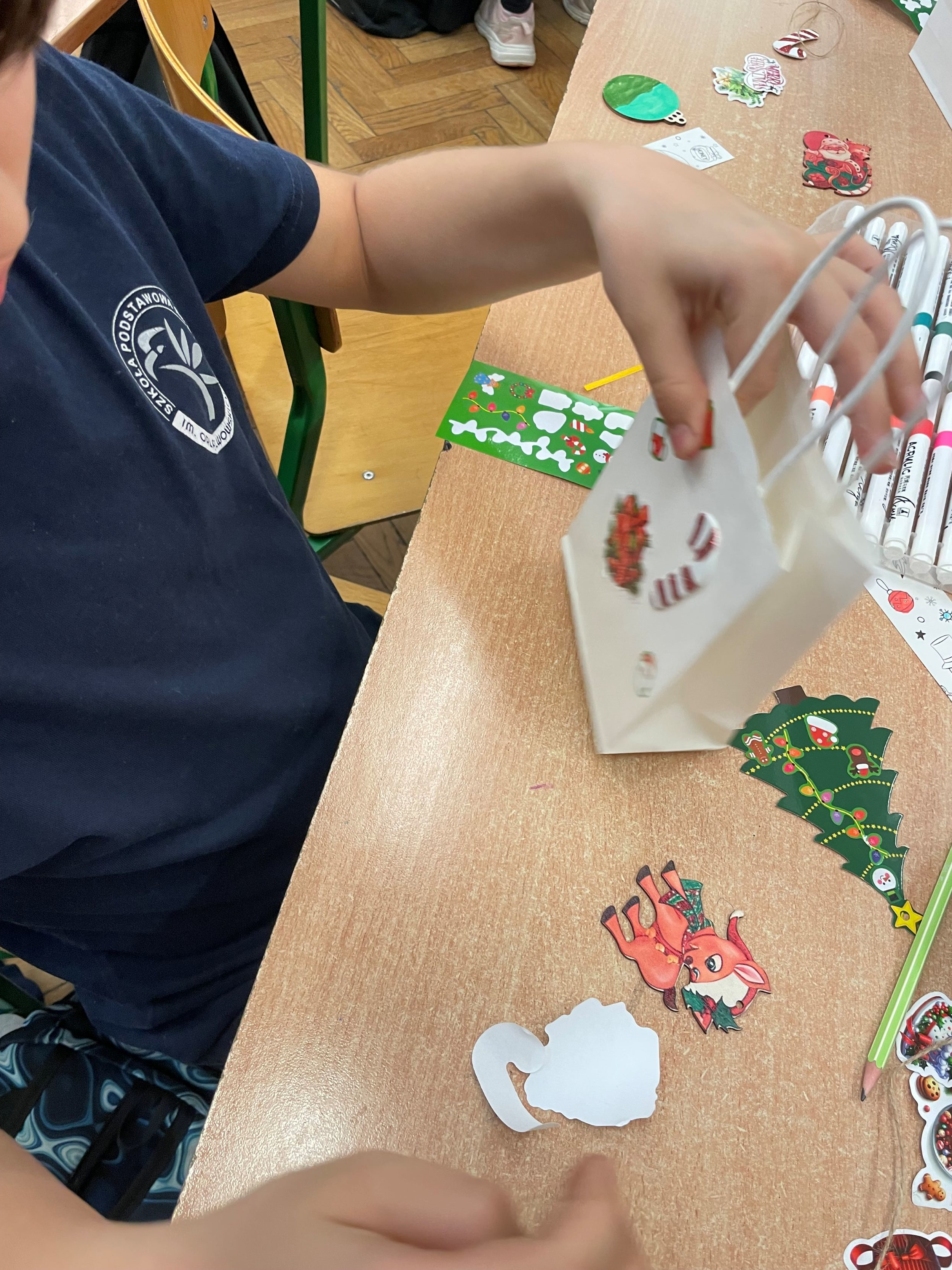 W trakcie warsztatów uczniowie wykonywali ozdoby świąteczne, które powstawały z przygotowanych elementów drewnianych oraz różnorodnych materiałów dekoracyjnych. Powstałe prace odznaczały się pomysłowością i starannością. Każdy uczeń wykazał się dużą wyobraźnią i umiejętnością estetycznego wykonania zadania.