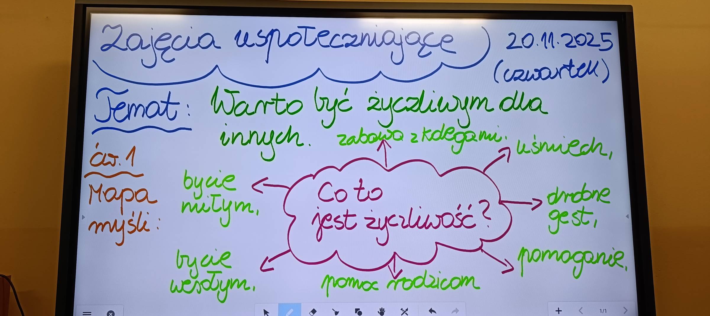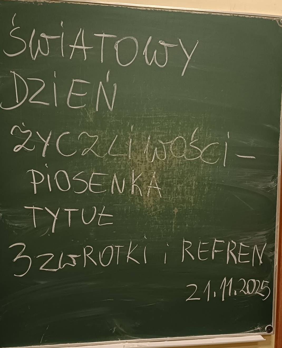 W dniu 21 listopada 2025 roku (piątek) w klasie 5a odbyły się zajęcia psychoedukacyjne poświęcone tematyce życzliwości z okazji Międzynarodowego Dnia Życzliwości w ramach działań szkoły włączającej. Uczniowie z tej klasy zostali wprowadzeni w tematykę pojęcia „życzliwość”, „akceptacja”, „komunikacja”, „integracja”. Uczniowie podczas zajęć uczestniczyli w odgrywaniu scenek polegających na wcieleniu się w różne sytuacje społeczne, odgadywanie haseł związanych z różnicami między ludźmi. Zabawy mające na celu integrację, empatię, współpracę w grupie pomogły dzieciom zrozumieć, że akceptacja inności sprawia nam radość, ułatwia relację z innymi np. „Skojarzenia ze słowem życzliwość”, Co sprawia, że jesteśmy wobec innych ludzi życzliwi?. Zabawa muzyczna uczniowie mieli za zadanie wcielić się w rolę kompozytorów i wymyślić piosenkę na temat życzliwości wobec siebie i innych – uczniowie pracowali w grupach. Dzieci uważanie i z dużą empatią uczestniczyły w tych zajęciach, były bardzo ciekawe i z chęcią wykonały zaproponowane ćwiczenie muzyczne – każda grupa zaprezentowała na forum swoją kompozycję muzyczną. Uczniowie z zaangażowaniem uczestniczyli w zaproponowanych zajęciach.