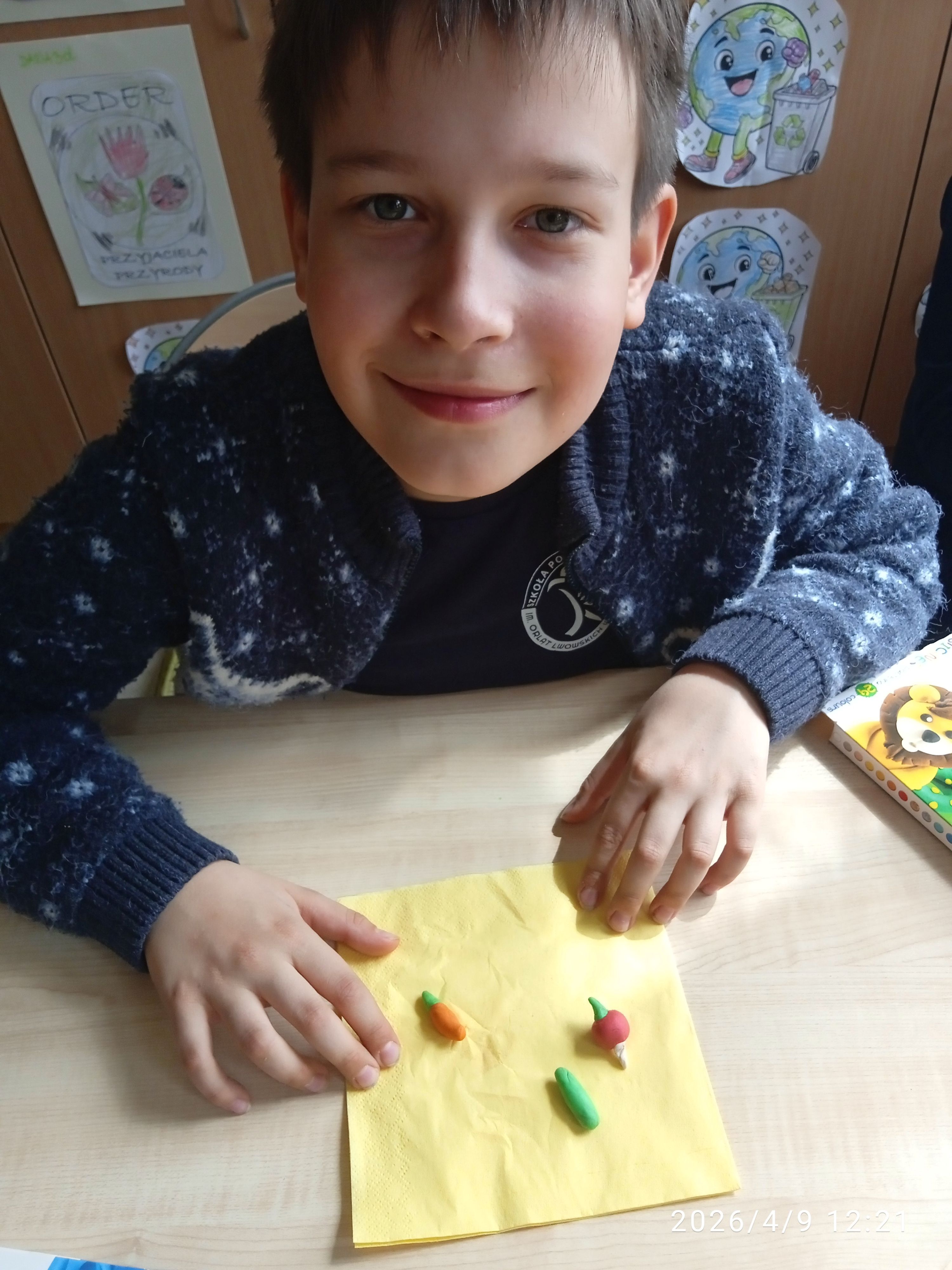 9.04.2026r. dzieci z klasy 1b, 3c i 3d brały udział w zajęciach świetlicowych, podczas których poznały różne wiosenne nowalijki. Następnie lepiły je z plasteliny. Chętni uczniowie zapozowali ze swoimi pracami. Królowały - sałata, rzodkiewka, ogórki. Zachęcamy do zdrowego odżywiania i spożywania różnych warzyw.