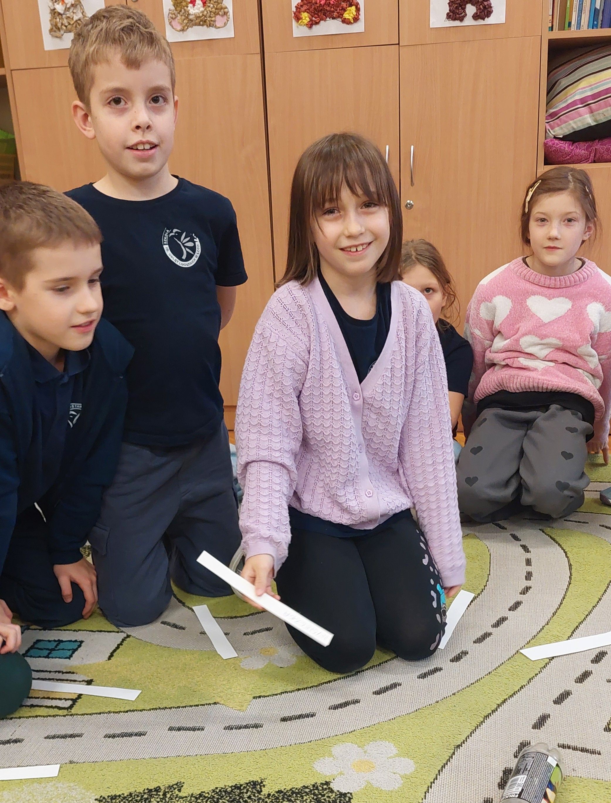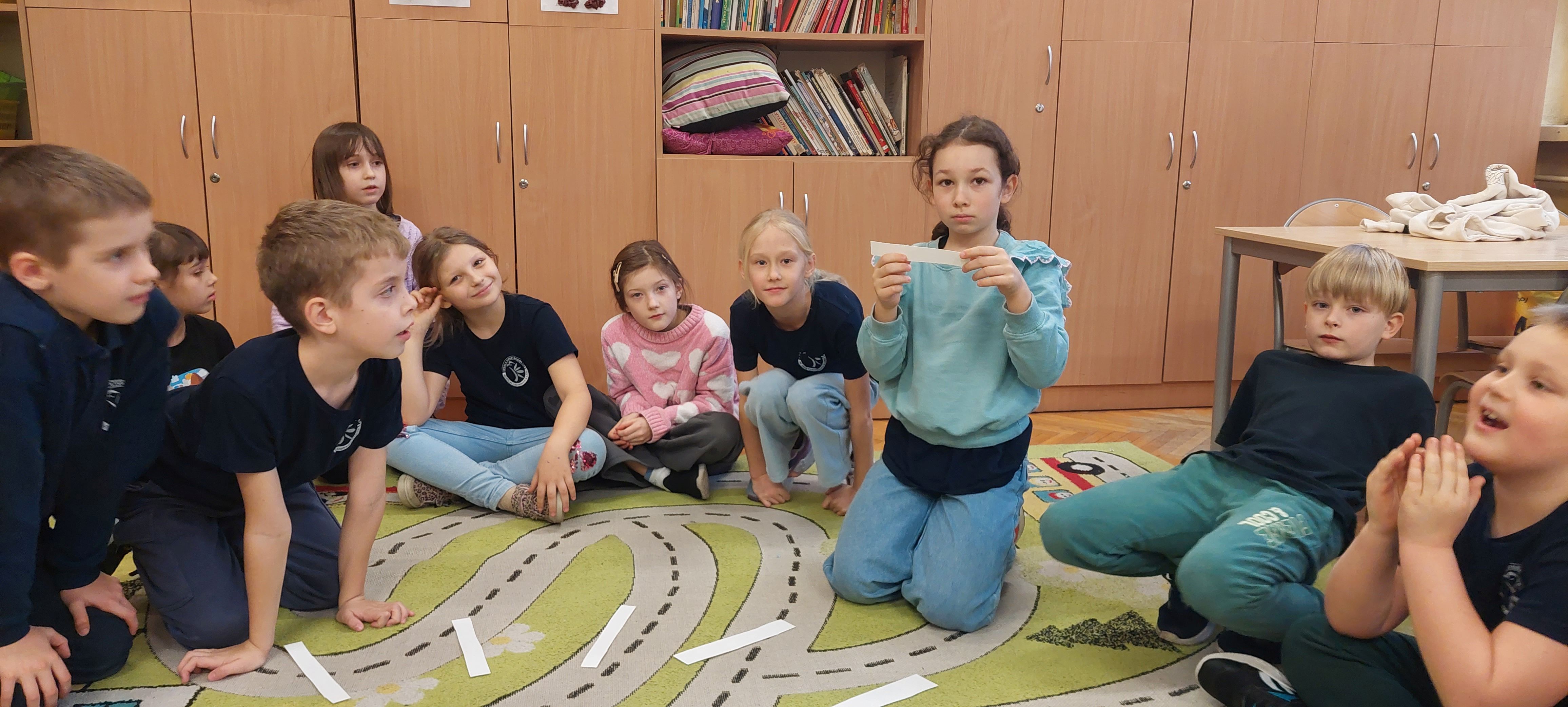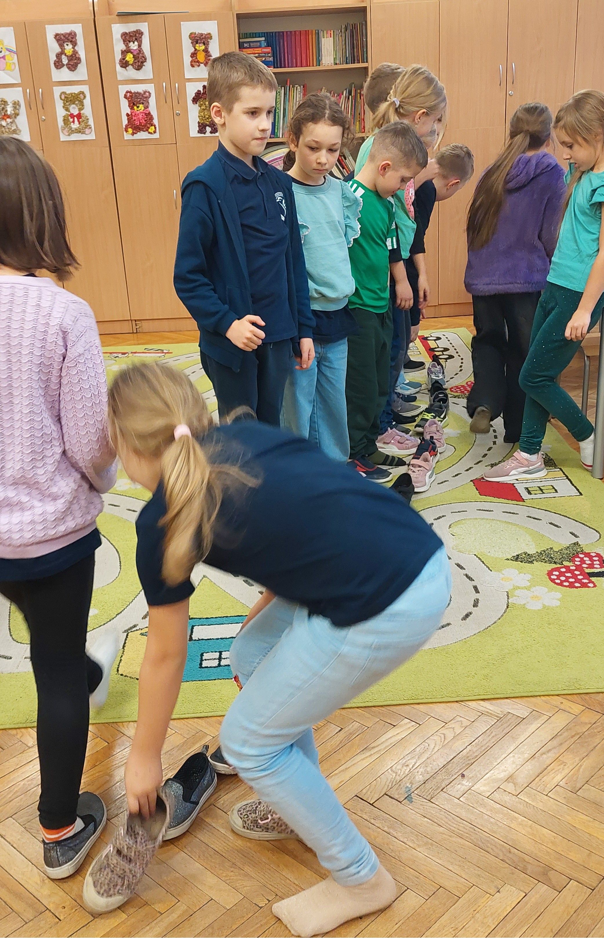 W środę w naszej świetlicy poprowadziłam wyjątkowe zajęcia andrzejkowe dla uczniów z klas 2A, 2B i 3D. Już na początku na dzieci czekała niezwykła niespodzianka — wróżka z Czarnej Góry zostawiła dla świetliczaków tajemniczy list, w którym zaprosiła ich do udziału w magicznych wróżbach. Pierwszą zabawą było tradycyjne „But za próg”, dzięki któremu dzieci mogły poznać, co przyniesie im przyszłość. Radości i emocji nie brakowało, zwłaszcza kiedy kolejne buty zbliżały się do drzwi. Następnie uczniowie sprawdzali swoje szczęście, celując monetą do wiaderka. Okazało się, że zadanie wcale nie było takie łatwe — tylko nielicznym udało się trafić do celu, co wywołało wiele śmiechu i sportowej rywalizacji. Kolorowe losy przygotowane przez czarodziejkę zdradzały dzieciom, na co powinny uważać w najbliższym czasie. Z przepowiedni można było dowiedzieć się m.in. „Jesz za dużo słodyczy” czy „Pamiętaj o czapce, bo będziesz chory!”. Na koniec dzieci kręciły butelką, odkrywając kolejne ciekawostki i wróżby dotyczące ich przyszłości.