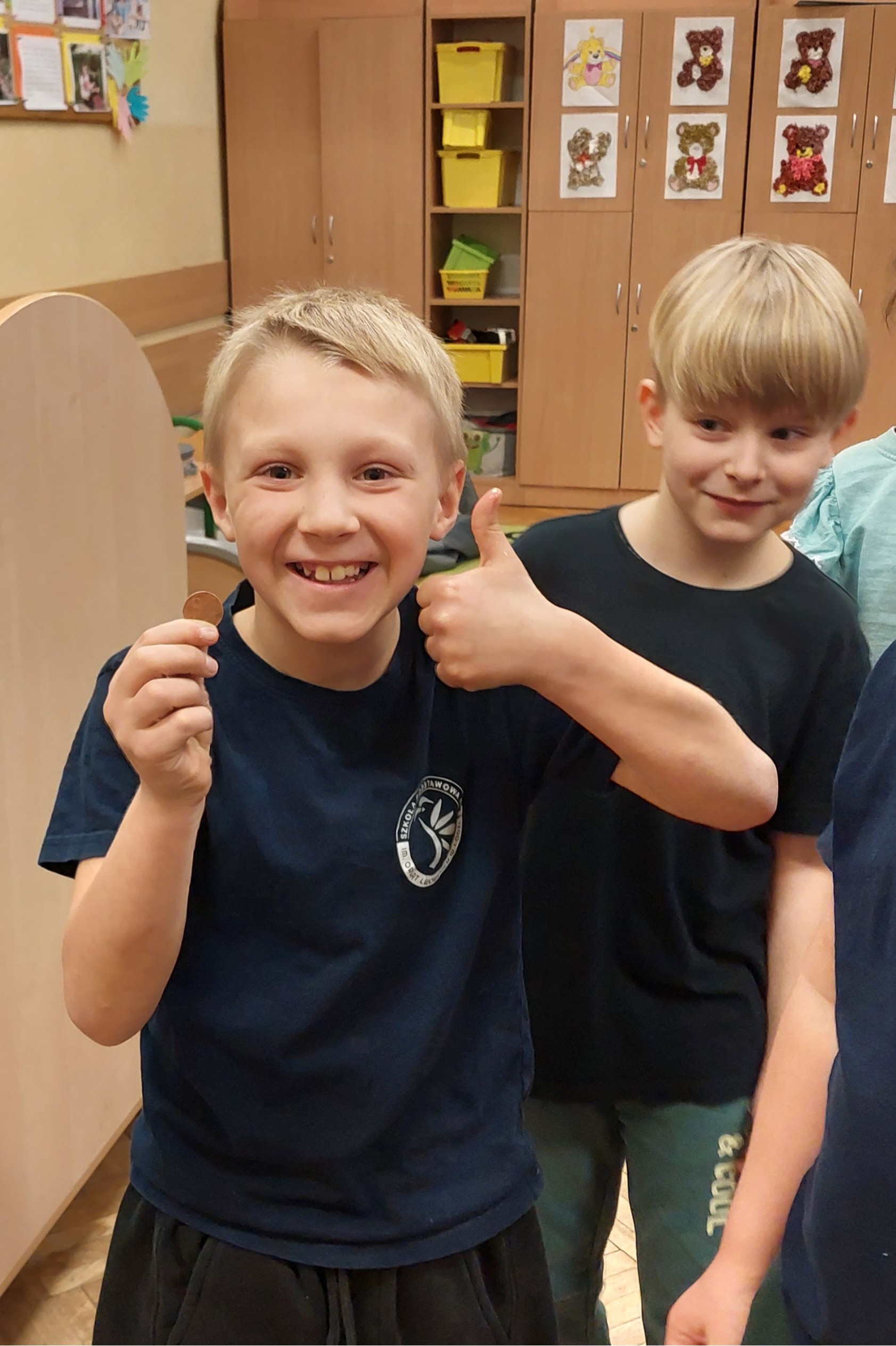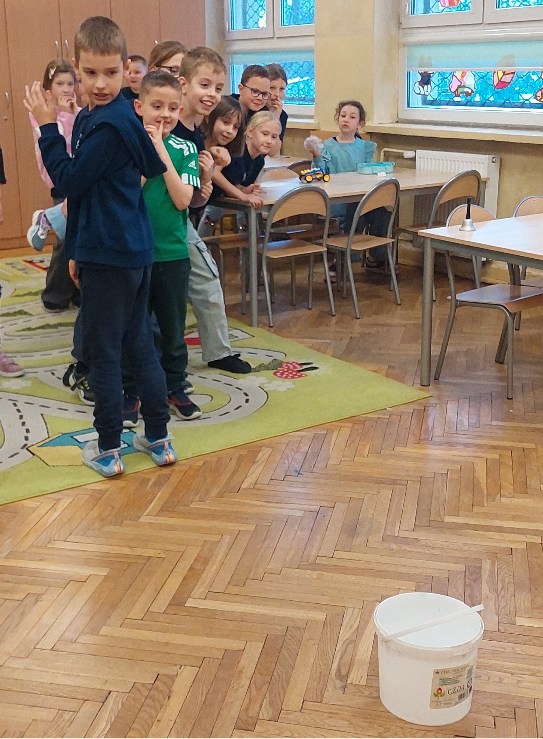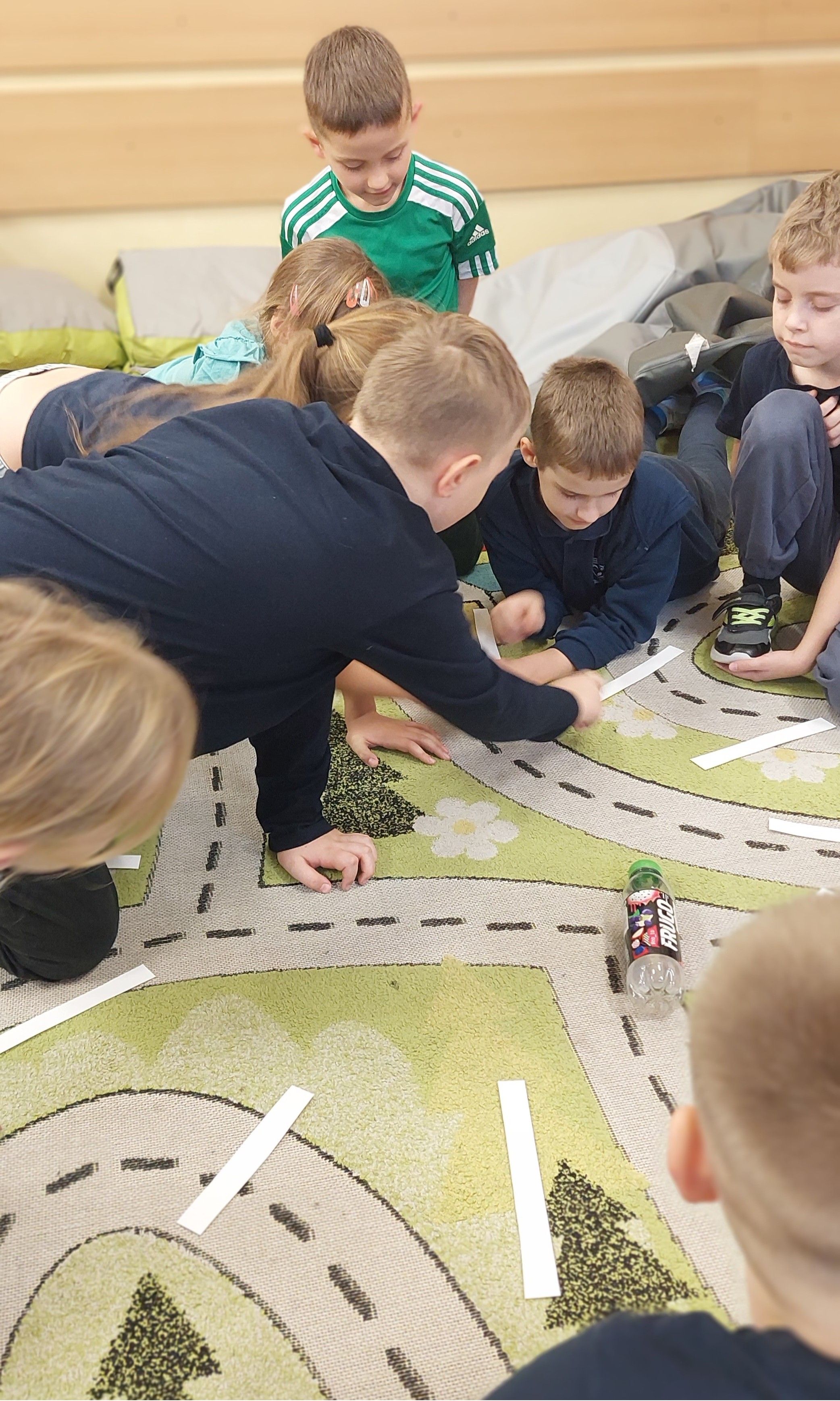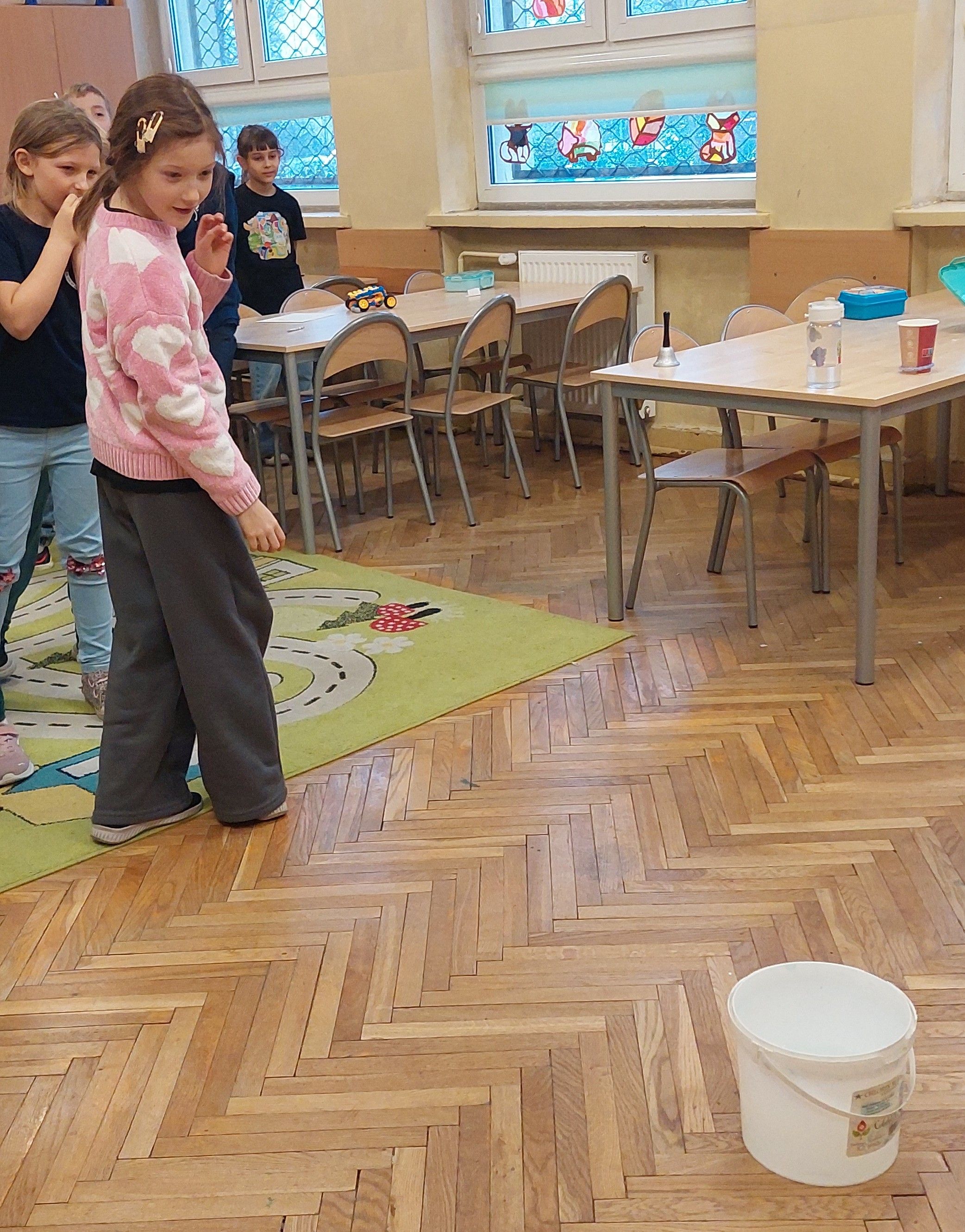 W środę w naszej świetlicy poprowadziłam wyjątkowe zajęcia andrzejkowe dla uczniów z klas 2A, 2B i 3D. Już na początku na dzieci czekała niezwykła niespodzianka — wróżka z Czarnej Góry zostawiła dla świetliczaków tajemniczy list, w którym zaprosiła ich do udziału w magicznych wróżbach. Pierwszą zabawą było tradycyjne „But za próg”, dzięki któremu dzieci mogły poznać, co przyniesie im przyszłość. Radości i emocji nie brakowało, zwłaszcza kiedy kolejne buty zbliżały się do drzwi. Następnie uczniowie sprawdzali swoje szczęście, celując monetą do wiaderka. Okazało się, że zadanie wcale nie było takie łatwe — tylko nielicznym udało się trafić do celu, co wywołało wiele śmiechu i sportowej rywalizacji. Kolorowe losy przygotowane przez czarodziejkę zdradzały dzieciom, na co powinny uważać w najbliższym czasie. Z przepowiedni można było dowiedzieć się m.in. „Jesz za dużo słodyczy” czy „Pamiętaj o czapce, bo będziesz chory!”. Na koniec dzieci kręciły butelką, odkrywając kolejne ciekawostki i wróżby dotyczące ich przyszłości.