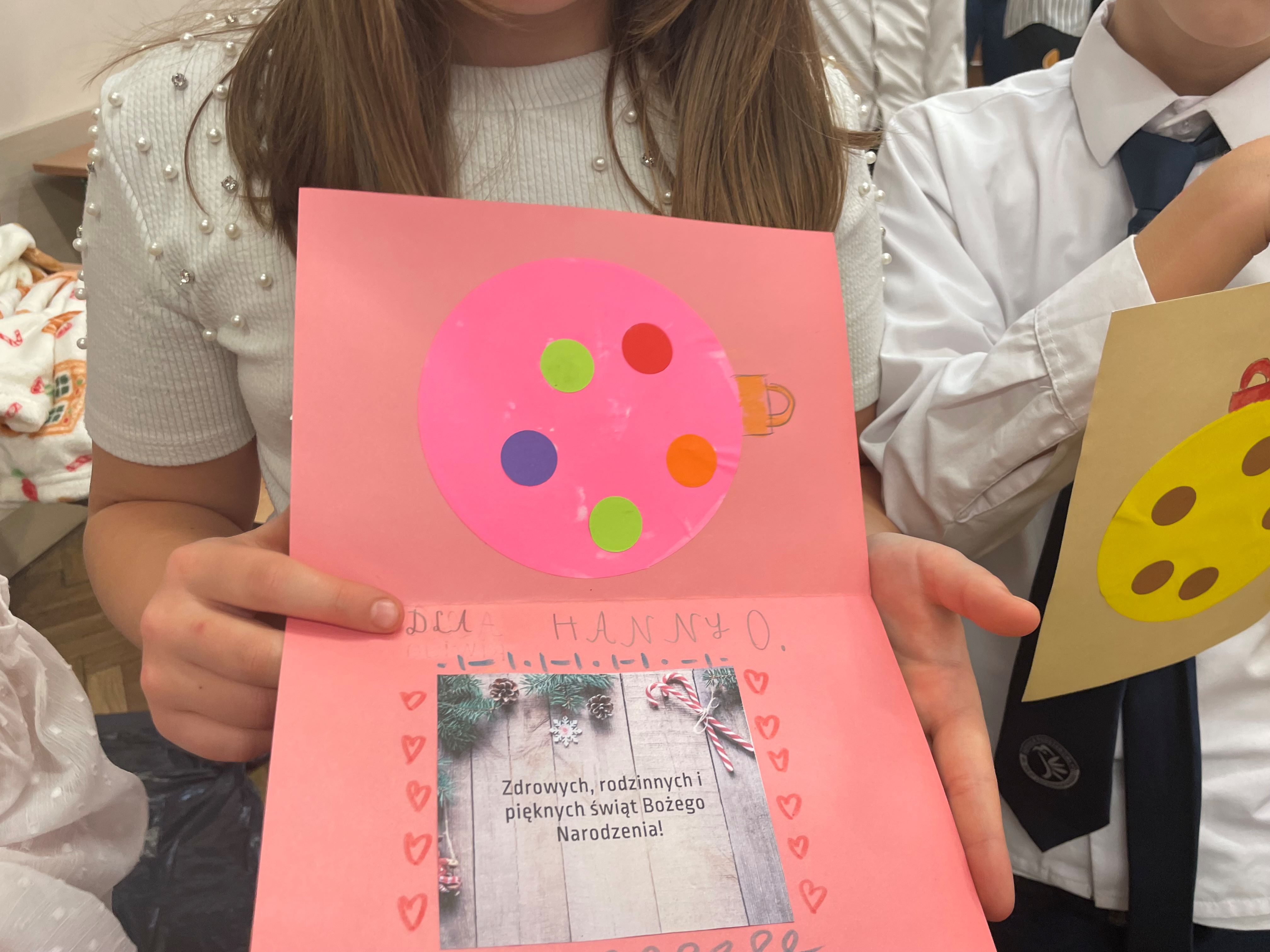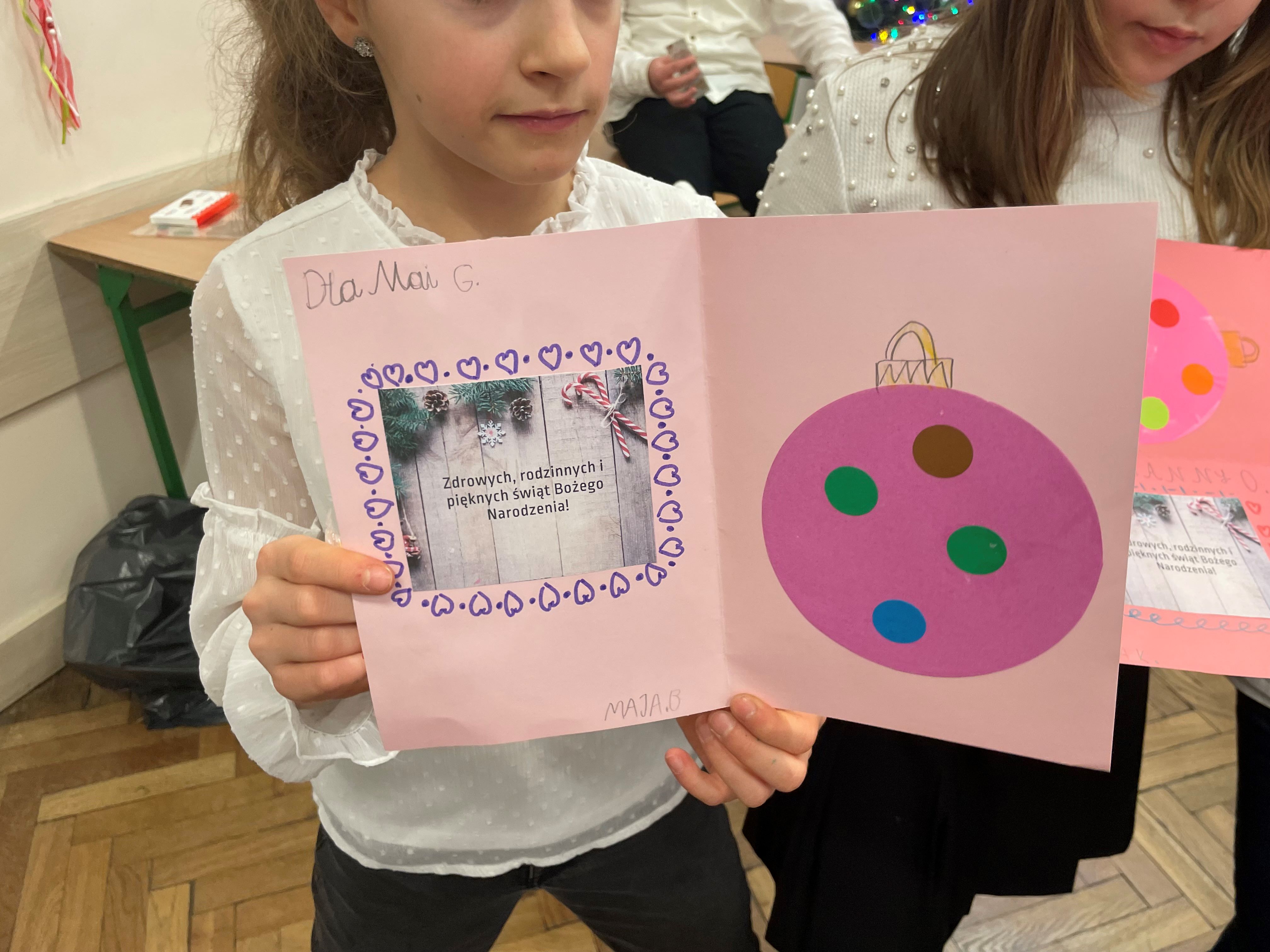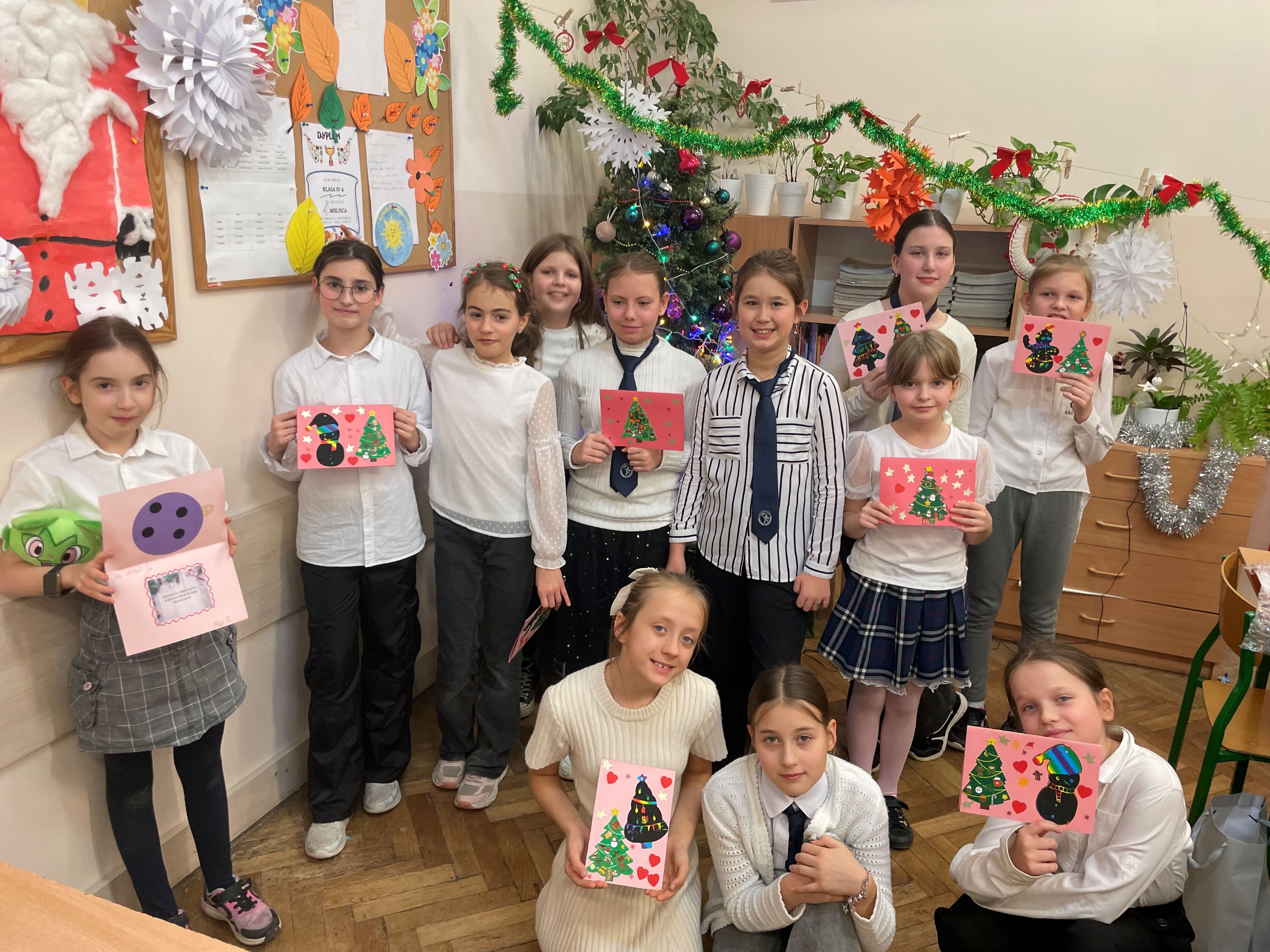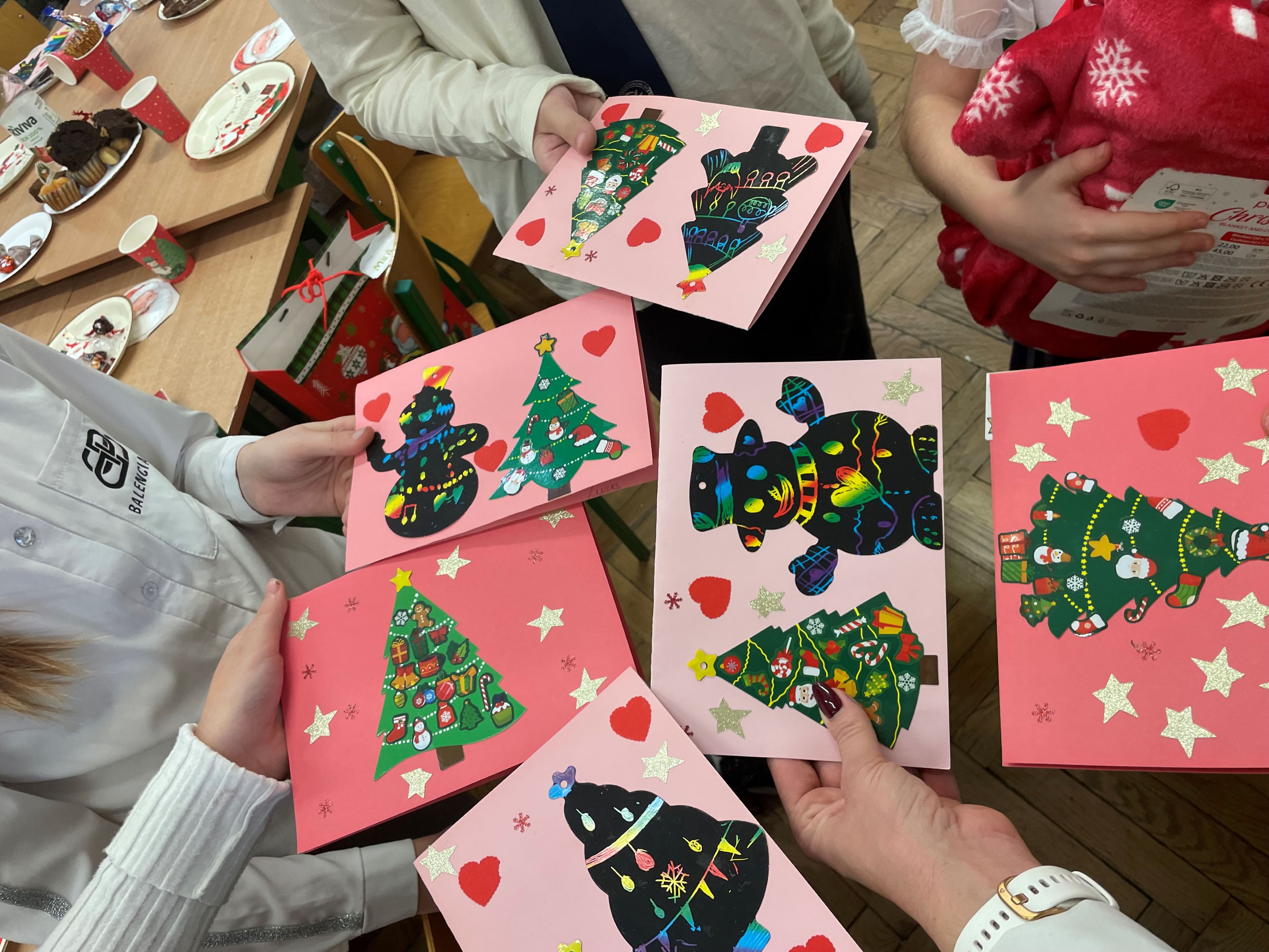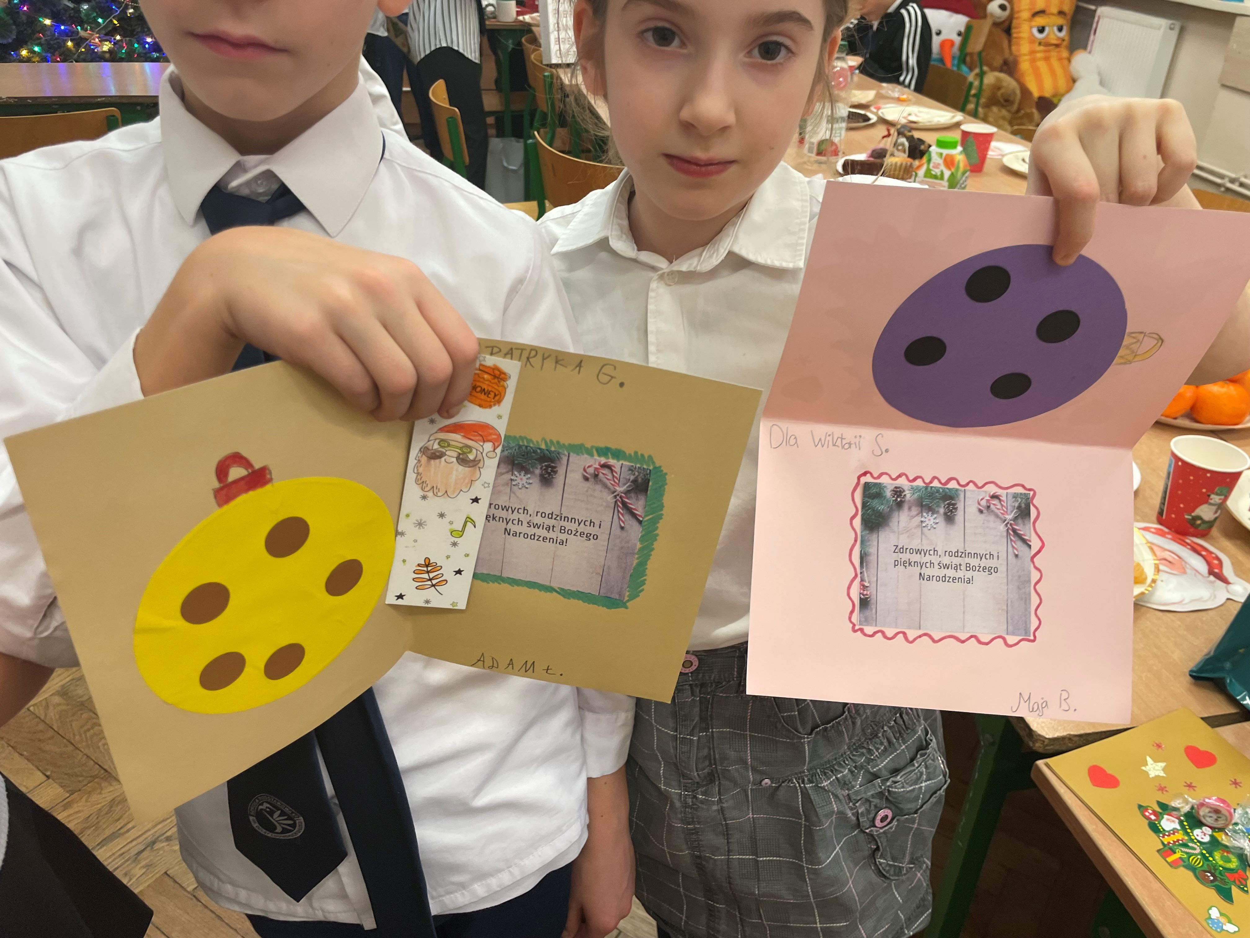 Podczas spotkania świątecznego uczniowie z klasy 4a otrzymali kartki od uczniów klasy 1a, co sprawiło im wiele radości i było miłym podsumowaniem wspólnej inicjatywy. Akcja spotkała się z bardzo pozytywnym odbiorem. Wymiana kartek była wartościowym doświadczeniem, które przyczyniło się do integracji uczniów oraz rozwijaniem postaw życzliwości i otwartości na innych.