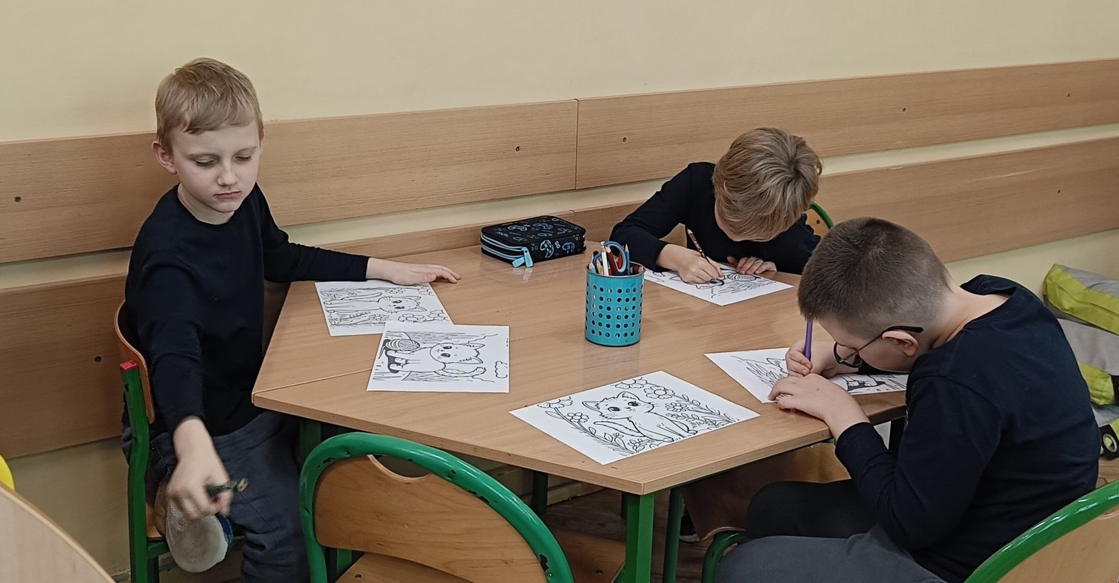 W dniu 20 lutego 2026 roku (piątek) w naszej szkolnej świetlicy odbyły się zajęcia świetlicowe pt. „Domowy zwierzyniec czyli o kotach na wesoło” dla uczniów z klasy 1, 2 i 3. Uczniowie z klasy 1, 2 i 3 zostali wprowadzeni w tematykę pojęcia „domowe zwierzęta”, „historia ras kotów”, „empatia wobec zwierząt”,„dbanie o domowe zwierzęta”. Uczniowie z klas 2 i 3 podczas zajęć świetlicowych obejrzeli film edukacyjny o rasach kotów, dbaniu o koty w domu. Zabawa plastyczna mające na celu poszerzenie własnej wyobraźni i pomysłowości oraz współpracy w grupie pomogły dzieciom otworzyć się na własną twórczość plastyczną. Dzieci uważanie i z dużą empatią uczestniczyły w tych zajęciach, były bardzo ciekawe i z chęcią wykonały zaproponowane ćwiczenia praktyczne. Uczniowie z zaangażowaniem uczestniczyli w zaproponowanych zajęciach świetlicowych. Dzieci miały możliwość pokolorowania obrazków z kocim wizerunkiem, poszerzyć swoją wiedzę o kotach.