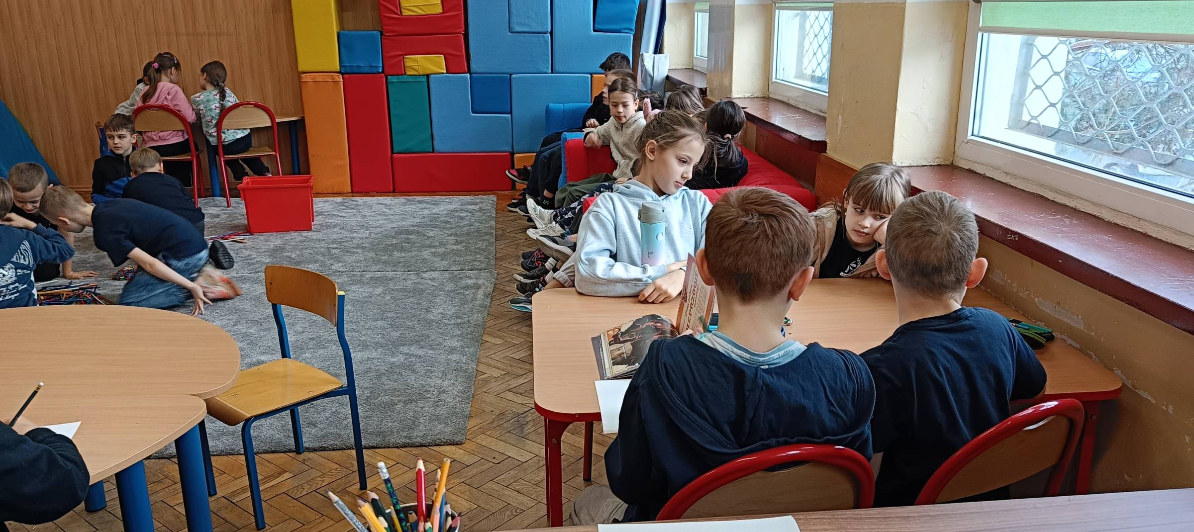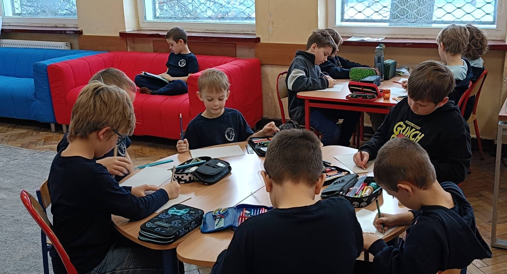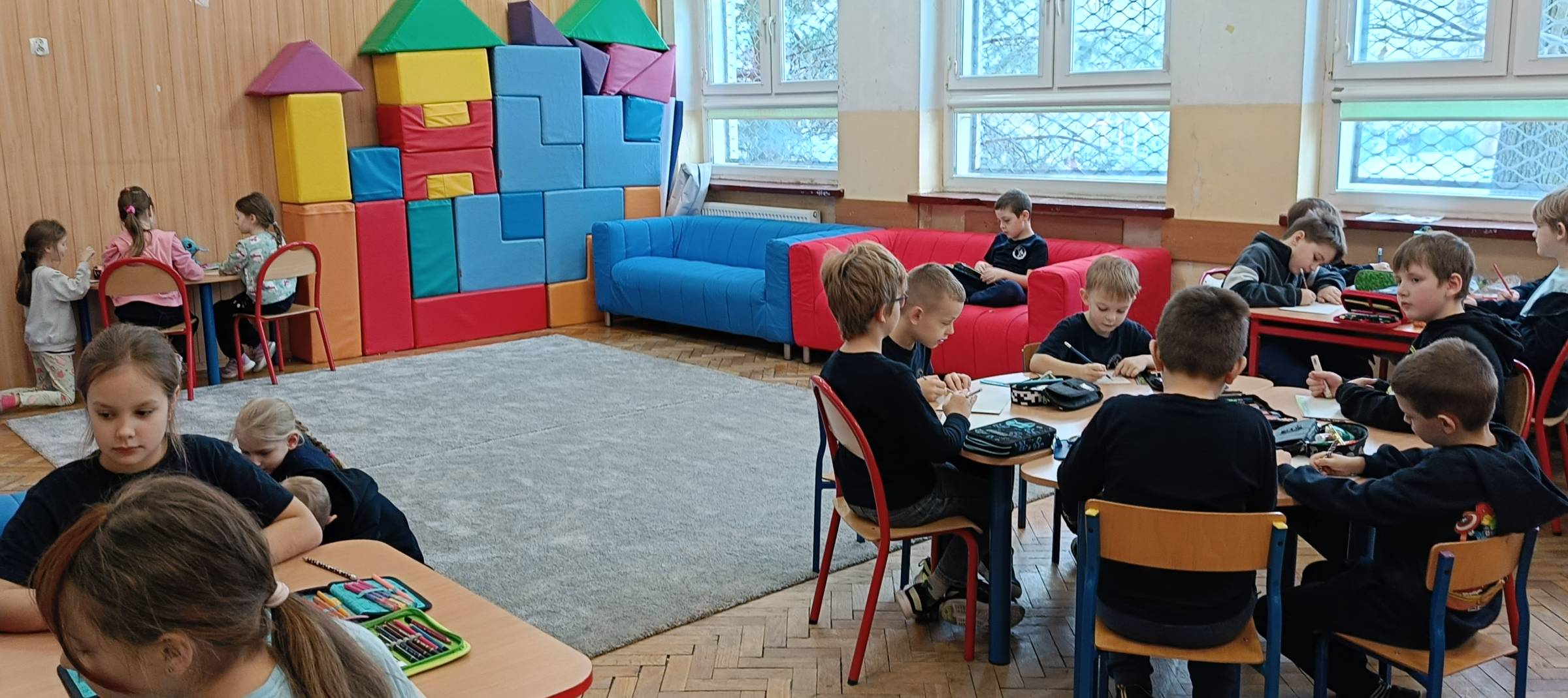 W dniu 9 stycznia 2026 roku (piątek) w naszej szkolnej świetlicy odbyły się zajęcia świetlicowe w ramach działań rozwijających kreatywne myślenie pt. „Zimowy pejzaż za oknem”. Uczniowie zostali wprowadzeni w tematykę pojęcia „pejzaż”, „zima”, ”krajobraz”. Dzieci obejrzały film edukacyjny o zimowych zmianach w przyrodzie. Każde dziecko miało powiedzieć z czym kojarzy mu się zima. Dzieci wzięły udział w zabawach ruchowo – muzycznych integrujących. Uczniowie mieli za zadanie wymyśleć własny element zimowy krajobrazu jaki można zobaczyć za oknem (uruchomienie własnej wyobraźni i kreatywności przestrzennej). Uczniowie wykonując to ćwiczenie na pomysłowość słuchali muzyki relaksacyjnej, która sprzyjała kreatywności i skupieniu dzieci na wykonywanym zadaniu na wyobraźnię. Uczniom bardzo ta forma pracy się podobała, z dużym zaangażowaniem przystąpili do pracy podczas zajęć świetlicowych. Wszystkie dzieci bardzo się starały wykonać to ćwiczenie samodzielnie, brawo. Uczniowie wykonali pracę plastyczną (kredki, mazaki, pastele suche) zimowy pejzaż za oknem.