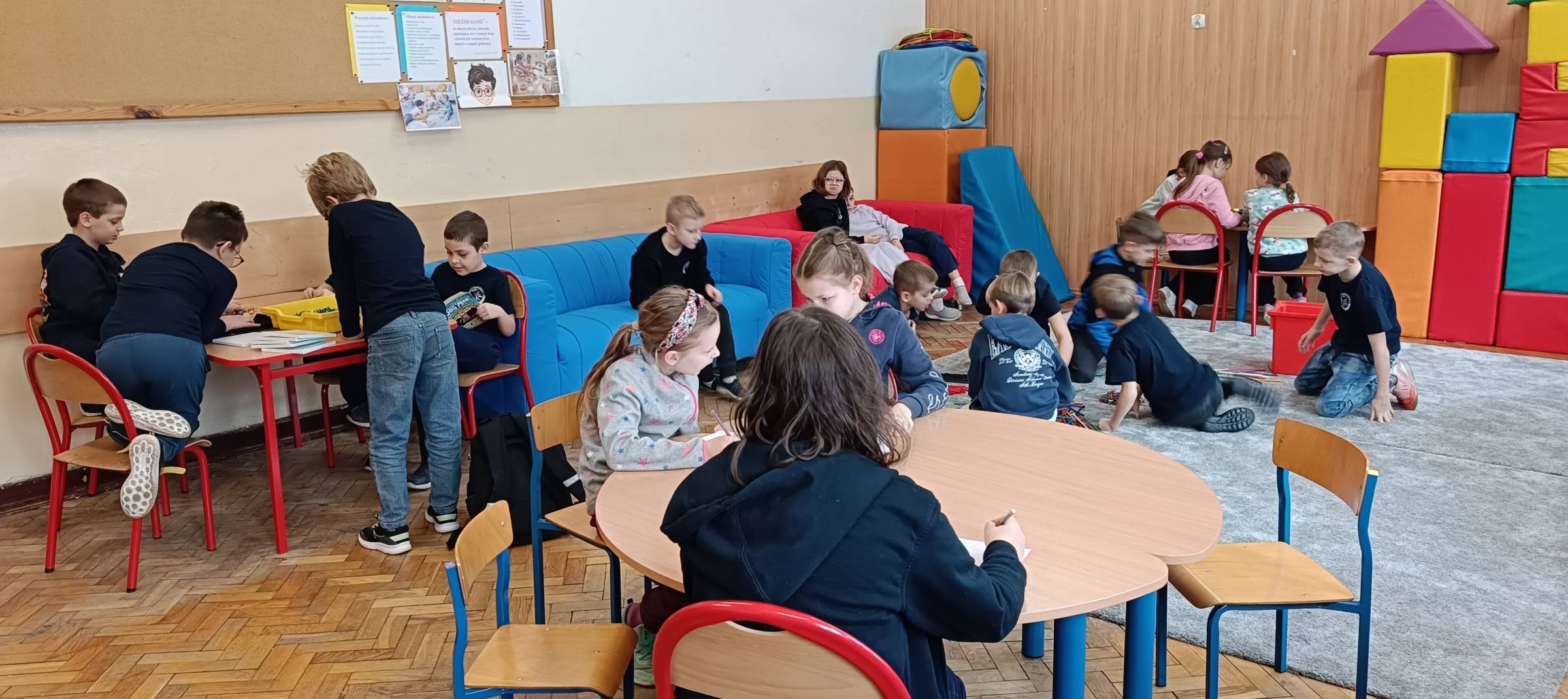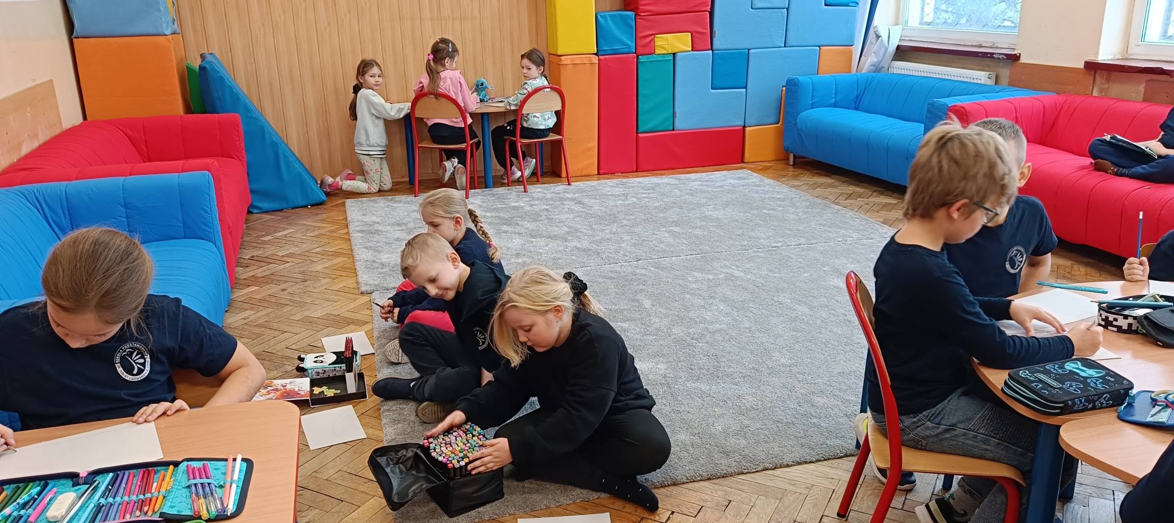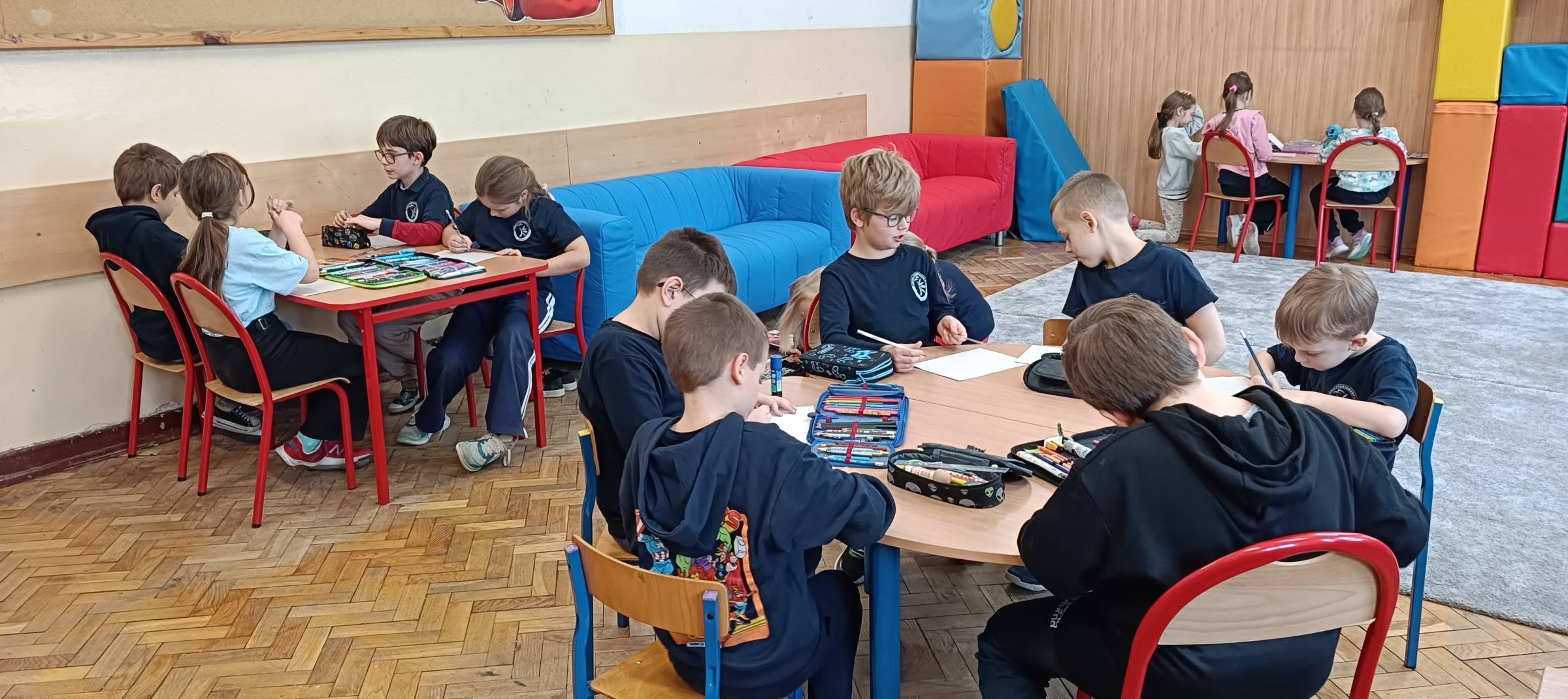 W dniu 9 stycznia 2026 roku (piątek) w naszej szkolnej świetlicy odbyły się zajęcia świetlicowe w ramach działań rozwijających kreatywne myślenie pt. „Zimowy pejzaż za oknem”. Uczniowie zostali wprowadzeni w tematykę pojęcia „pejzaż”, „zima”, ”krajobraz”. Dzieci obejrzały film edukacyjny o zimowych zmianach w przyrodzie. Każde dziecko miało powiedzieć z czym kojarzy mu się zima. Dzieci wzięły udział w zabawach ruchowo – muzycznych integrujących. Uczniowie mieli za zadanie wymyśleć własny element zimowy krajobrazu jaki można zobaczyć za oknem (uruchomienie własnej wyobraźni i kreatywności przestrzennej). Uczniowie wykonując to ćwiczenie na pomysłowość słuchali muzyki relaksacyjnej, która sprzyjała kreatywności i skupieniu dzieci na wykonywanym zadaniu na wyobraźnię. Uczniom bardzo ta forma pracy się podobała, z dużym zaangażowaniem przystąpili do pracy podczas zajęć świetlicowych. Wszystkie dzieci bardzo się starały wykonać to ćwiczenie samodzielnie, brawo. Uczniowie wykonali pracę plastyczną (kredki, mazaki, pastele suche) zimowy pejzaż za oknem.