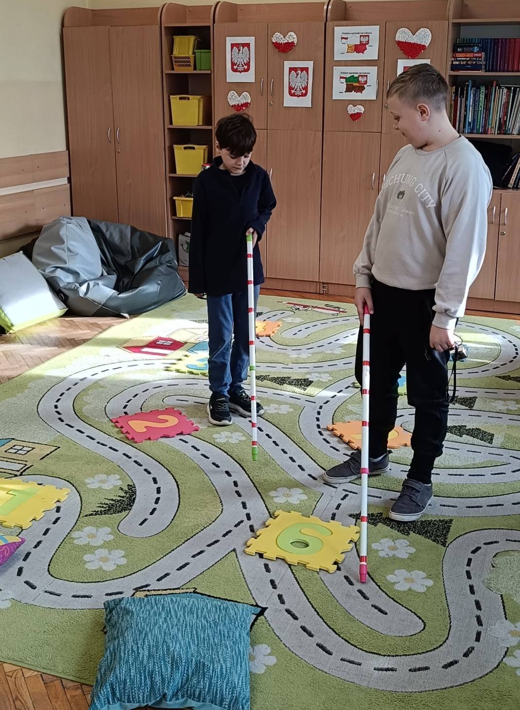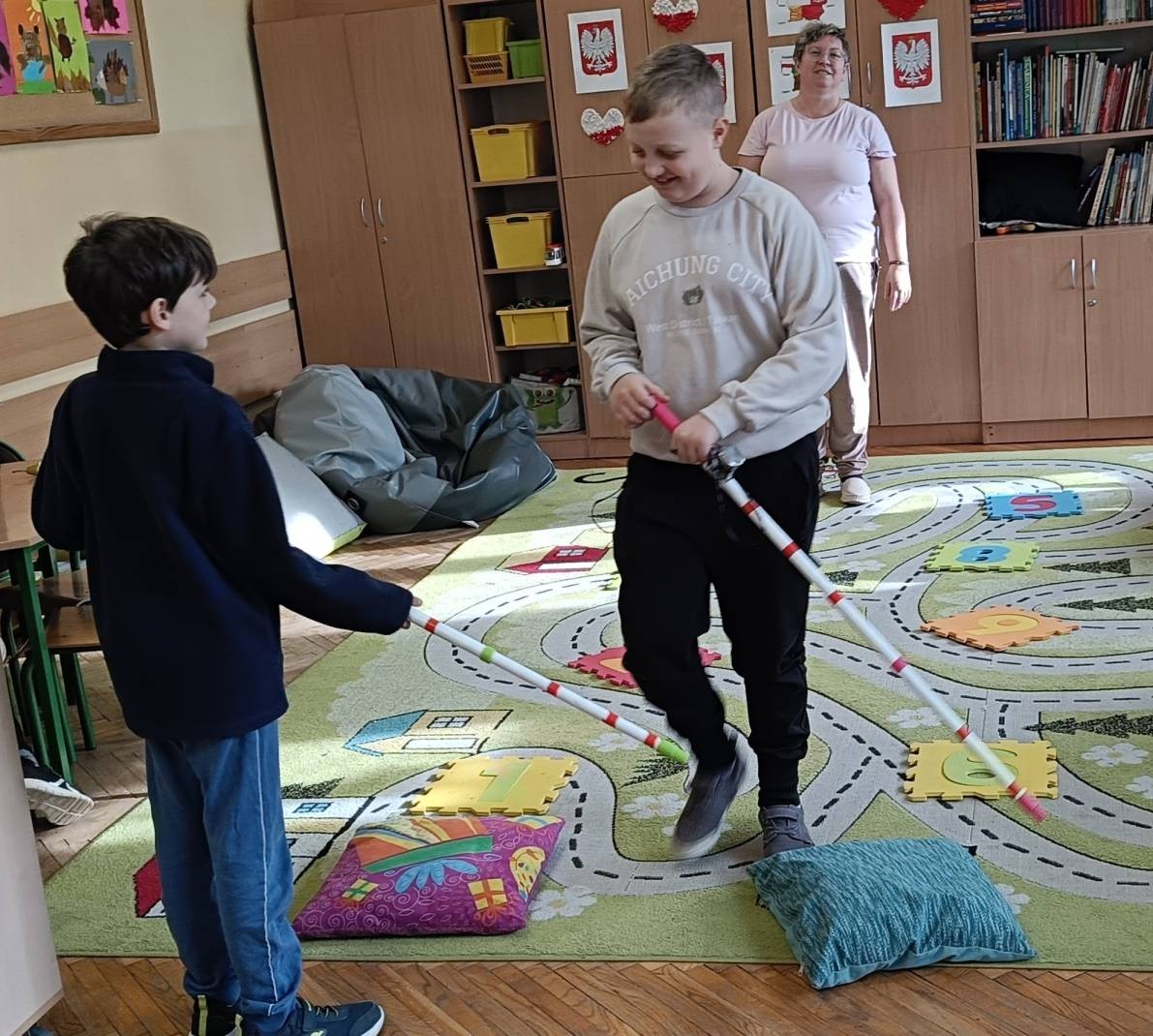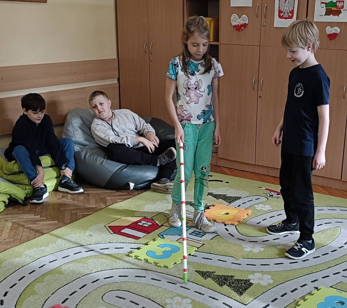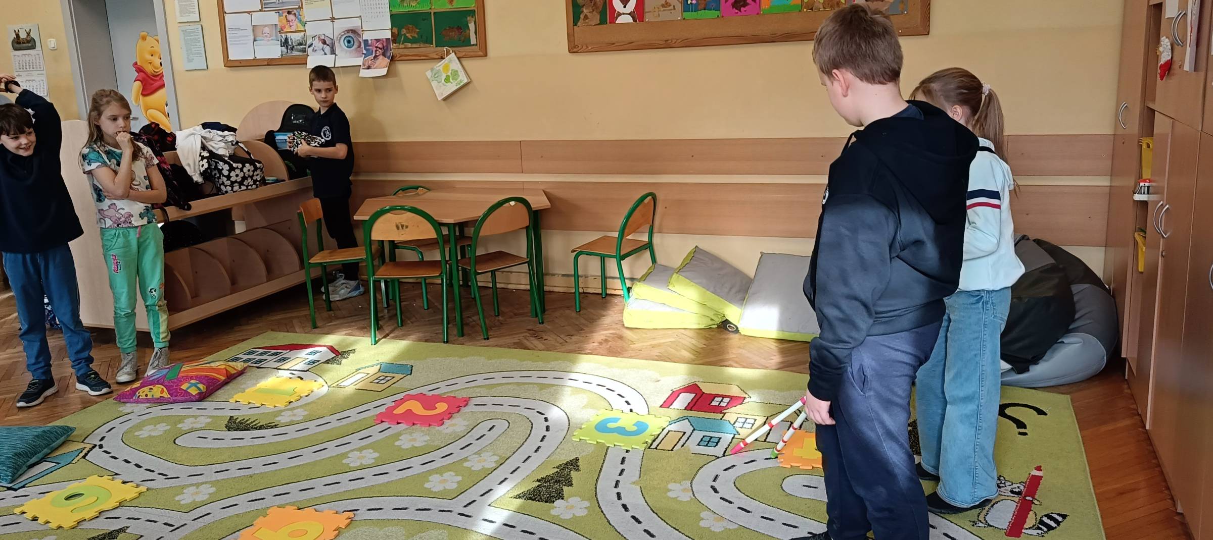 W dniu 12 listopada 2025 roku (środa) w naszej szkolnej świetlicy odbyły się zajęcia psychoedukacyjne z elementami socjoterapii poświęcone tematyce z okazji Międzynarodowego Dnia Osób Niewidomych w ramach działań szkoły włączającej. Uczniowie z klas młodszych 2b, 3d, 3d zostali wprowadzeni w tematykę pojęcia „osoba niewidoma”, „osoba niedowidząca”, „wada wzroku”. Uczniowie z klas 2 i 3 podczas zajęć uczestniczyli w zabawach integracyjnych polegających na wcieleniu się w rolę osoby niewidomej, która prosi o pomoc w różnych sytuacjach. Zabawy mające na celu integrację, empatię, współpracę w grupie pomogły dzieciom zrozumieć, że pomoc osobie z niepełnosprawnością sprawia nam radość, ułatwia relację z innymi np. „Ślepiec”, „Makarena”, „Pociągi”, „Kto tak jak ja?”, „Lustro i mim”. Dzieci uważanie i z dużą empatią uczestniczyły w tych zajęciach, były bardzo ciekawe i z chęcią wykonały zaproponowane ćwiczenia praktyczne. Uczniowie z zaangażowaniem uczestniczyli w zaproponowanych zabawach integracyjnych. Dzieci wykonały pracę plastyczną wcielając się w rolę projektanta oprawek do okularów dla osoby niewidomej.