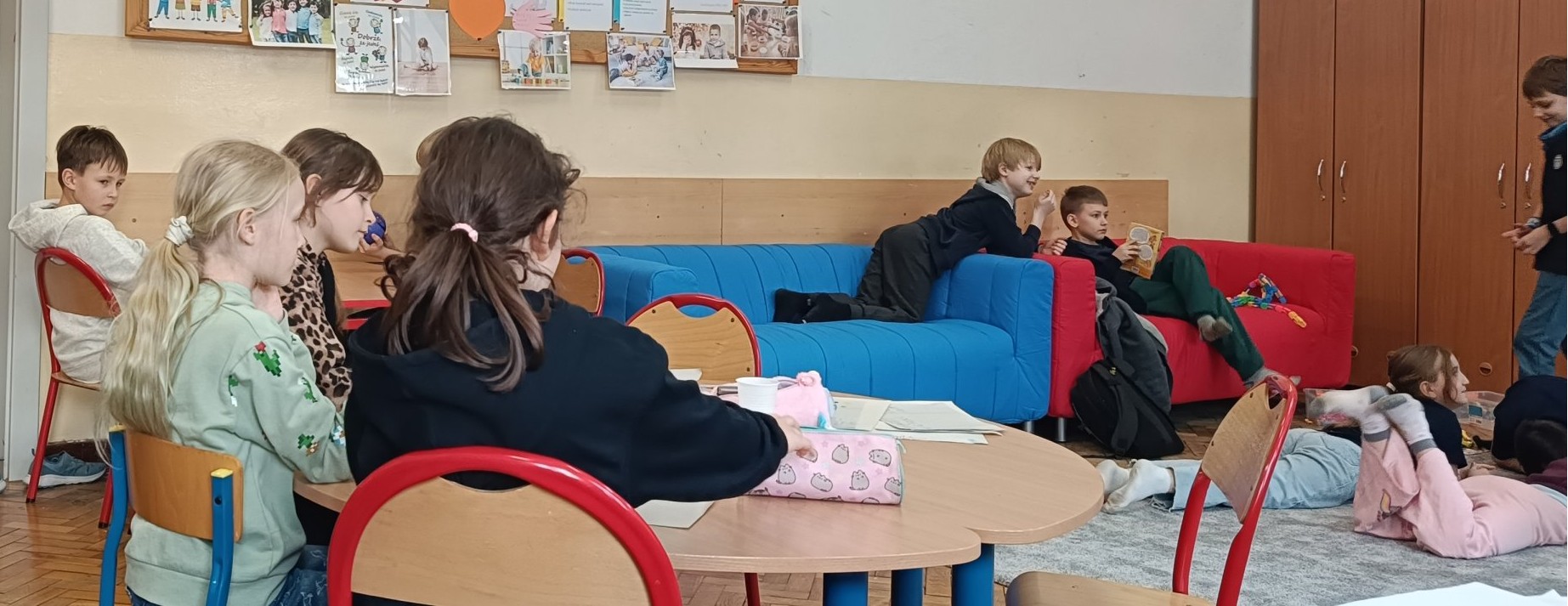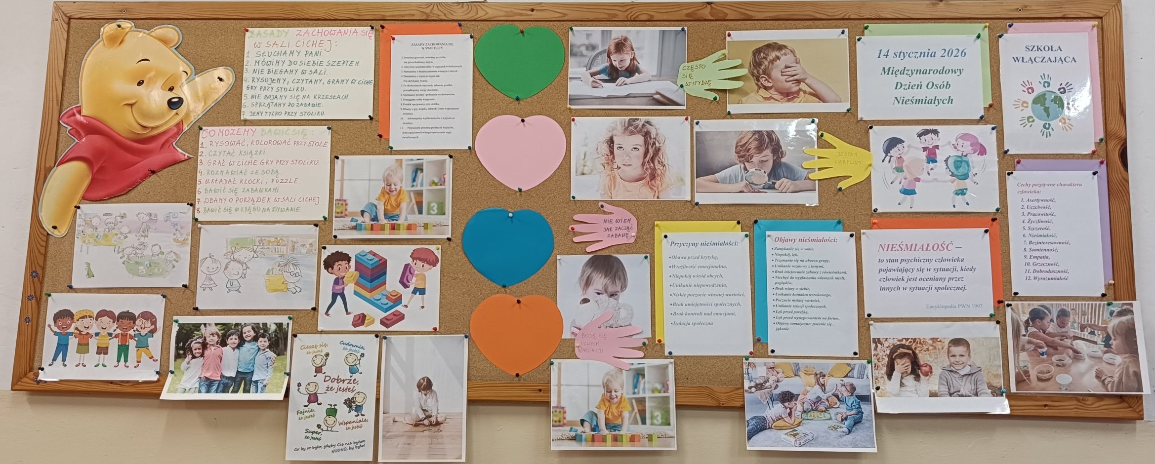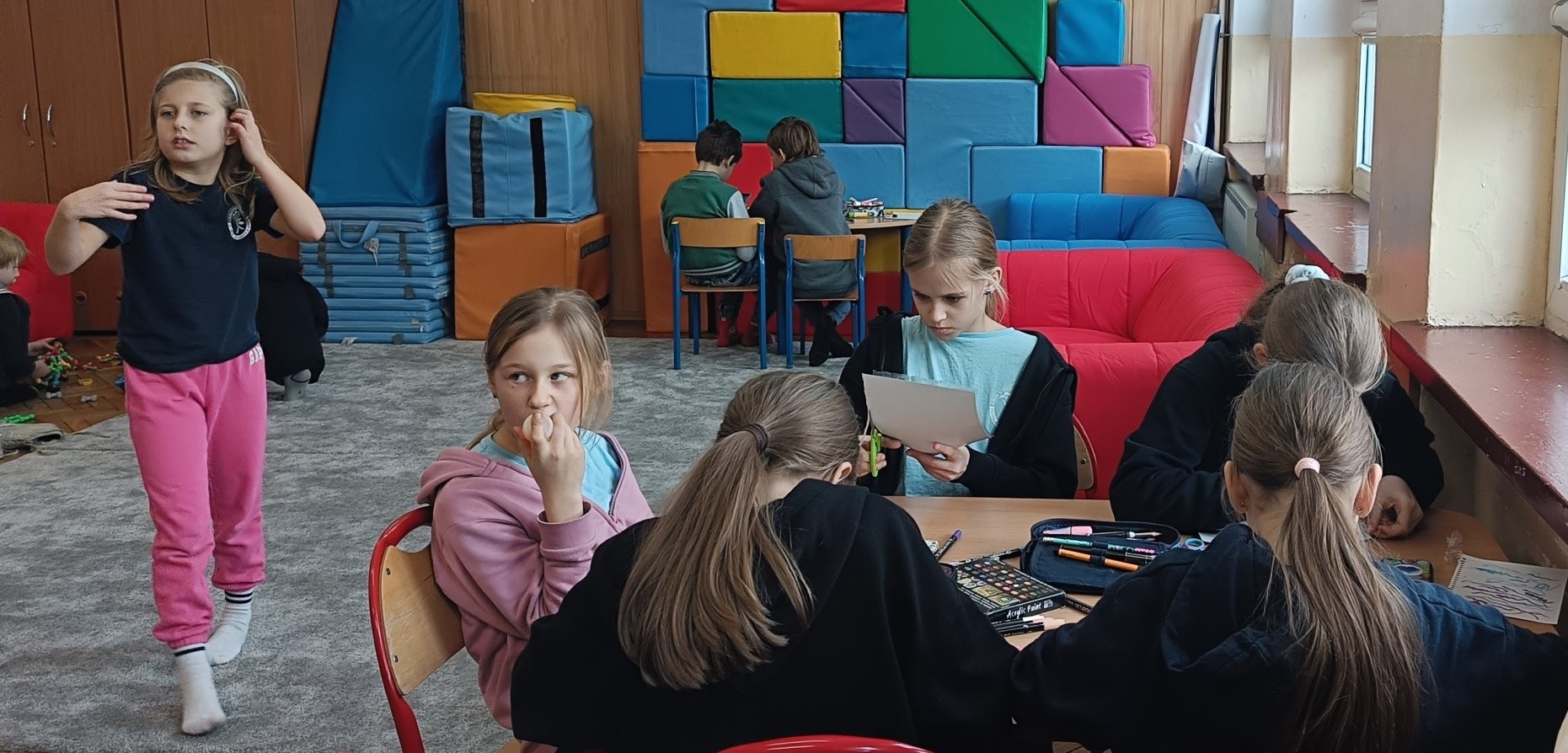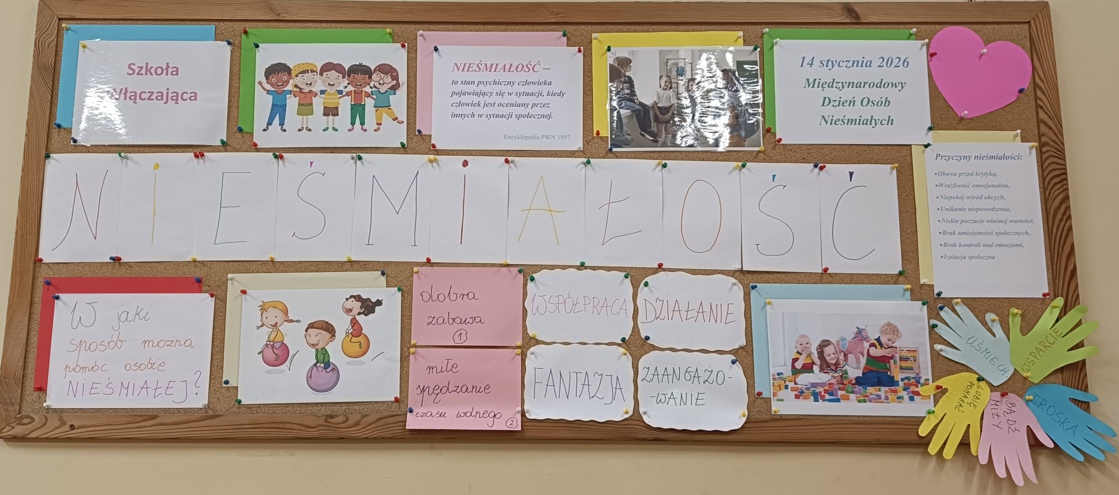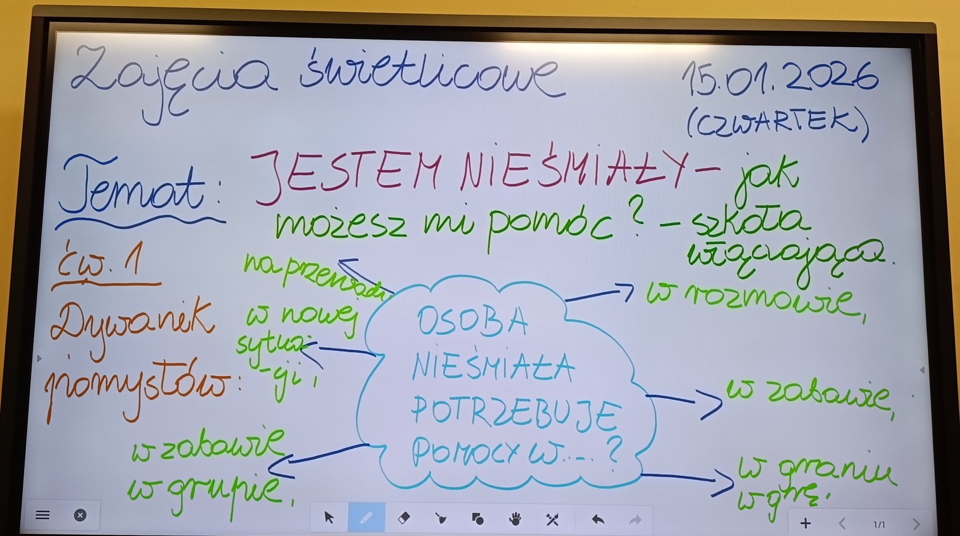 W dniu 15 stycznia 2026 roku (czwartek) w naszej szkolnej świetlicy odbyły się zajęcia świetlicowe w ramach działań rozwijających kreatywne myślenie pt. „Jestem nieśmiały – jak możesz mi pomóc?” – zajęcia miały charakter uspołeczniający w ramach realizacji projektu szkoły włączającej. Uczniowie zostali wprowadzeni w tematykę pojęcia „nieśmiałość”, „pomoc”, „problem w kontaktach rówieśniczych”. Dzieci obejrzały film edukacyjny o nieśmiałości. Każde dziecko miało powiedzieć z czym kojarzy mu się nieśmiały kolega lub koleżanka. Dzieci wzięły udział w zabawach ruchowo – muzycznych integrujących. Uczniowie mieli za zadanie wymyśleć własny pomysł jak można pomóc nieśmiałemu koledze/koleżance. Uczniowie wykonując to ćwiczenie na pomysłowość słuchali muzyki relaksacyjnej, która sprzyjała kreatywności i skupieniu dzieci na wykonywanym zadaniu na wyobraźnię. Uczniom bardzo ta forma pracy się podobała, z dużym zaangażowaniem przystąpili do pracy podczas zajęć świetlicowych. Wszystkie dzieci bardzo się starały wykonać to ćwiczenie samodzielnie, brawo.