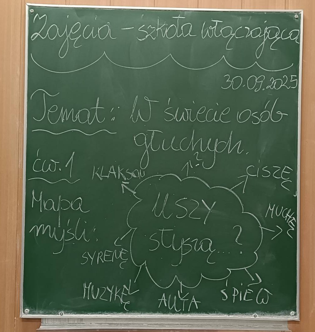 W dniu 30 września 2025 roku (wtorek) w naszej szkole odbyły się zajęcia uspołeczniające w ramach działań szkoły włączającej z okazji Światowego DniaOsób Głuchych z elementami muzykoterapii dla uczniów z klas 2 i 3 pt. "W świecie osób głuchych”. W ramach działań adaptacyjnych dla uczniów z klas 2 i 3 zostały zorganizowane zabawy ruchowe na kreatywność. Uczniowie zostali wprowadzeni w tematykę pojęć: „niepełnosprawność”, „osoba niesłysząca”, „osoba głucha”. Dzieci miały powiedzieć z czym kojarzy im się samo słowo – „ucho”. Następnie już będąc w sali na zajęciach mieli podać przykład bycia życzliwym kolegą lub koleżanką wobec osoby niesłyszącej w grupie rówieśniczej. Wykonując to ćwiczenie na kreatywność dzieci słuchały wybranych utworów muzyki klasycznej, która miała pobudzić ich wyobraźnie oraz kreatywność. Uczniom bardzo podobały się te ćwiczenia kreatywne. Zajęcia nie tylko miały uwrażliwić uczniów na tematykę osób głuchych i niedosłyszących, pobudzić ich kreatywność w zabawie w grupie rówieśniczej.